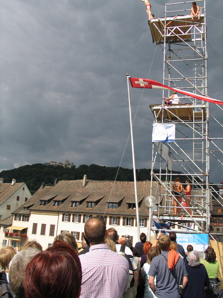 Uns wurde es schon schwindlig, wenn wir nur daran dachten von dort oben in den Rhein zu springen. |