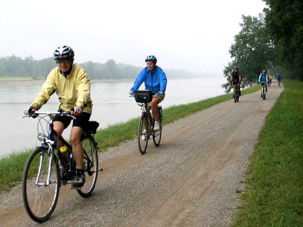 Als wir auf dem Dam-Radweg, über Hochstetten, nach Oberrimsingen fuhren, lag noch leichter Nebel über dem Rhein. |