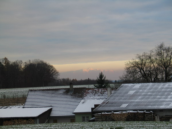 Für eine kurze Zeit zeigte sich die Alpenkette, mit Glärnisch und Säntis, im Licht der untergehenden Sonne. |