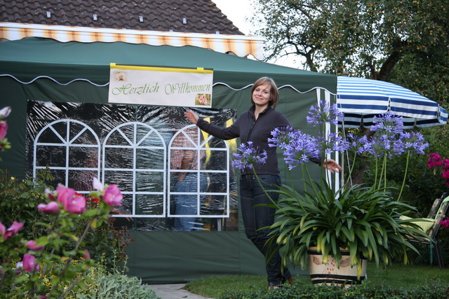 Bianca hat sich fein gemacht und begrüsst die weiteren Gäste. |