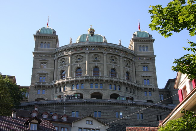 Direkt über der Jugendherberge trohnt das gewaltige Bundeshaus. |