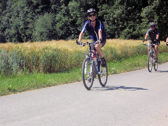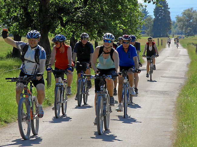 Der Tourenleiter führt uns wieder aus Aarberg hinaus, Richtung Biel. |