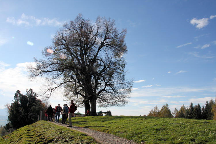 Gegenüber dem Wegweier Ahorn beginnt ein schöner Wiesenpfad |
