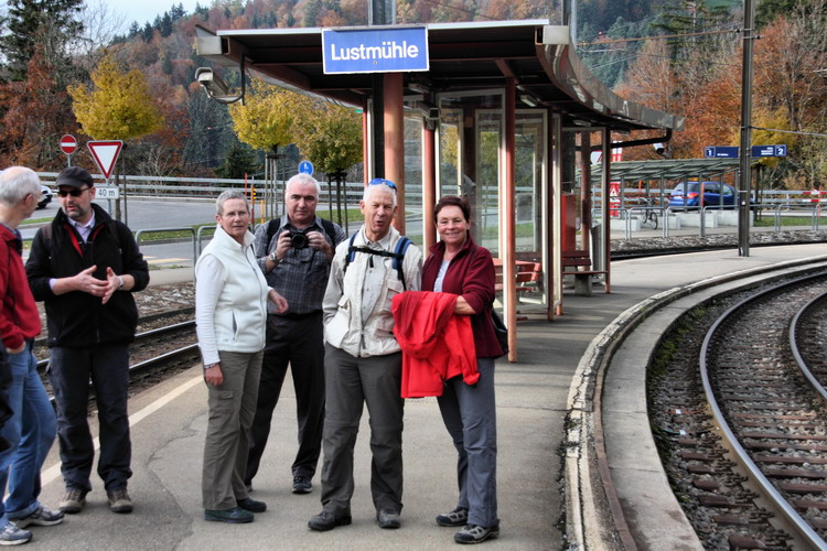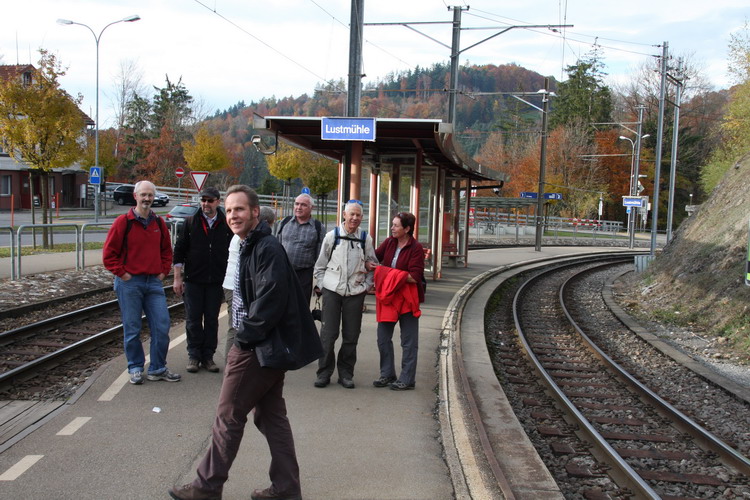 Jetzt trennte uns nur noch ein kurzes Stück Wiese von der Haltestelle Lustmühle |