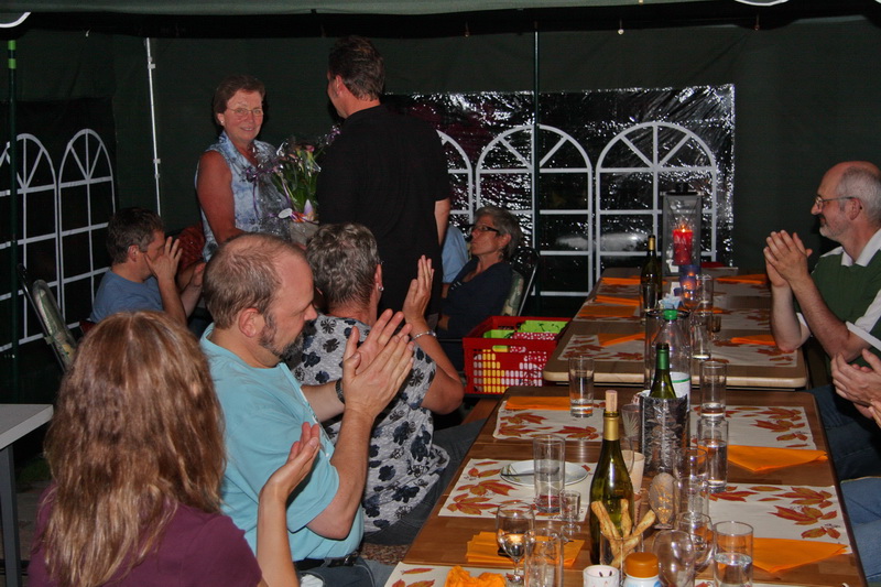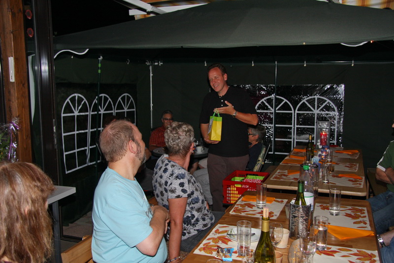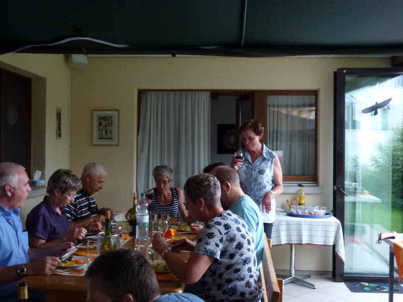 Unser Präsi Peter dank der Gastgeberin mit einem Blumenstrauss, für die Einladung |
