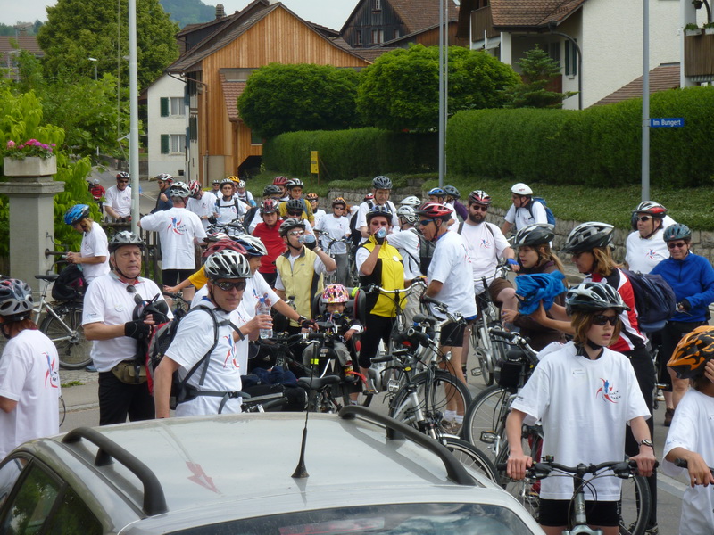 Massenankunft in Teufen zum ersten Zwischenhalt |