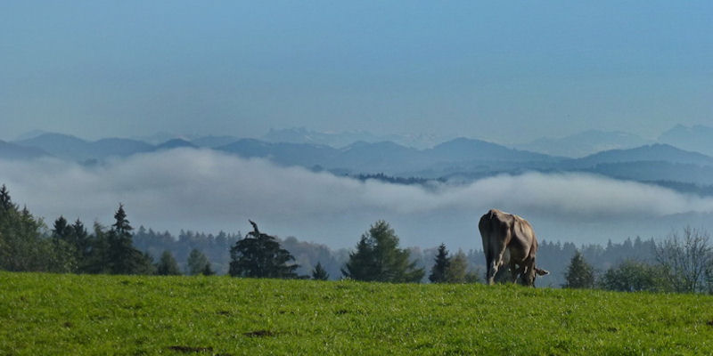 Wir traten aus dem Wald und blickten auf ein schönes Alpenpanorama |
