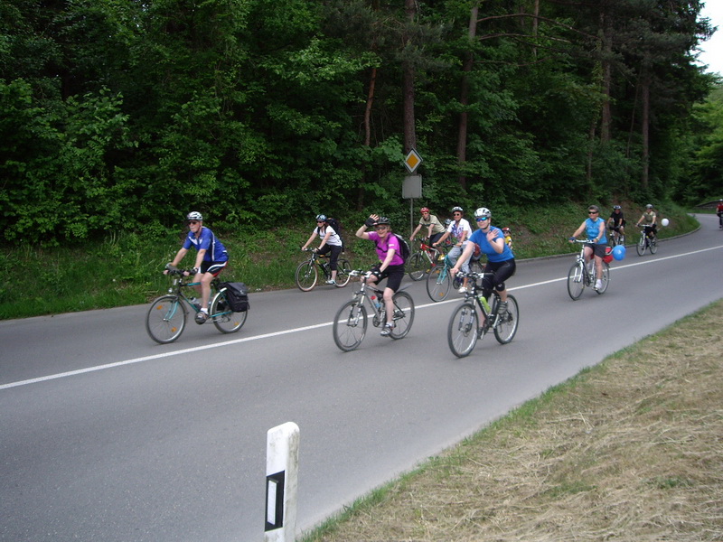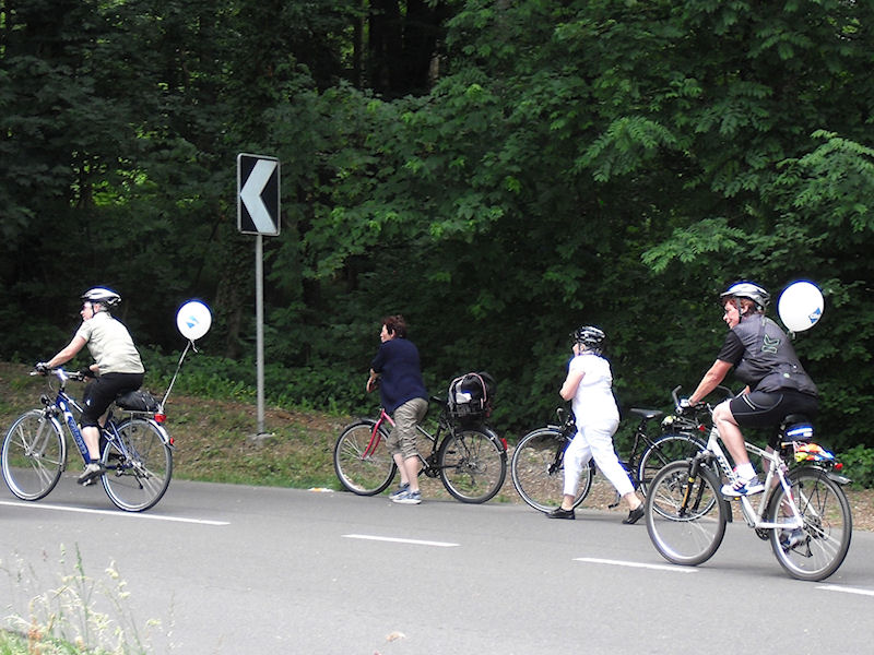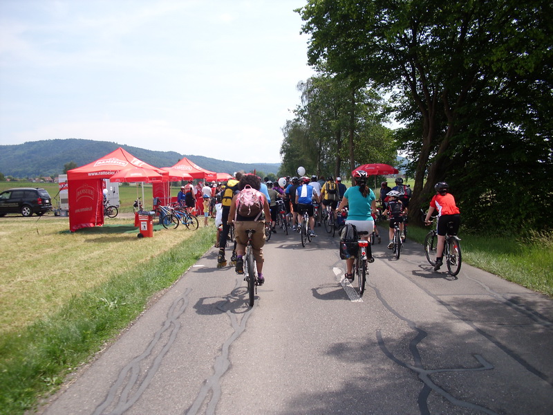 Gemeinsam gehen sie auf die Bergetappe hinauf nach Gailingen, begleitet von Ivonne
