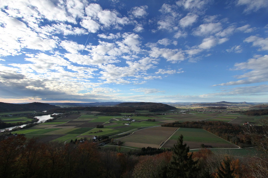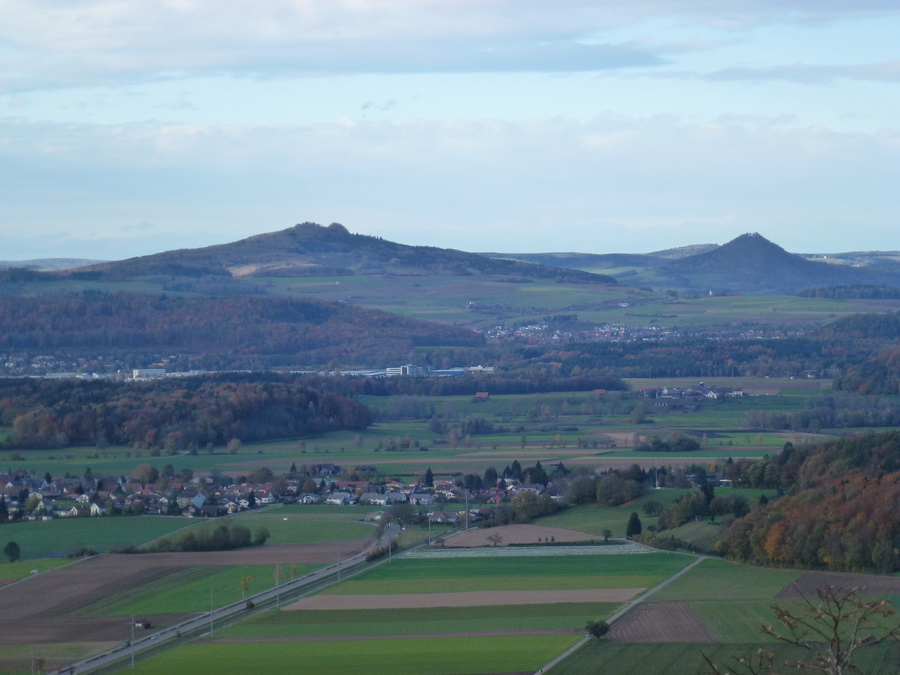 Im Hintergrund die grösste Burg-Ruine Europas, auf dem 688 m hohen Vulkankegel dem Hohentwiel |