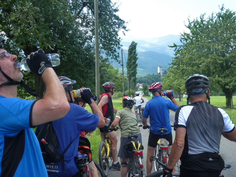 Jetzt wird nochmals Flüssig getank vorne der Turm vom Schloss Sargans |