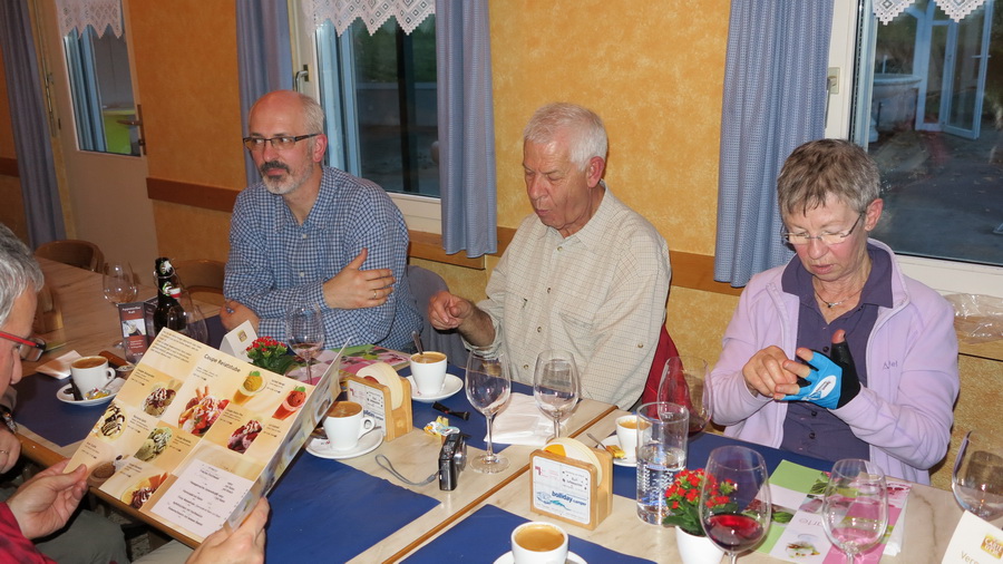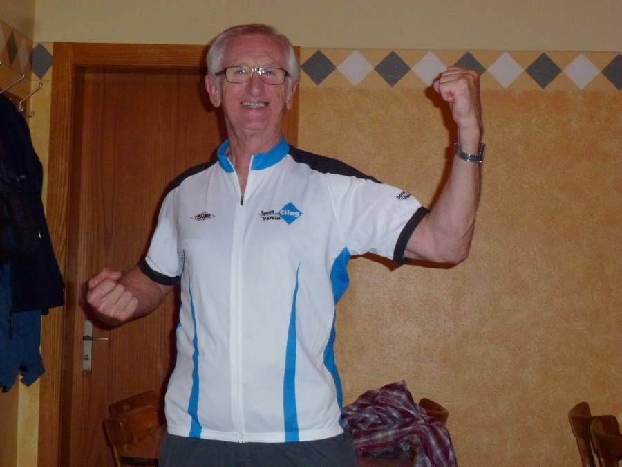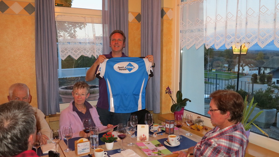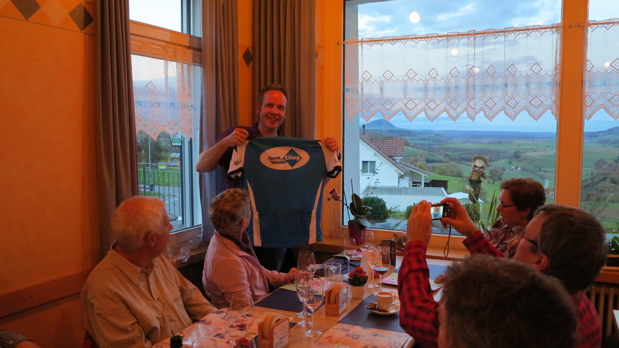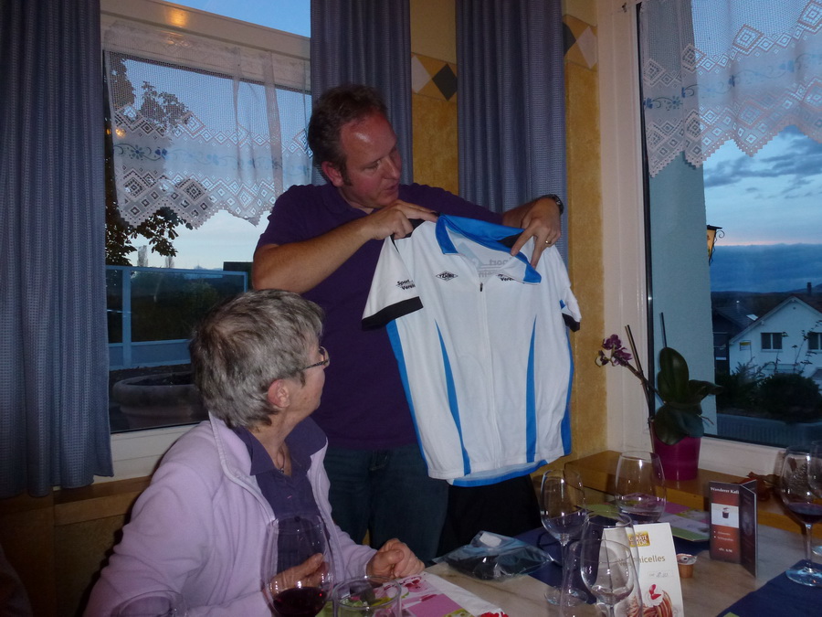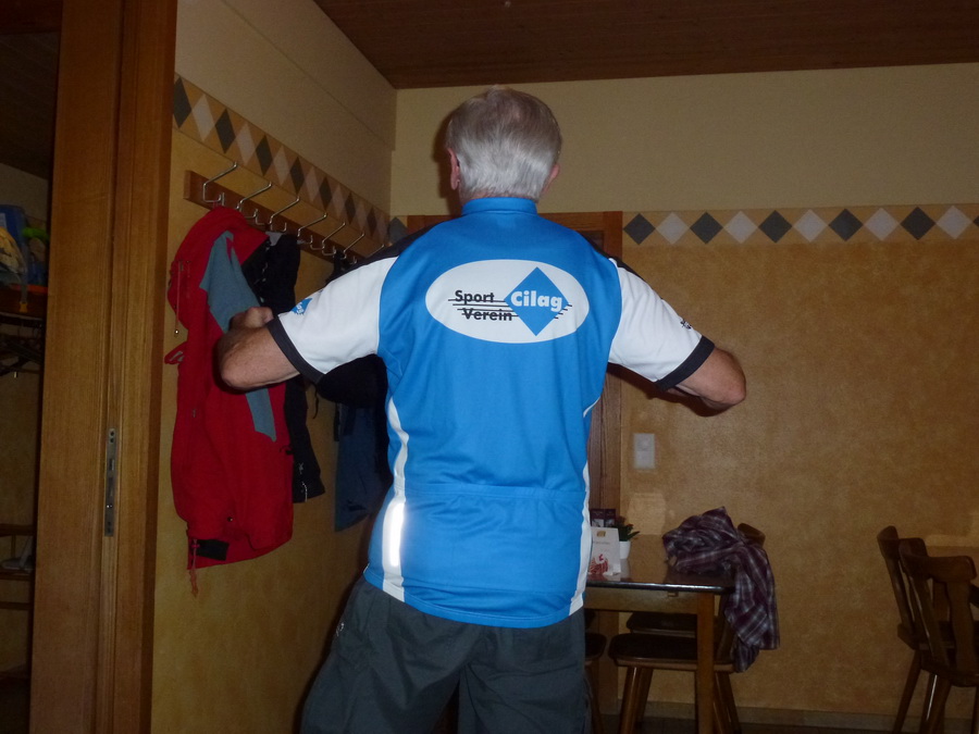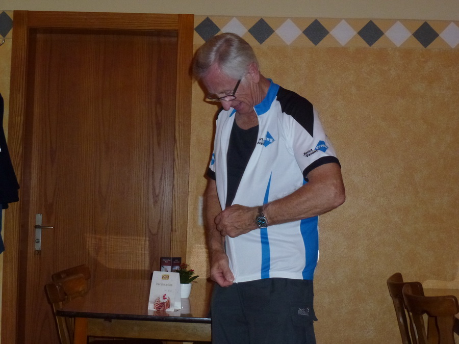 Nach dem Dessert zeigt Peter unser neues Outfitt |