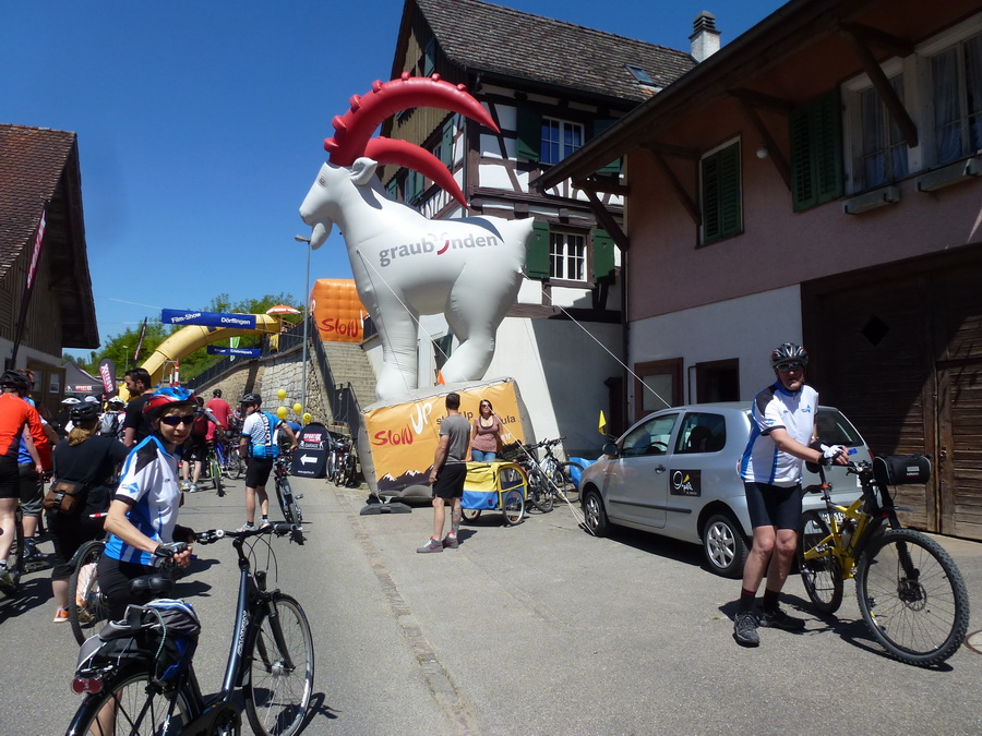 Der Steinbock wirbt für den SlowUp in Bergün/Albula |