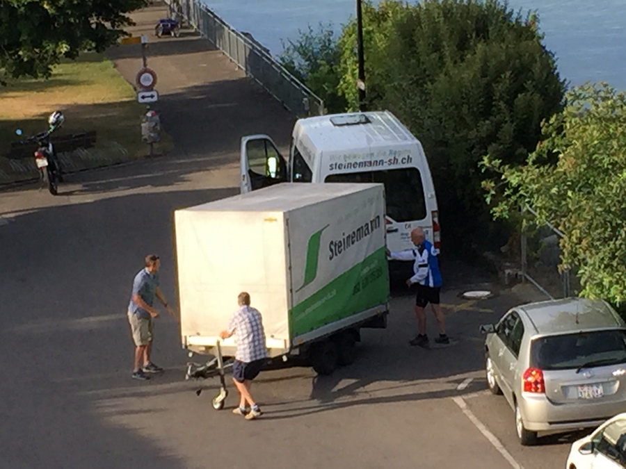 Bus und Anhänger werden in Abfahrtsposition gebracht |