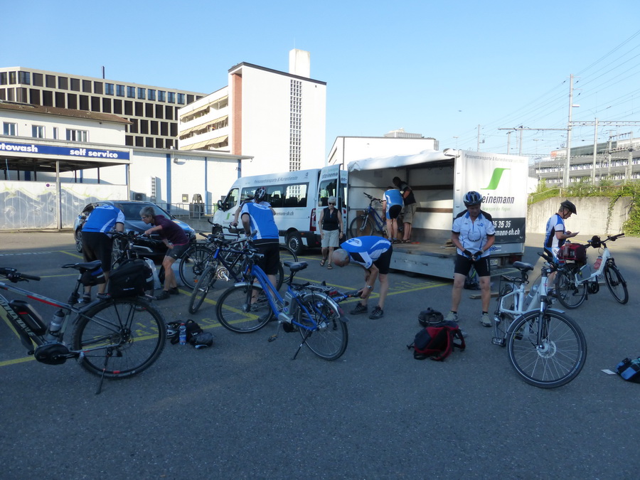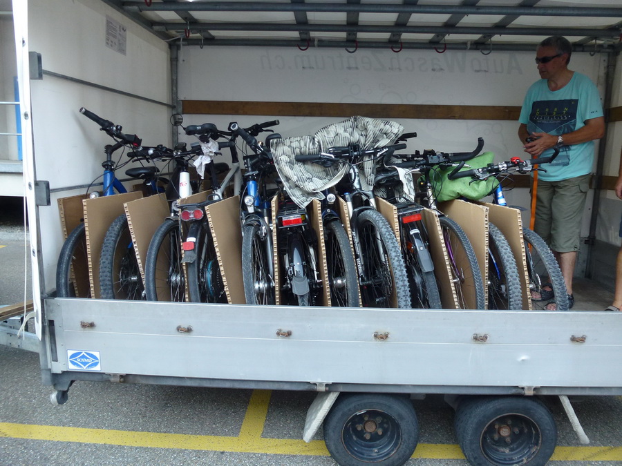 Freitagabend 18:00 Uhr Velo verladen. Super ! wir haben den grösseren Anhänger |