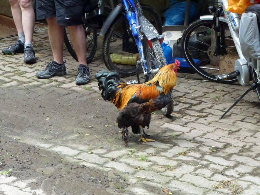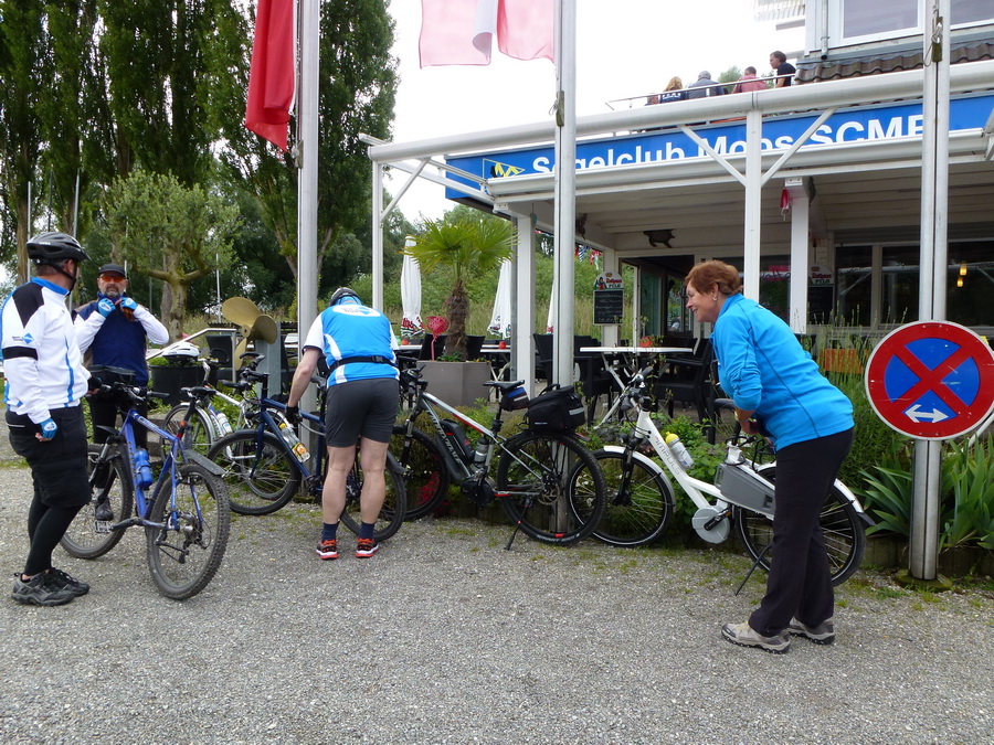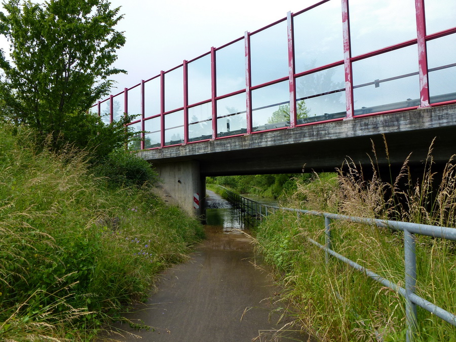 Überschwemmter Radweg in Bietingen, das hies umkehren und über den Zoll fahren |
