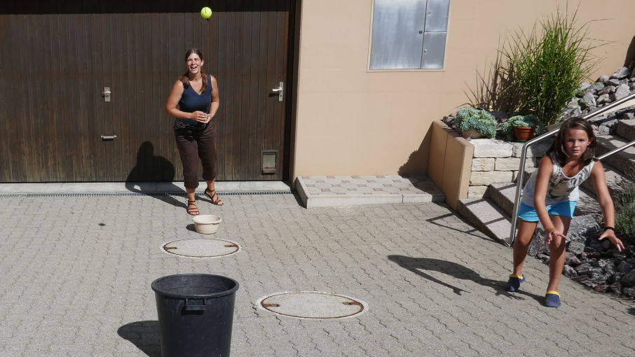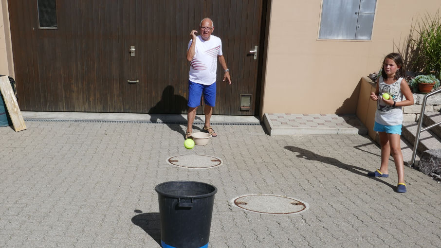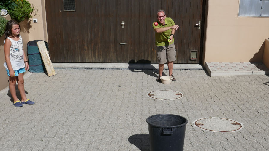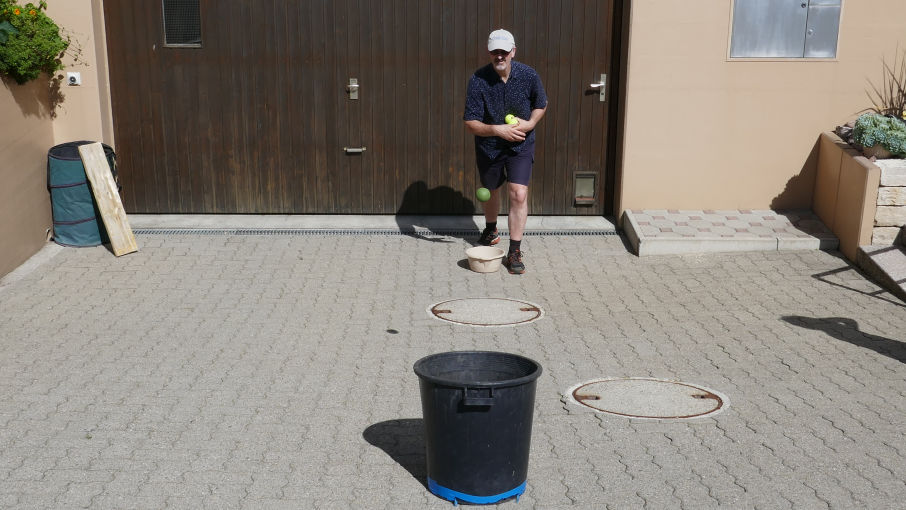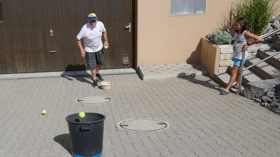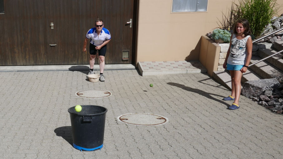 Für jeden Ball der im Kübel landete wurden 5 Punkte vom gesamten Parcour-Resultat abgezogen. So konnte das Endergebnis noch stark verbessert werden |