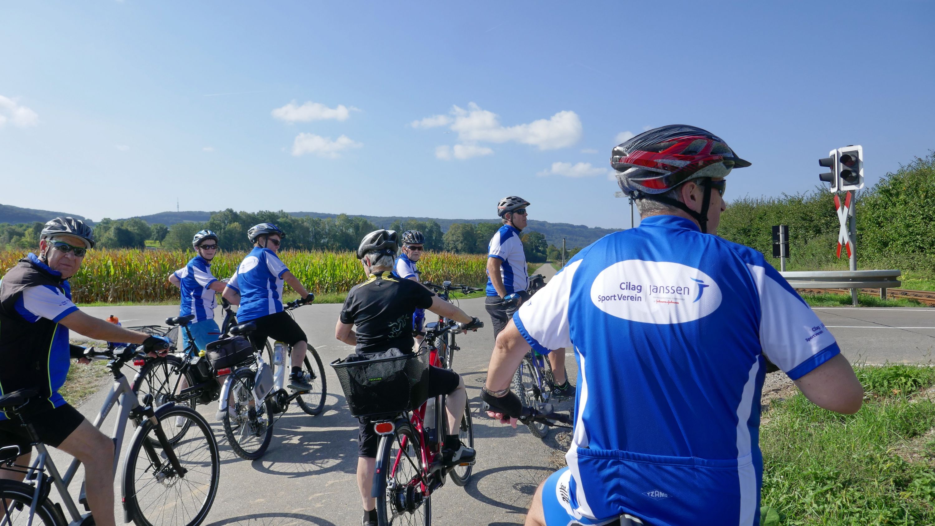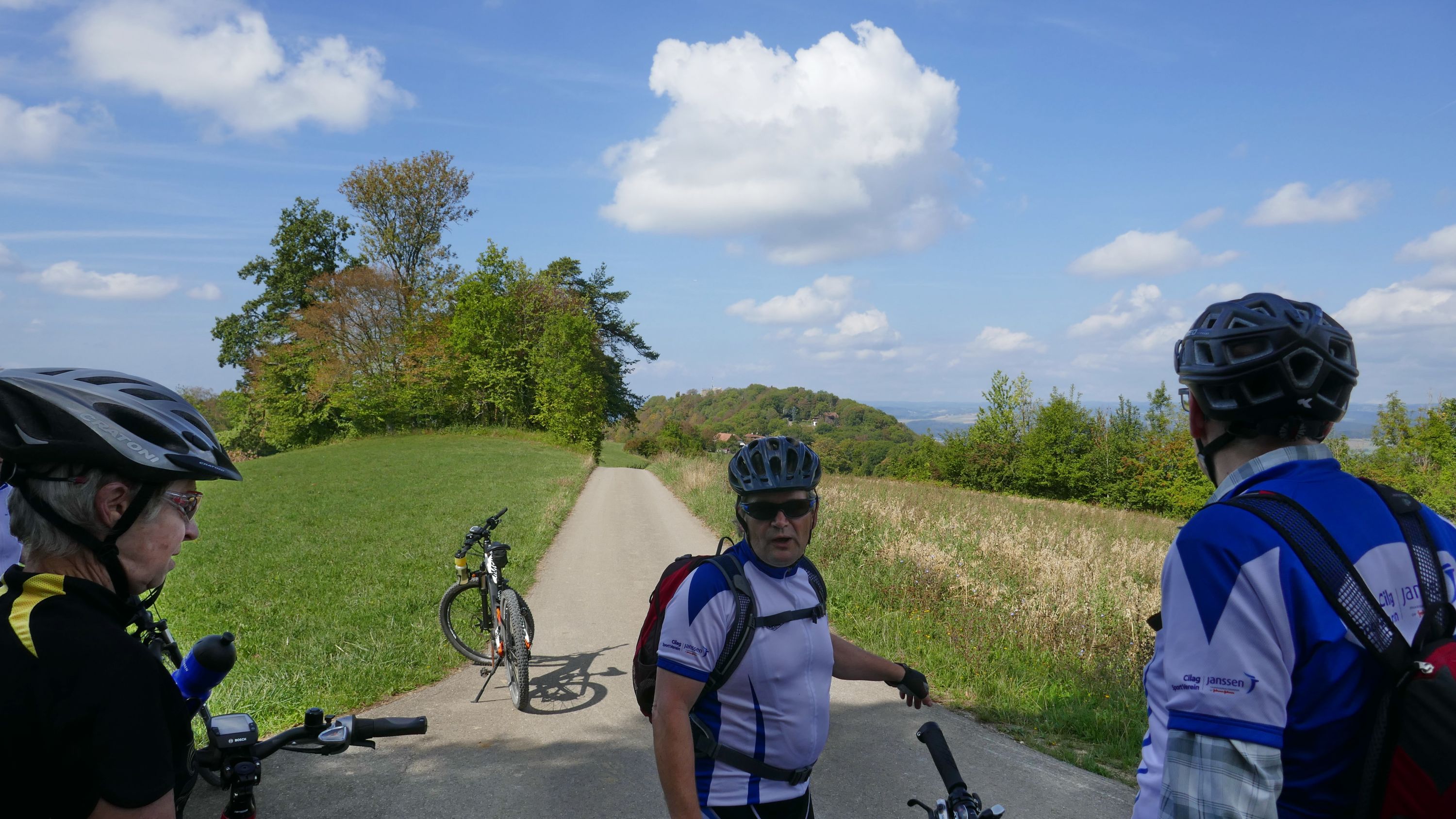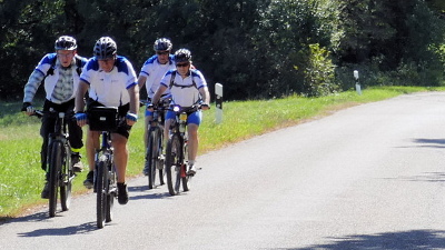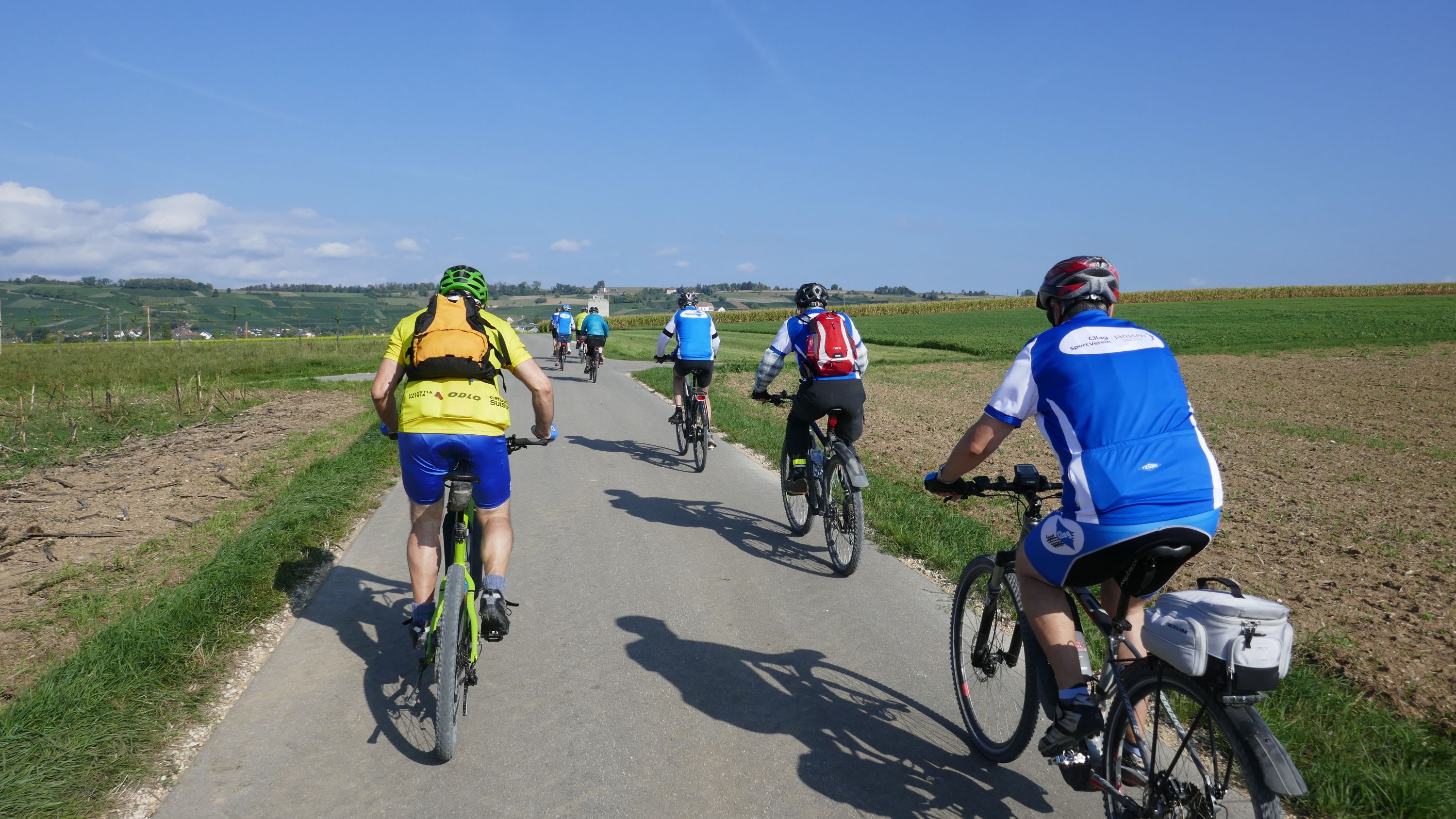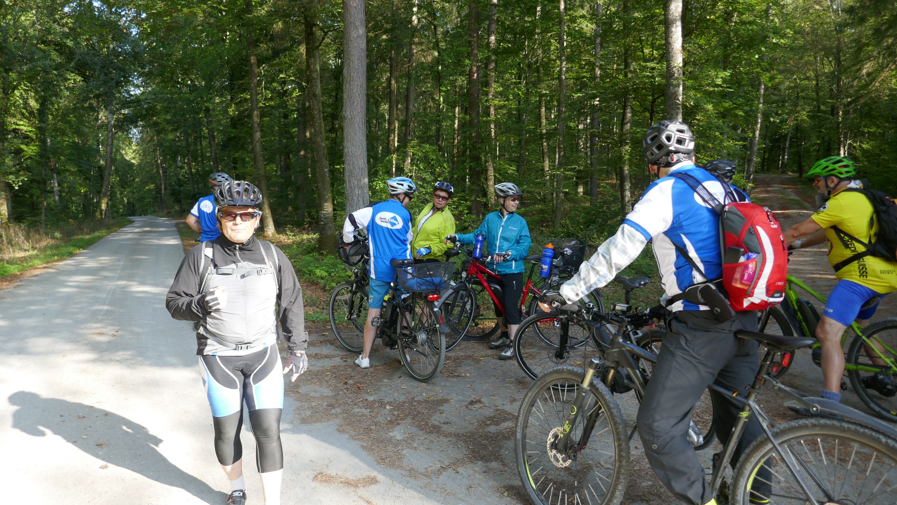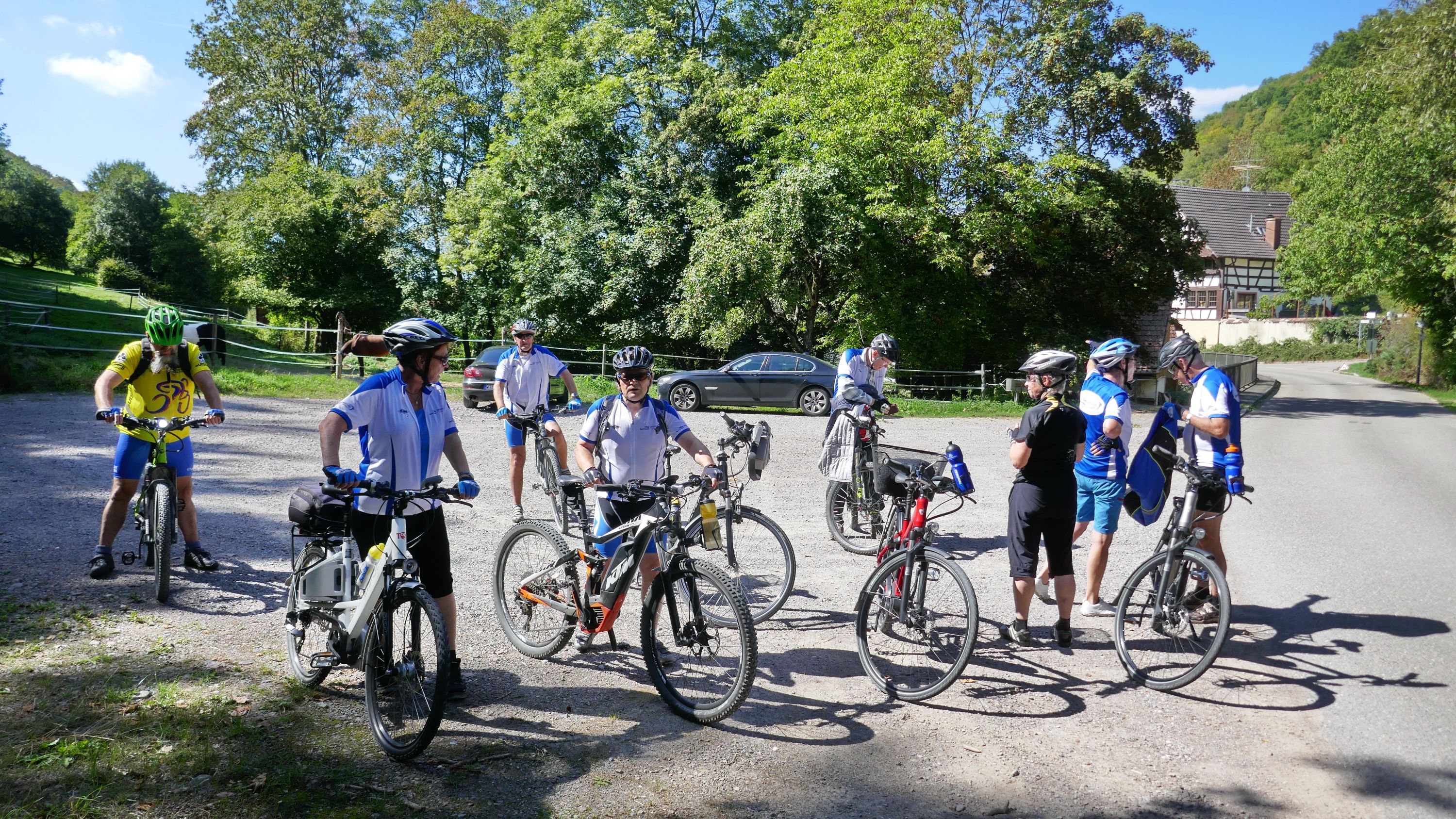 Nach Guntmadingen wechselten wir auf den Klettgauer Veloweg, welcher über Neunkirch nach Trasadingen führt, wo wir nach der Grenze Erzingen erreichten. Von hier führte die Route nach Geisslingen, dort verliessen wir die Hauptstrasse und bogen in einen Waldweg ein. Auf diesem 5 km langen, steil ansteigenden Forstweg (Eckweg) waren alle gefordert, doch die E-Biker einiges weniger.