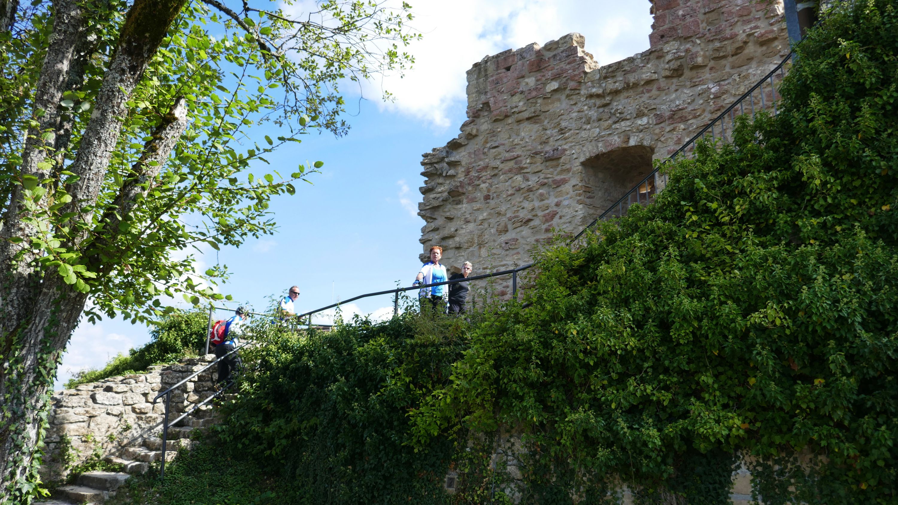 Hier kamen unsere beiden Motorlosen an die Grenze ihrer Kondition. Aber mit einigen kurzen Pausen schafften es auch sie. Hut ab vor dieser Leistung. Am Ende des happigen Aufstiegs war es nur noch ein kurzes Stück bis zur Küssaburg.