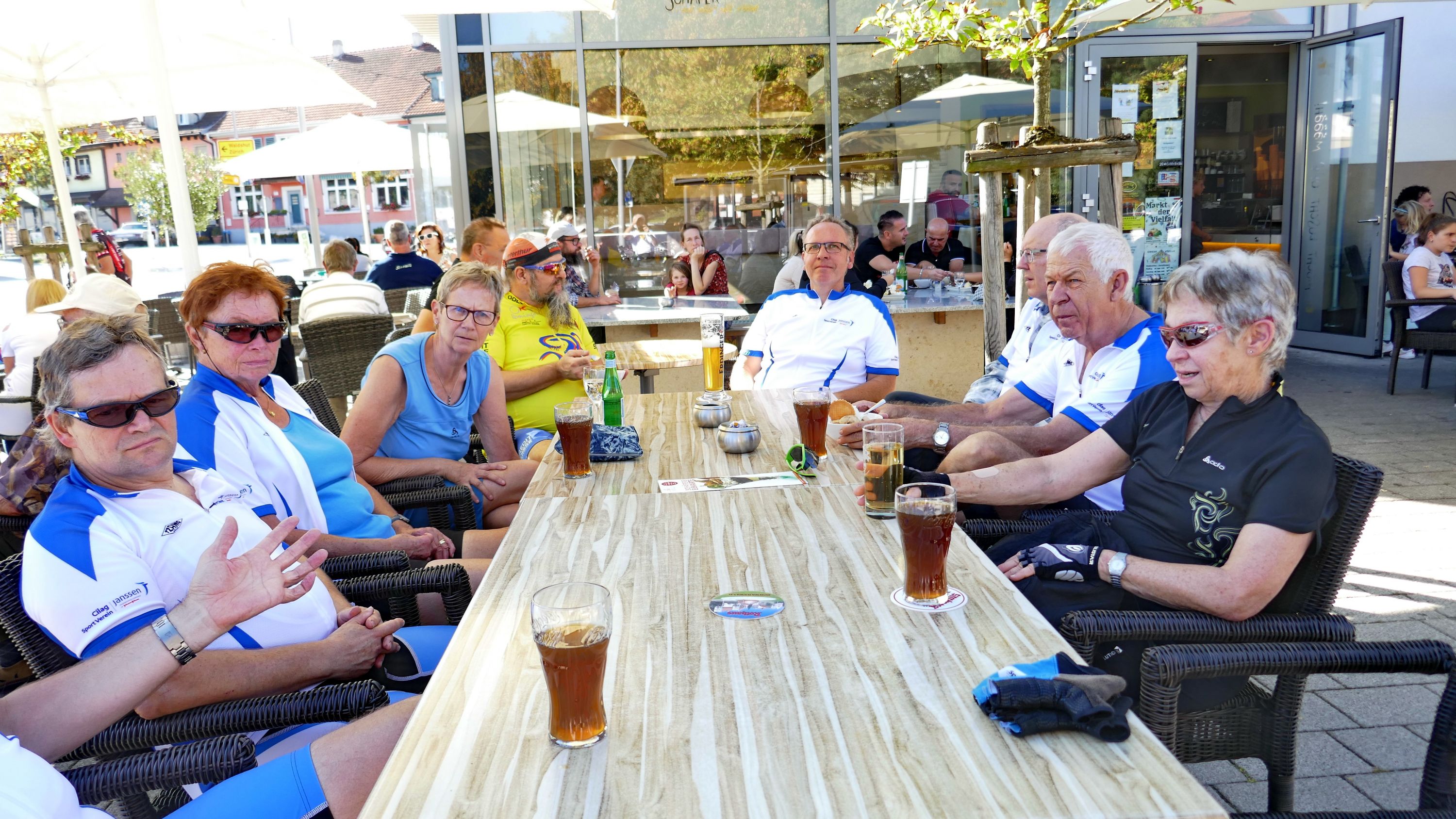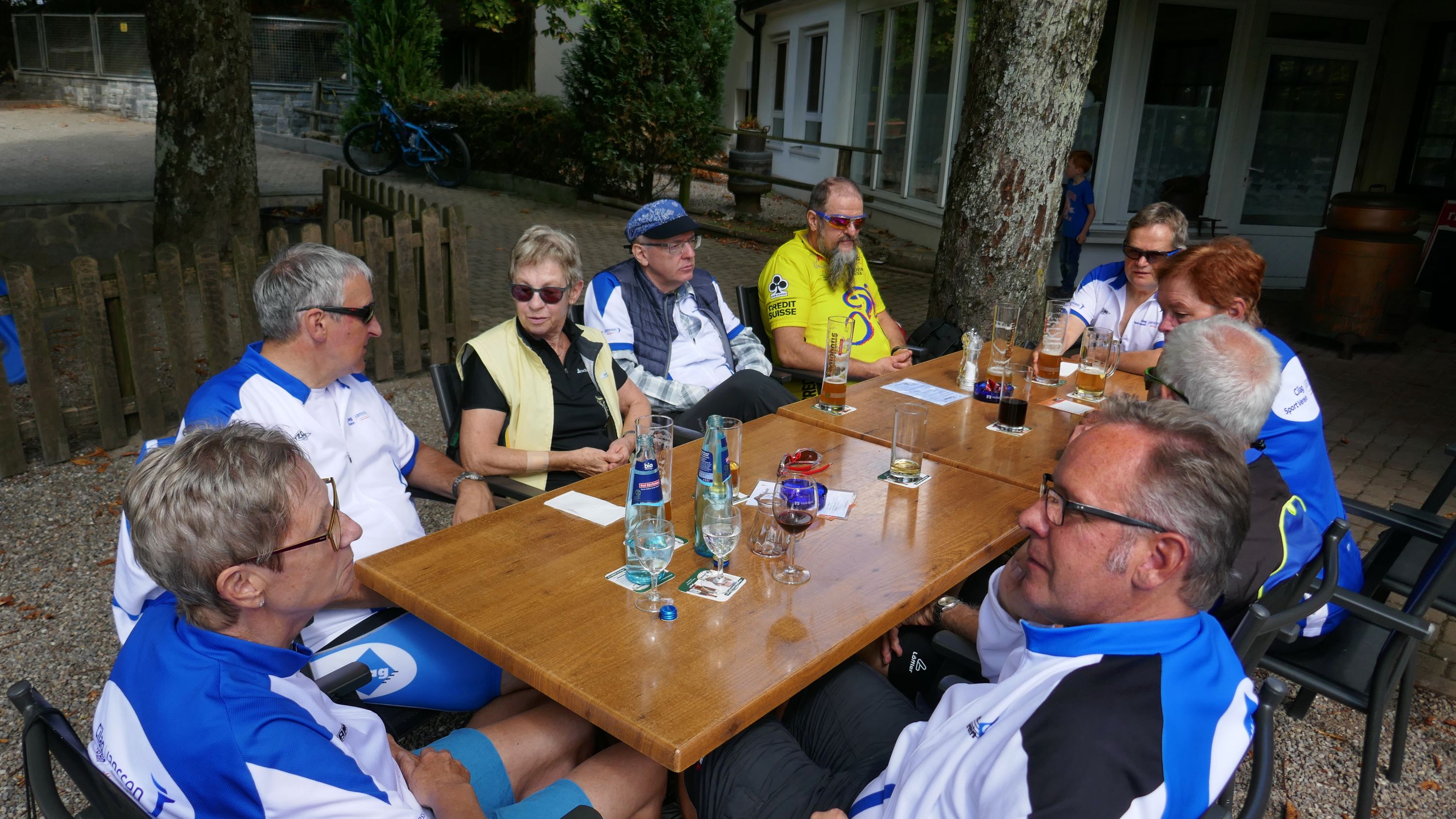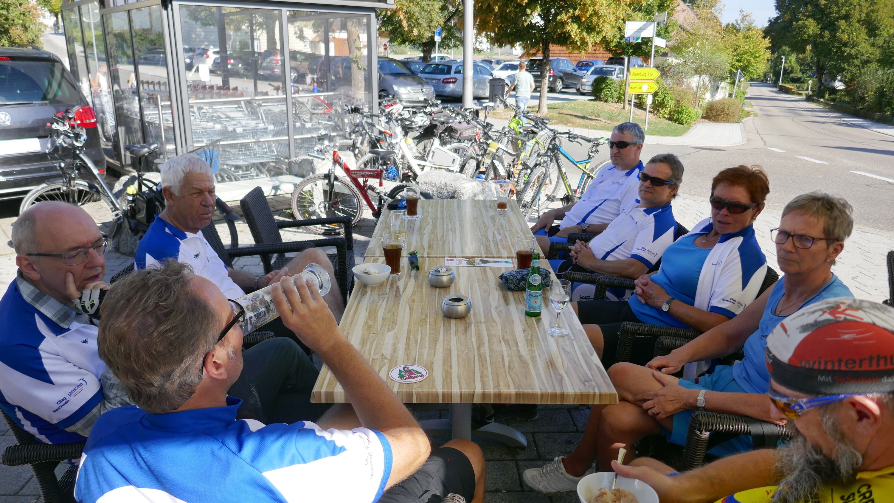 Mit einer lockeren Fahrt, auf einem schönen schmalen Trail, erreichten wir Jestetten. Dort überredete uns Markus zur Einkehr, wo wir bei einem kühlen Getränk und einem Glace, die anspruchsvolle, aber tolle Tour abschlossen.