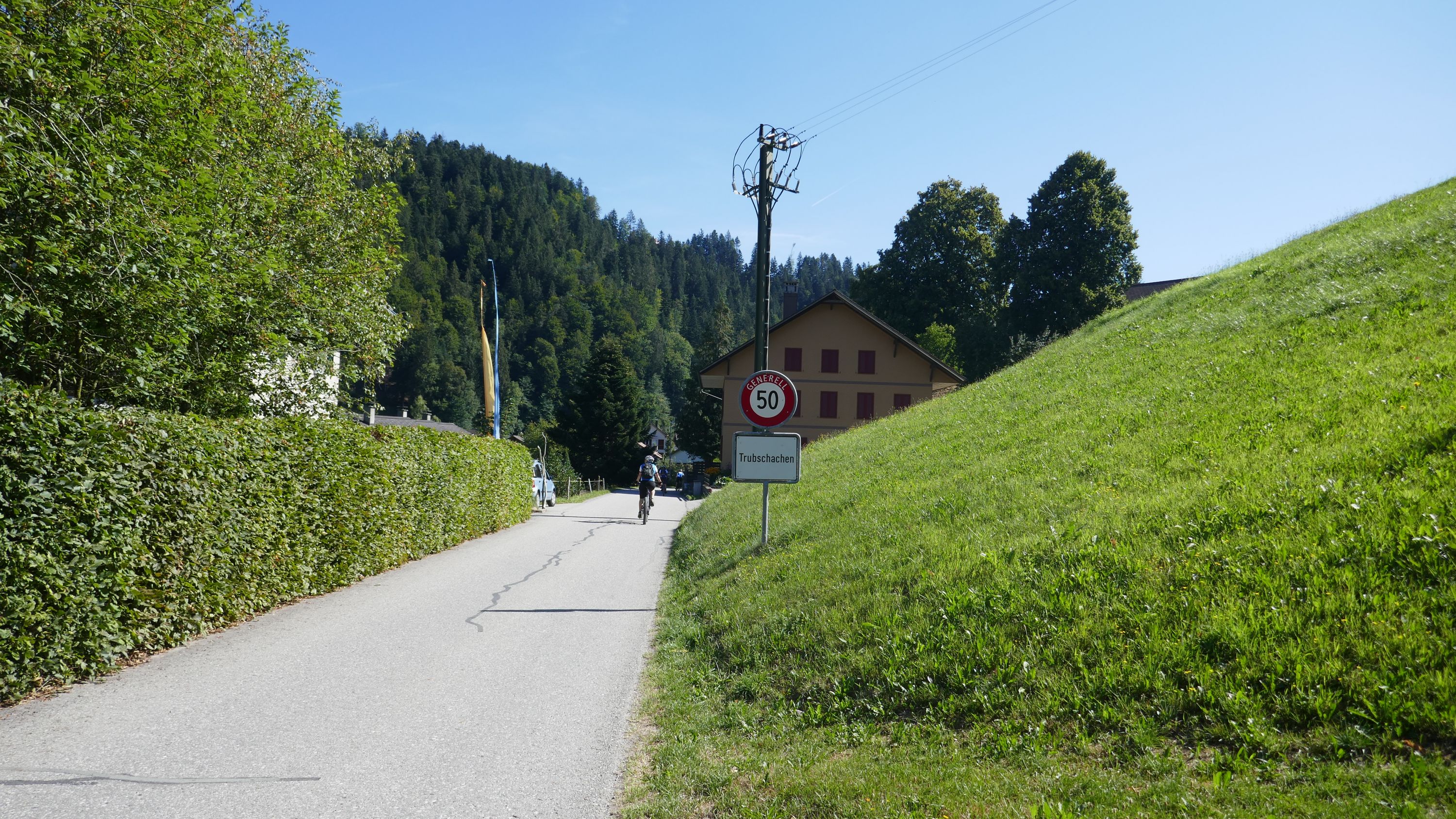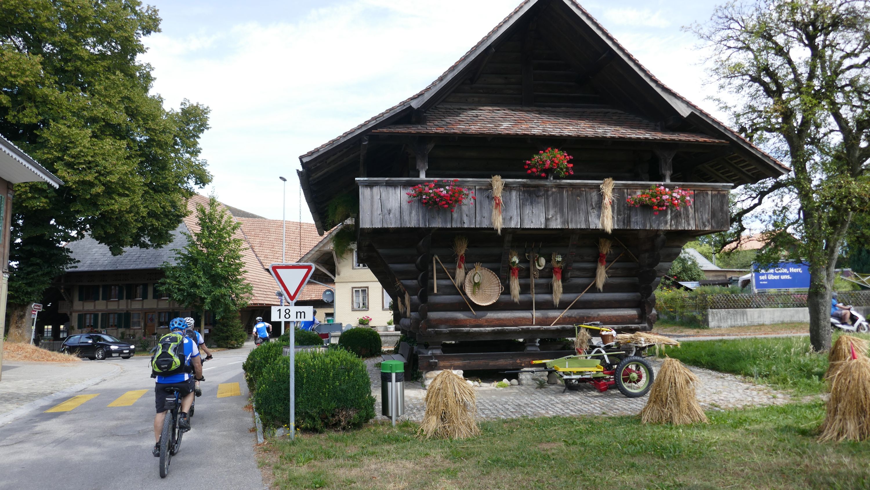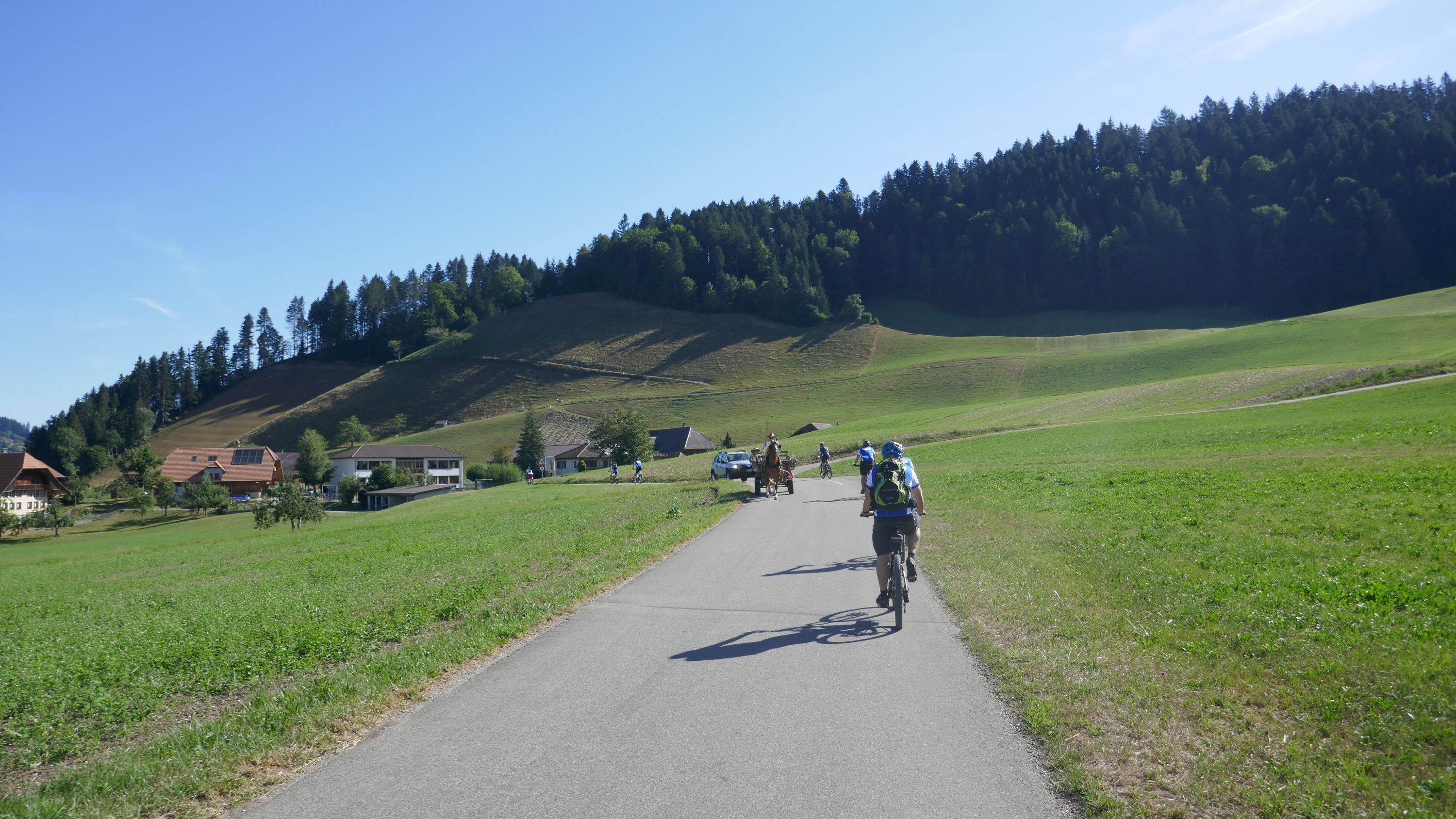 Auf schmalen Asphaltstrassen vorbei an imposanten Emmentaler Bauernhäusern, mit farbenprächtigen Gärten, fuhren wir nach Bowil. Dort schlossen wir die übrigen Fahrer wieder in die Gruppe ein. Anschliessend ging es auf dem Veloweg durch viele kleine Weiler über Signau, Schüpbach bis Langnau im Emmental und weiter auf der Emmental-Entlebuchroute bis Trubschachen.