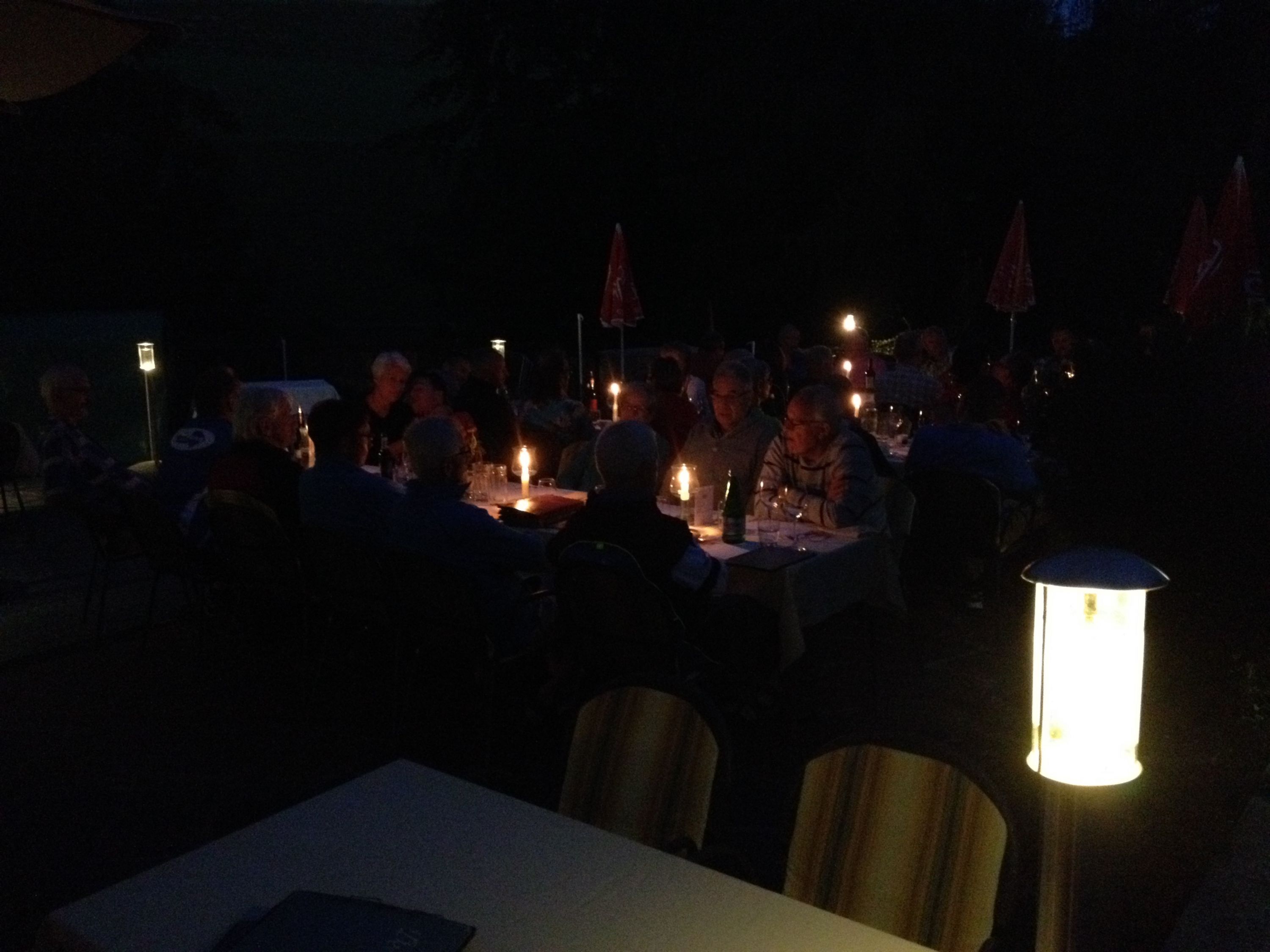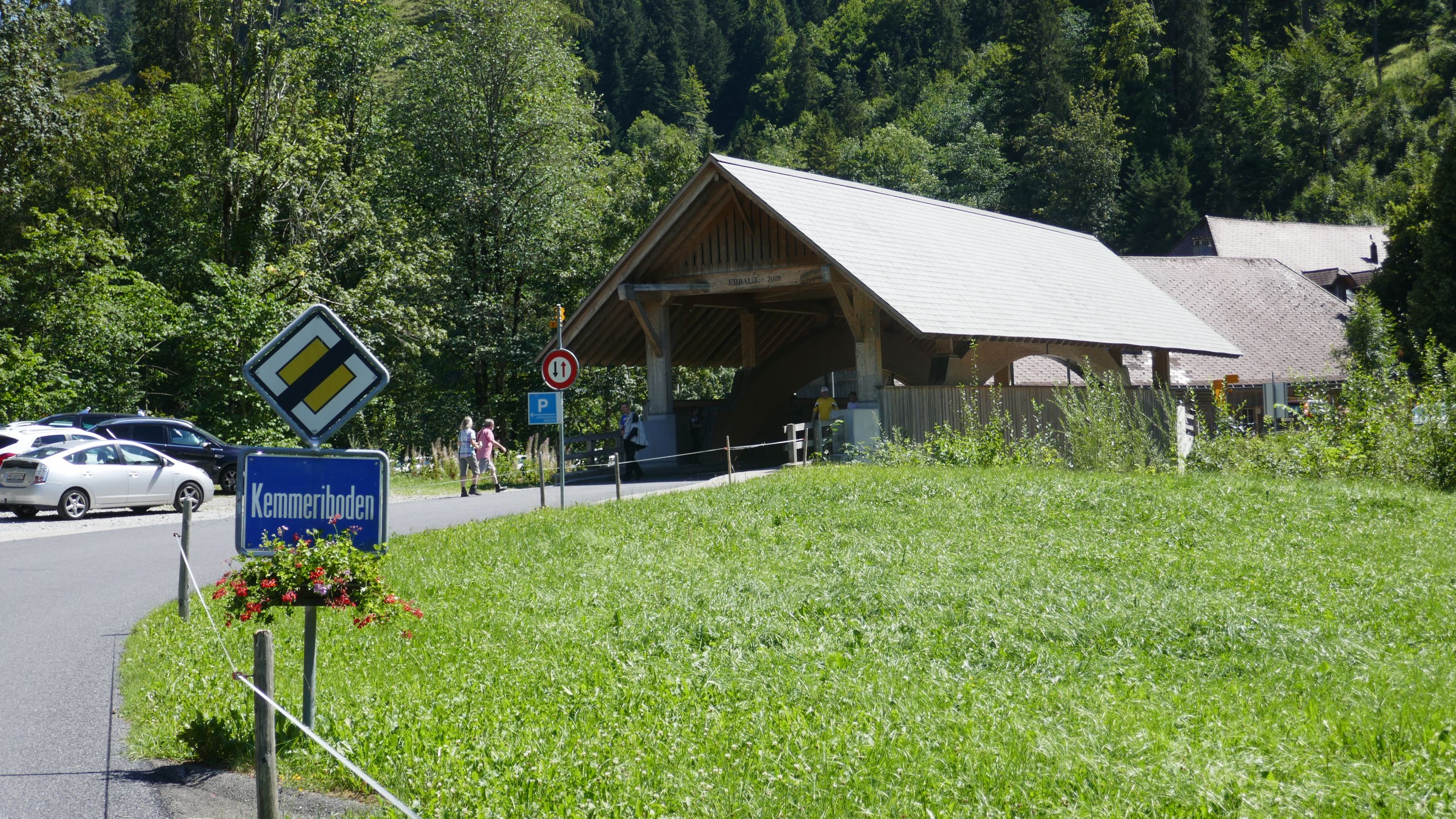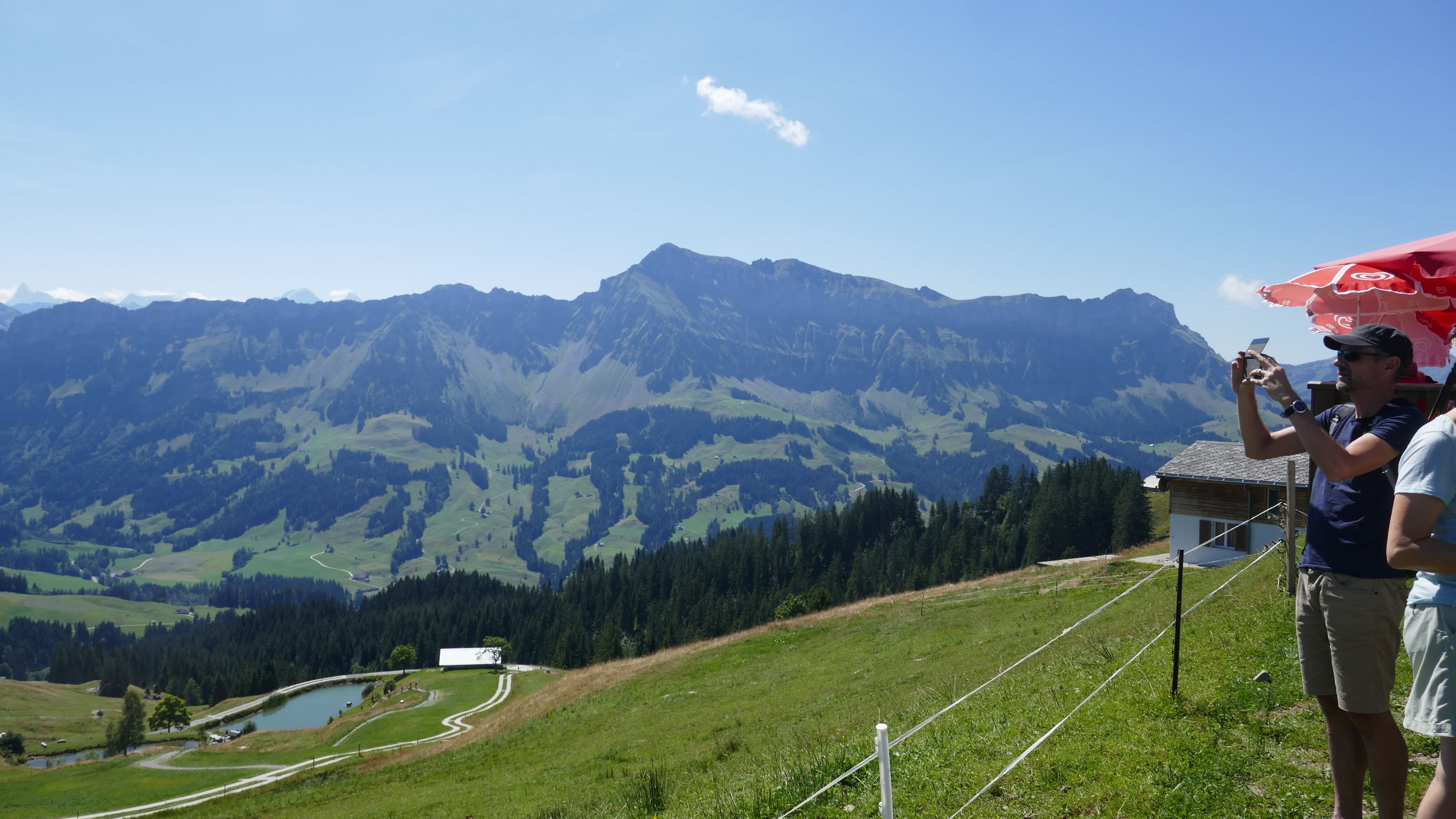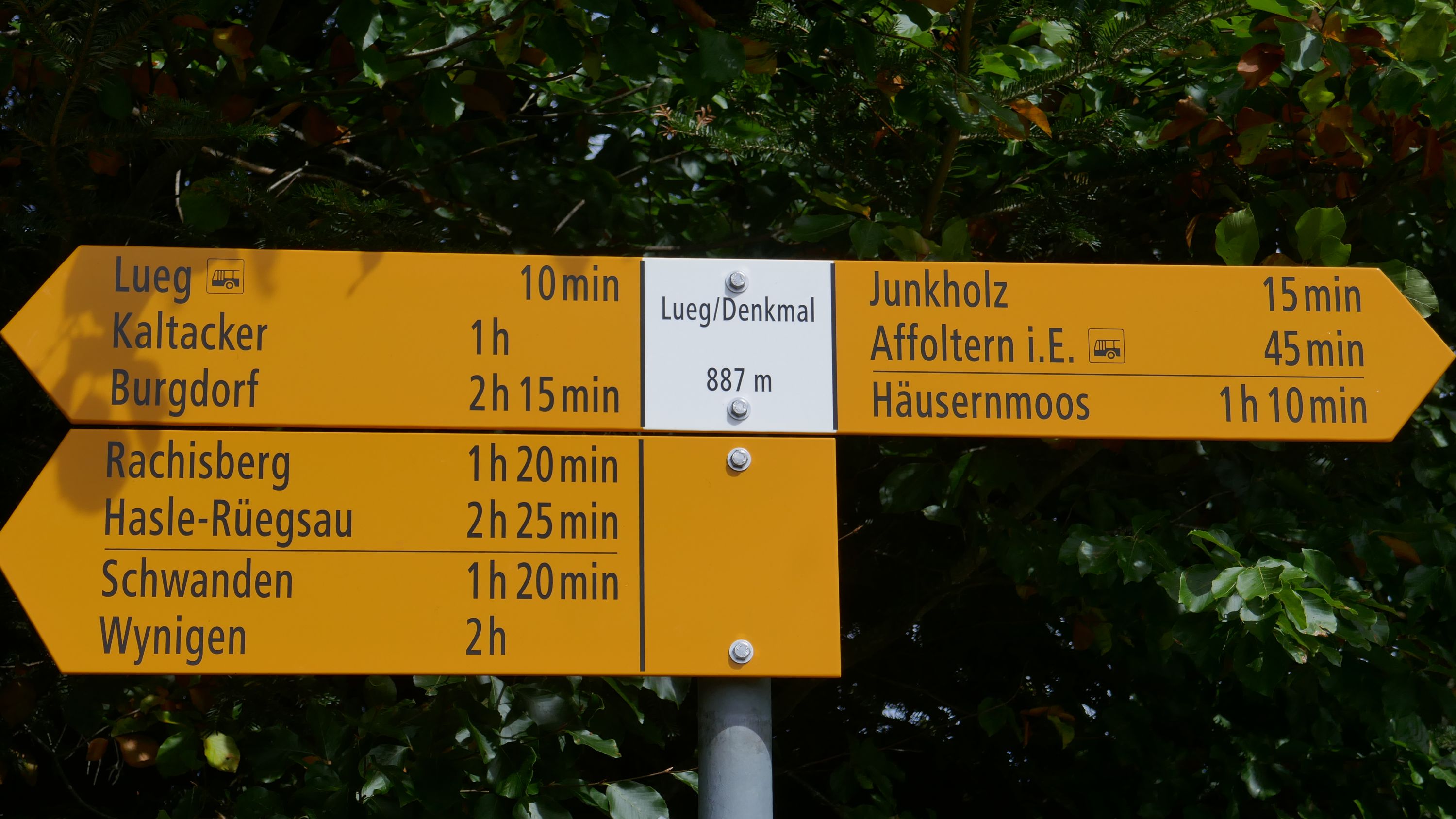 Im Hirschen Kaltacker hielten wir unsere Mittagsrast, bevor es mit einer rassigen Fahrt bergab Richtung Burgdorf weiter ging. Nachdem wir Burgdorf hinter uns gelassen hatten, fuhren wir auf dem Veloweg erst der Emme- und später für ein kurzes Stück der Landstrasse entlang bis nach Schafhausen im Emmental. Jetzt folgten wir auf einer Naturstasse der Mittelländer Hügelroute bis nach Walkringen. Steil bergauf und sehr anstrengend zog sich die Strecke durch schattige Waldstücke dem Höhenzug entlang bis auf die Moosegg. Im Ausflugsrestaurant Waldhäusern (980 m ü. M.) konnten wir uns nach dem Anstieg etwas ausruhen und die mittlerweile fast leeren Batterien der e-Bikes kurz aufladen. Mit den Wirtsleuten wurde Viktor schliesslich auch noch einig, nachdem er für die Teilladung der Akkus Fr. 2.- springen liess.