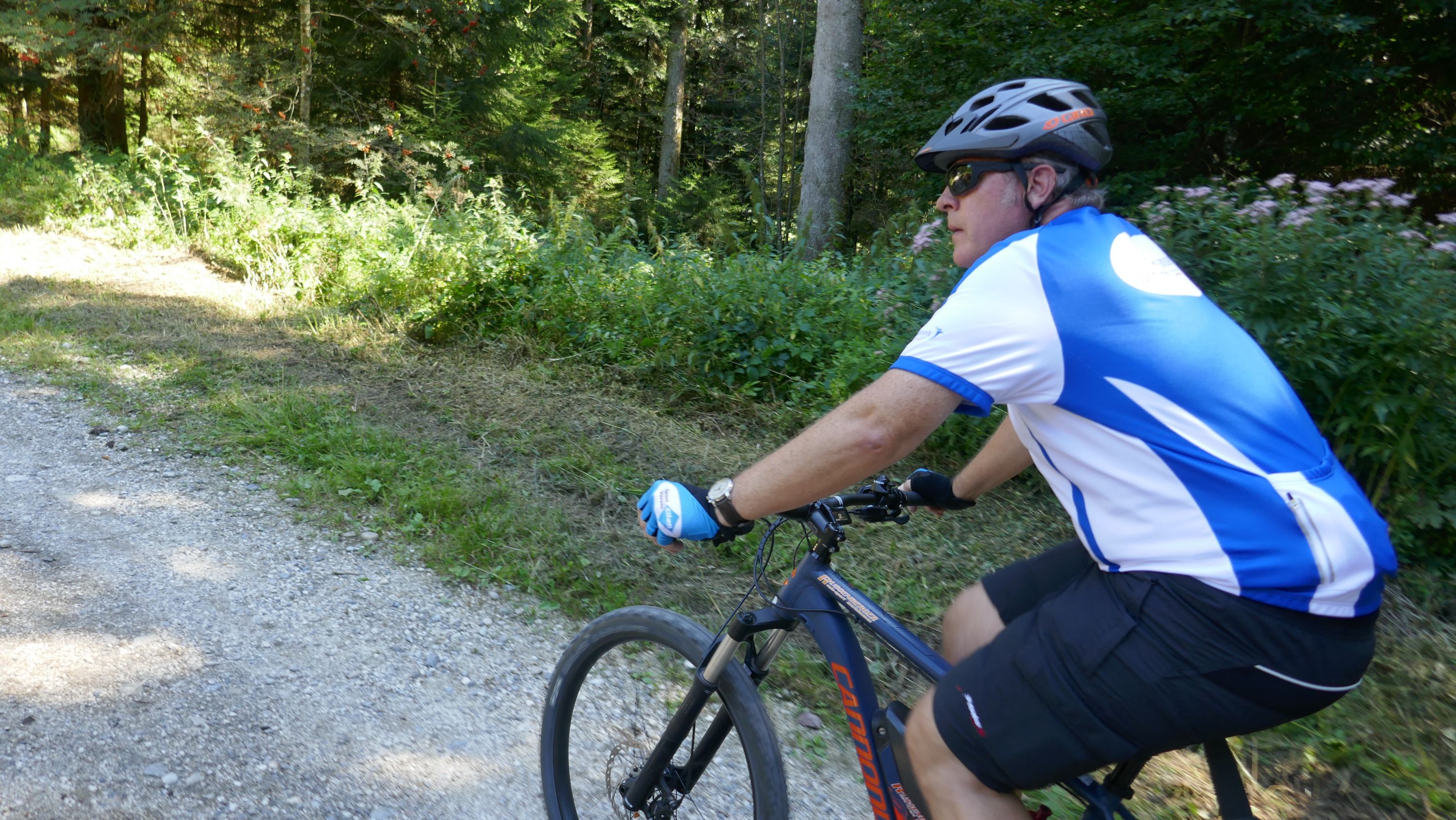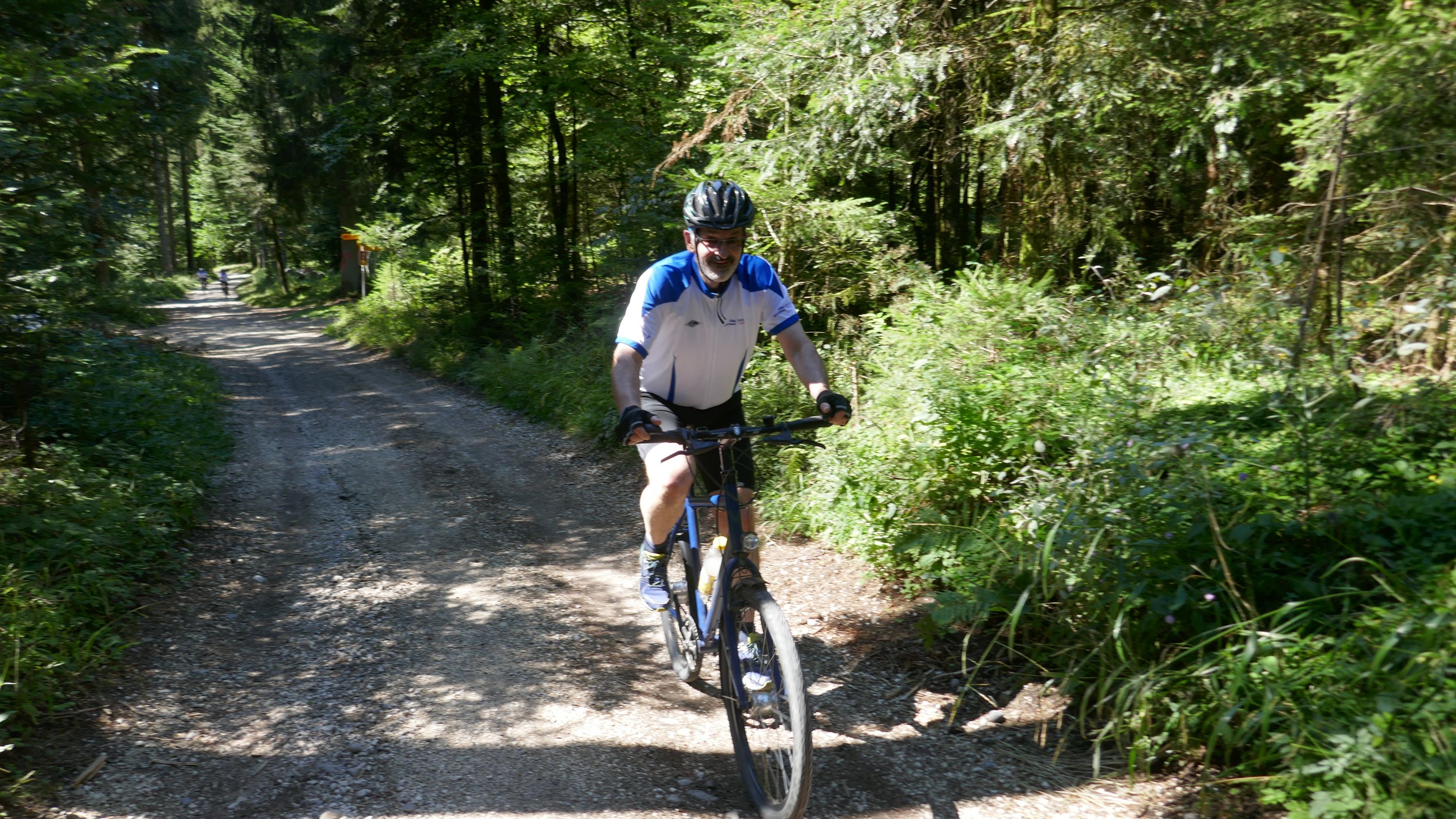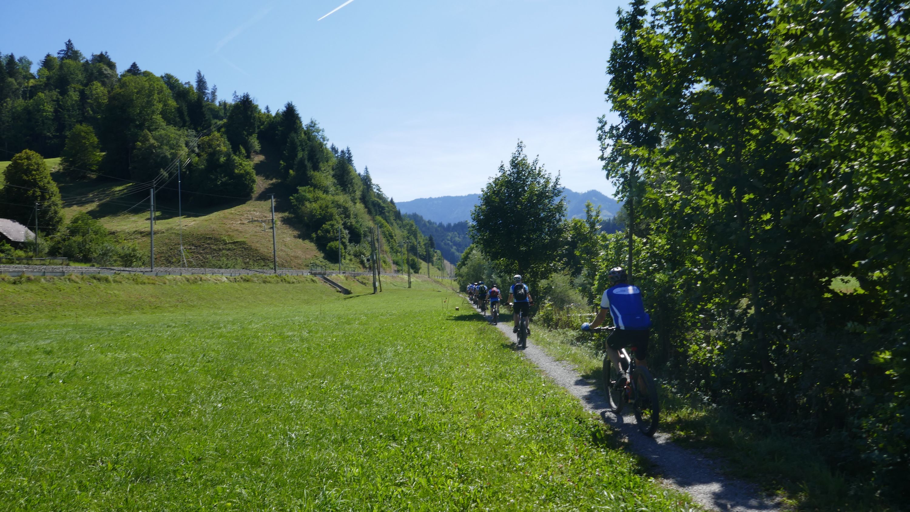 Nach einem guten und reichhaltigen Frühstück starteten wir am Sonntagmorgen um 9:30 Uhr zur zweiten Etappe. Da die von Stefan bevorzugte Strecke nur für Mountainbikes fahrbar war, teilte sich die Gruppe. Gleich zu Beginn wurden wir auf einem langen und steilen Anstieg gefordert. Danach konnten wir uns über die anspruchsvolle Abfahrt freuen, die wie immer viel zu kurz war.