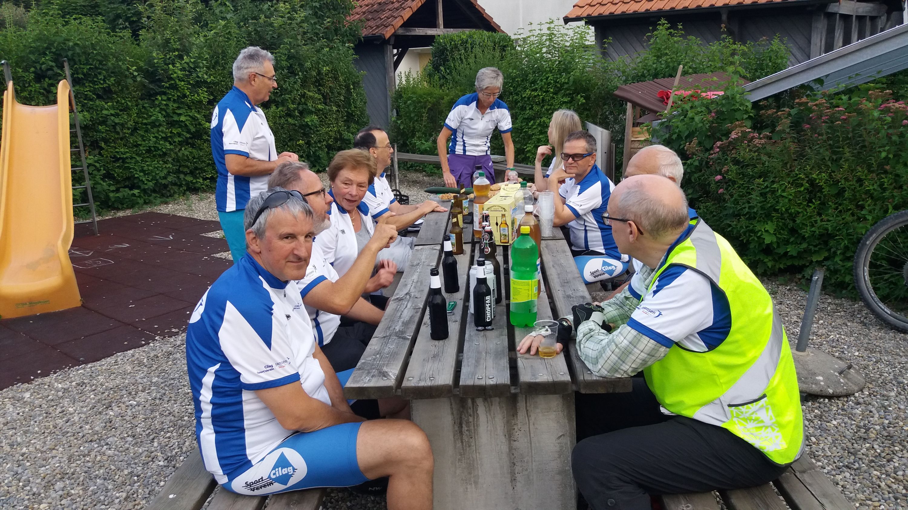 Die B-Gruppe fuhr die im Programm vorgeschlagene Tour via Uhwiesen - Dachsen - Radhof - Marthalen - Benken - Uhwiesen - Feuerthalen, wo sie nach 24 km bei Schabers eintrafen. Kurz zuvor landeten schon die Biker im schönen Garten von Beat und Marianne. Bei einem kühlen Drink und Snaks sassen wir noch eine Weile gemütlich zusammen, bevor jeder seinen Heimweg antrat.