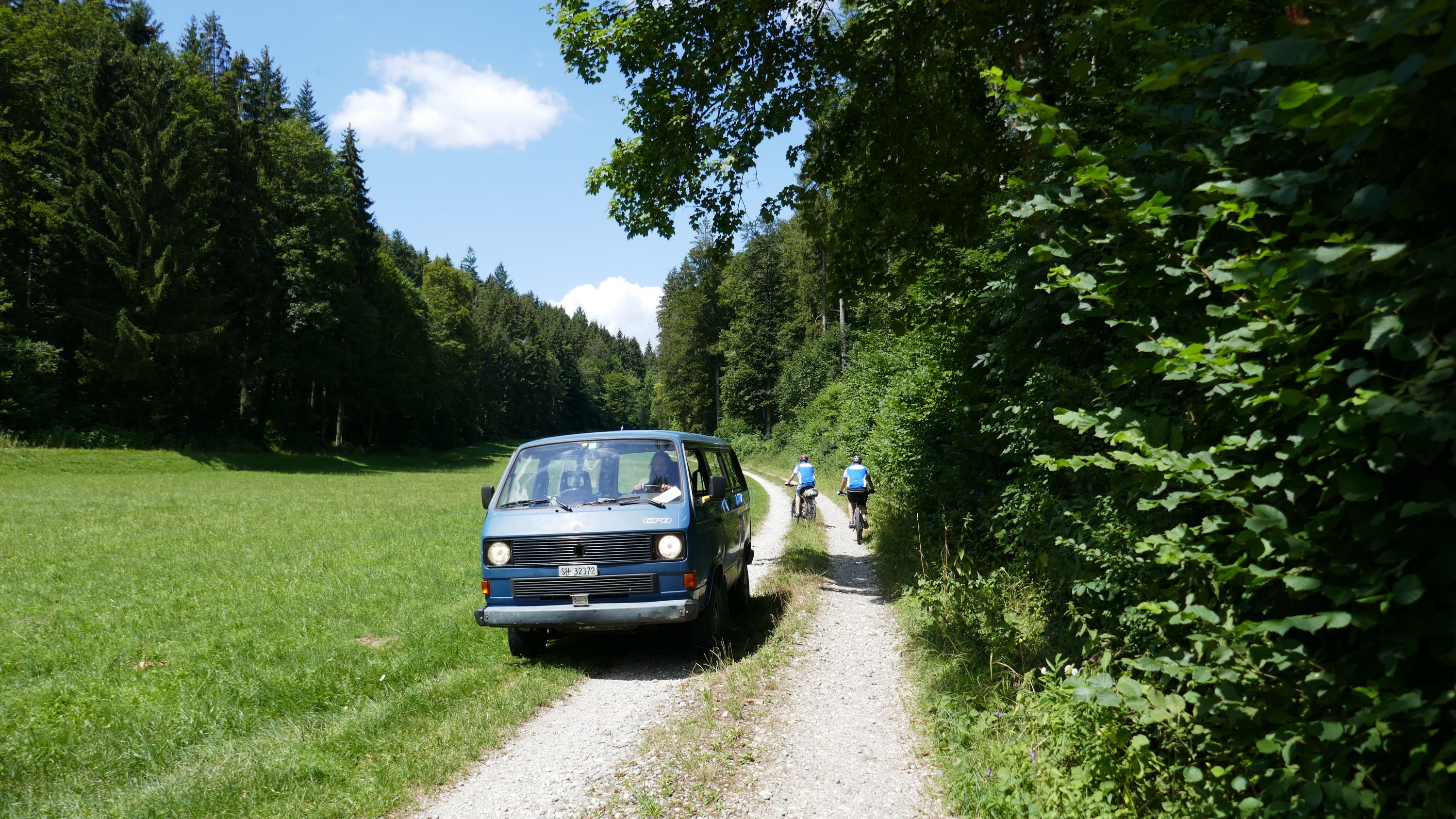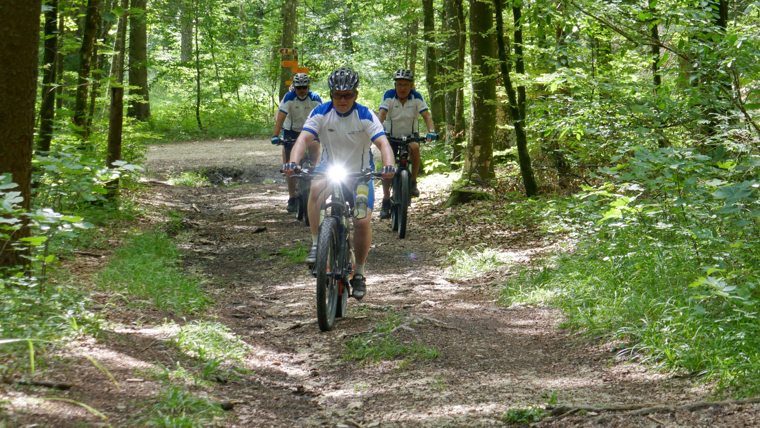 Bei angenehmer Temperatur starteten wir Richtung Dostertal, wo wir zum Osthang des Buechberges abbogen und auf dem Waldweg Stalden bis zum Entenweiher im Birch fuhren.