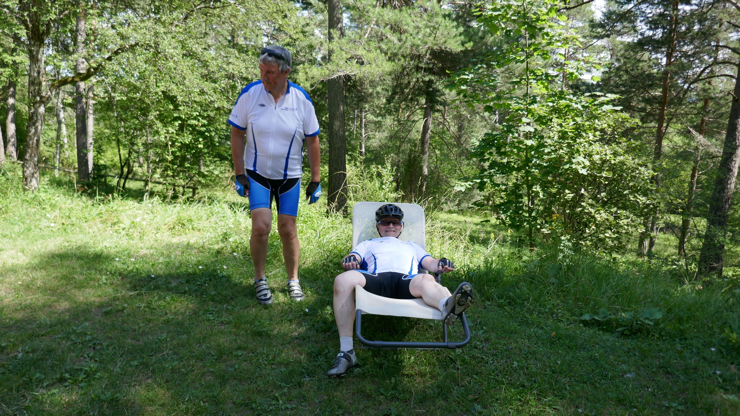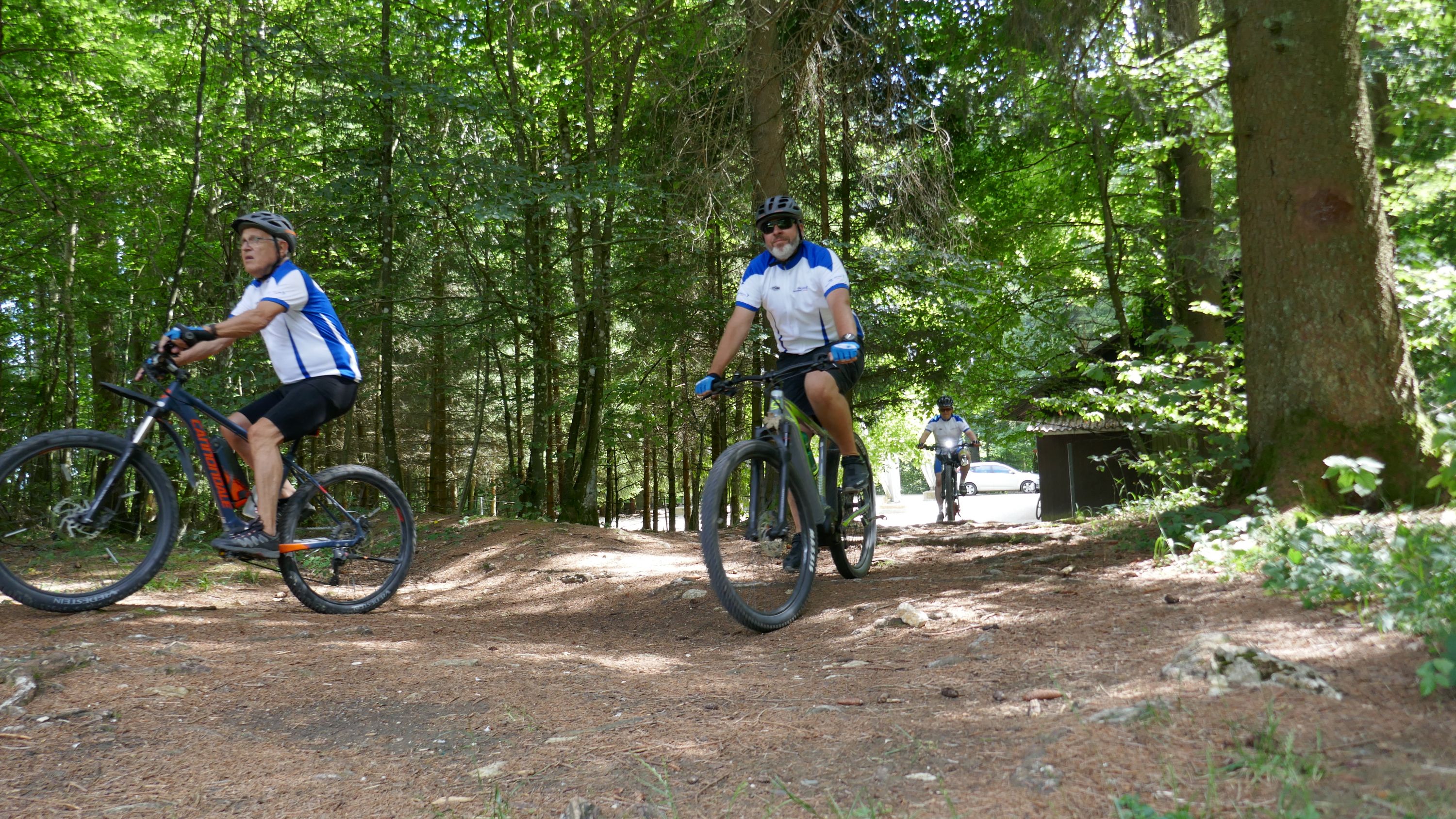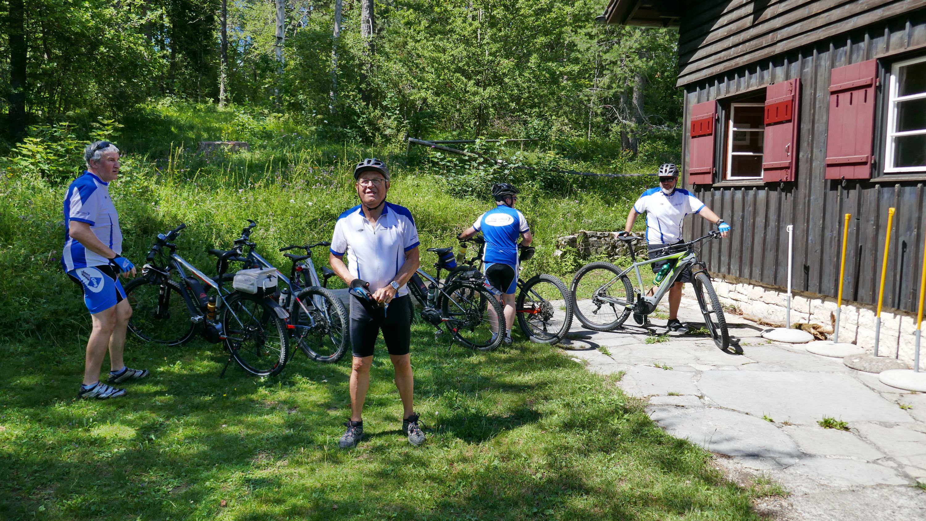 Von dort radelten wir durch das Orserental und erreichten nach dem steilen Anstieg, im hinteren Teil, die Säckelhauhütte. Weiter ging es über den Kreuzweg zum Heidenbaum und auf dem schmalen Wanderweg zur Hasenbuckhütte, wo wir eine kurze Pause einlegten. Sichtlich erfreut war der Hüttenwart, dass er jetzt ein paar Gäste bewirten konnte.