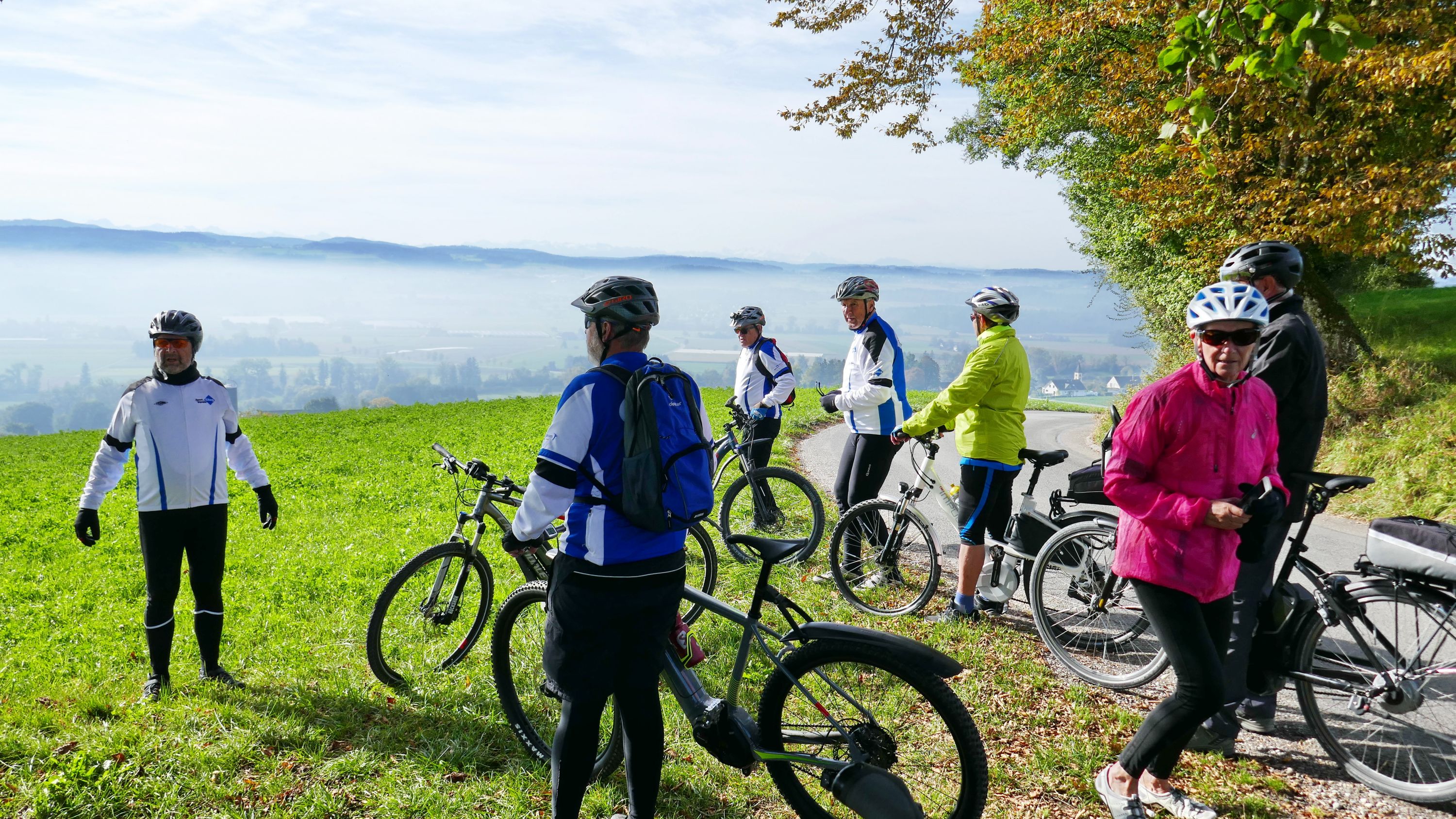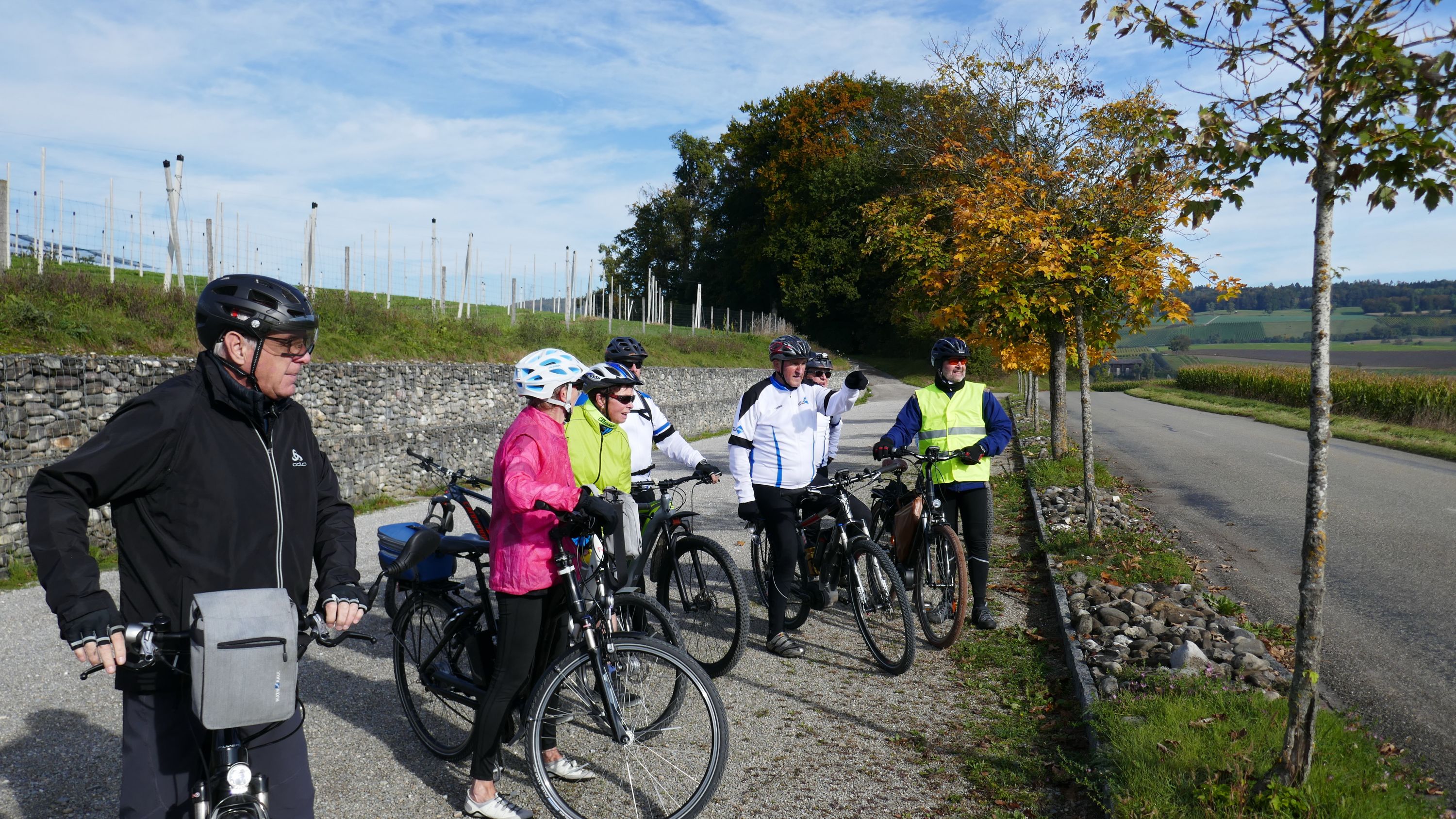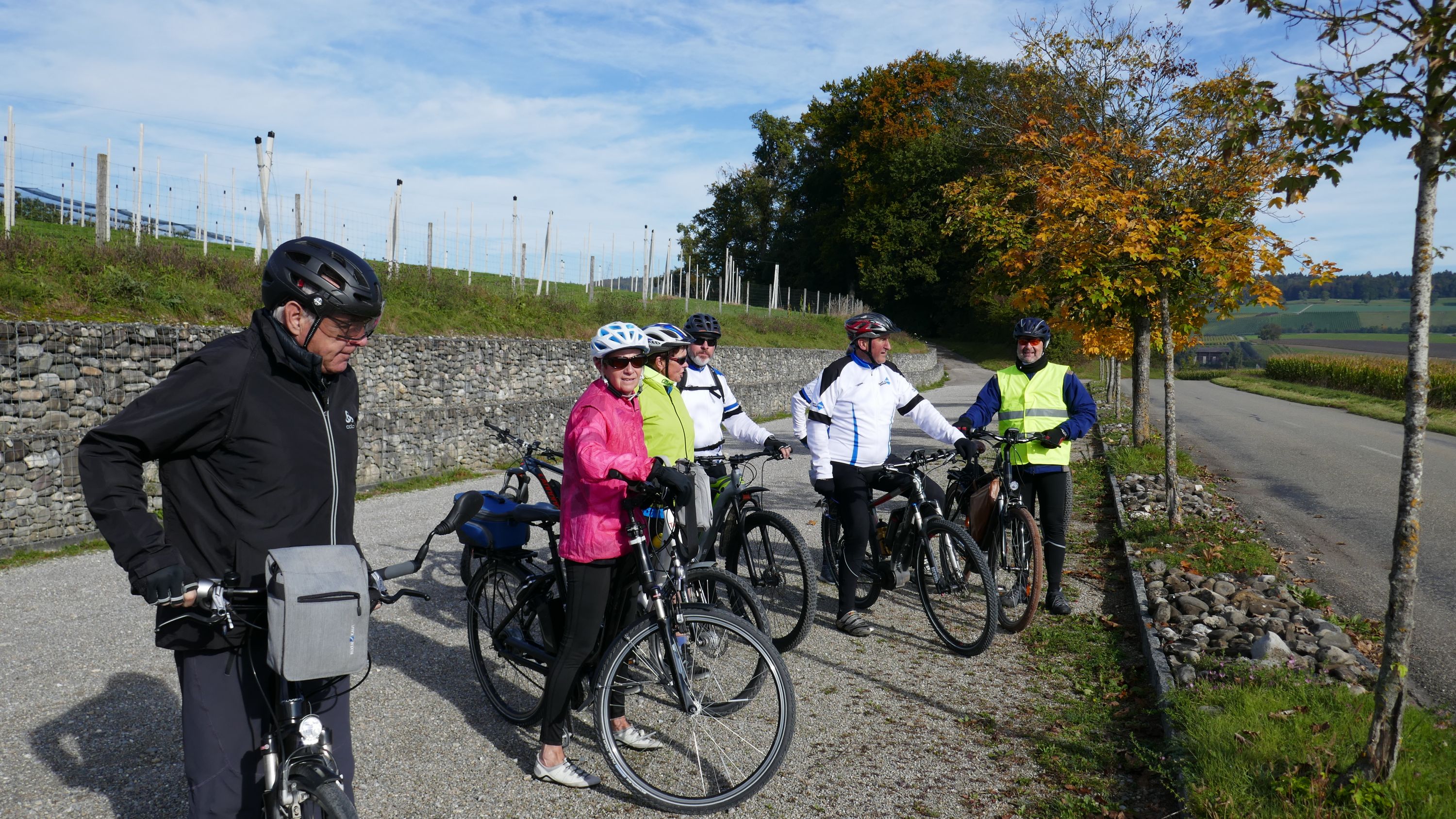 An diesem herrlichen Samstagmorgen trafen sich 9 RadlerInnen auf dem Migros Parkplatz in Stein am Rhein zur Saisonabschluss-Tour. Organisiert wurde sie von Urs Schneckenburger der uns vom Start weg sicher durch die, an diesem Morgen noch etwas kühle, aber schöne Strecke über Stammheim in den Kanton Thurgau führte. Nach Uerschhausen legten wir einen kurzen Halt ein und bewunderten das herrliche, noch im leichten Dunst liegende Alpenpanorama vom Glärnisch über die Churfirsten bis zum Säntis. Vorbei an der Kartause-Itingen erreichten wir unser nächstes Ziel in Weiningen.