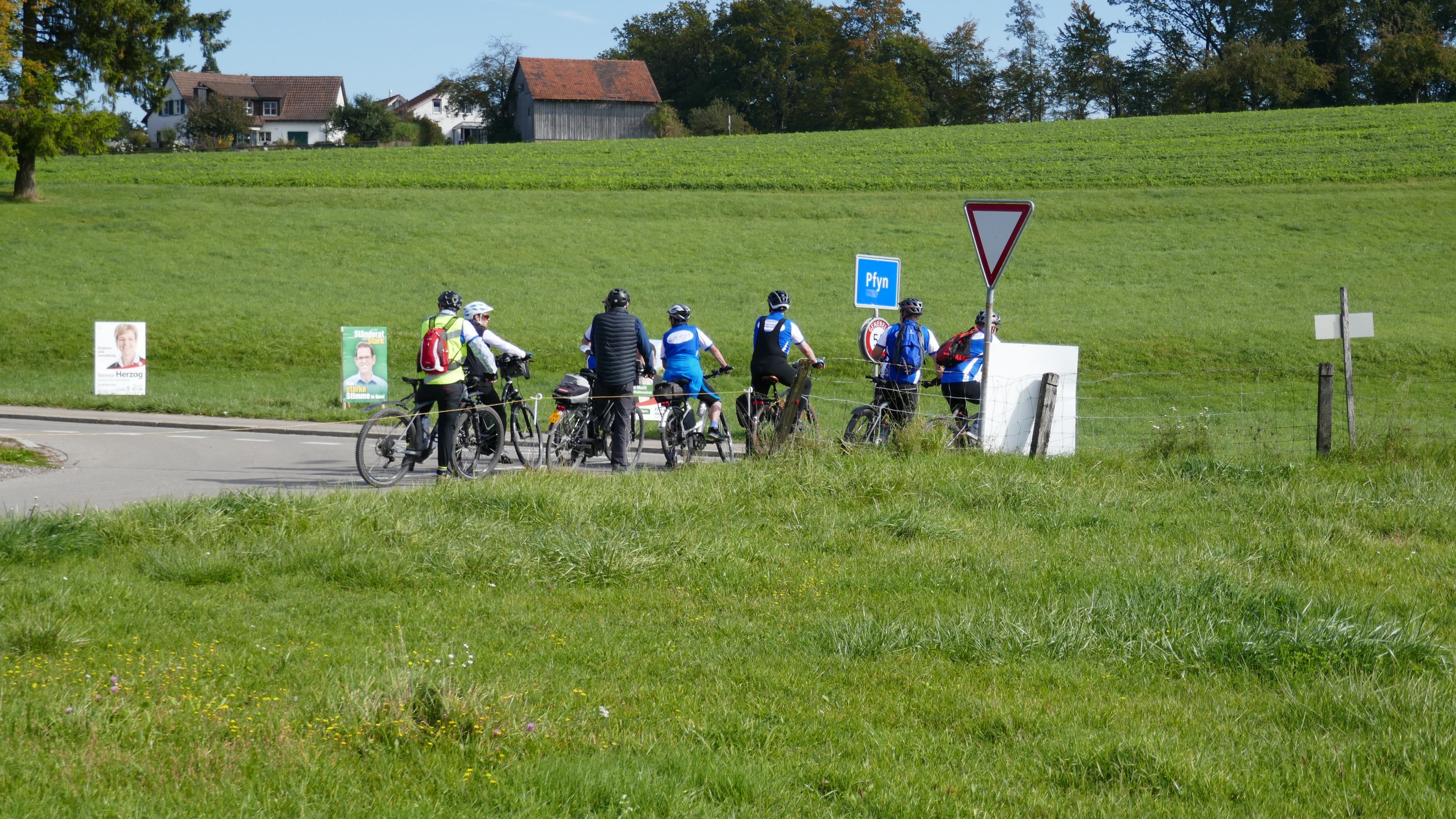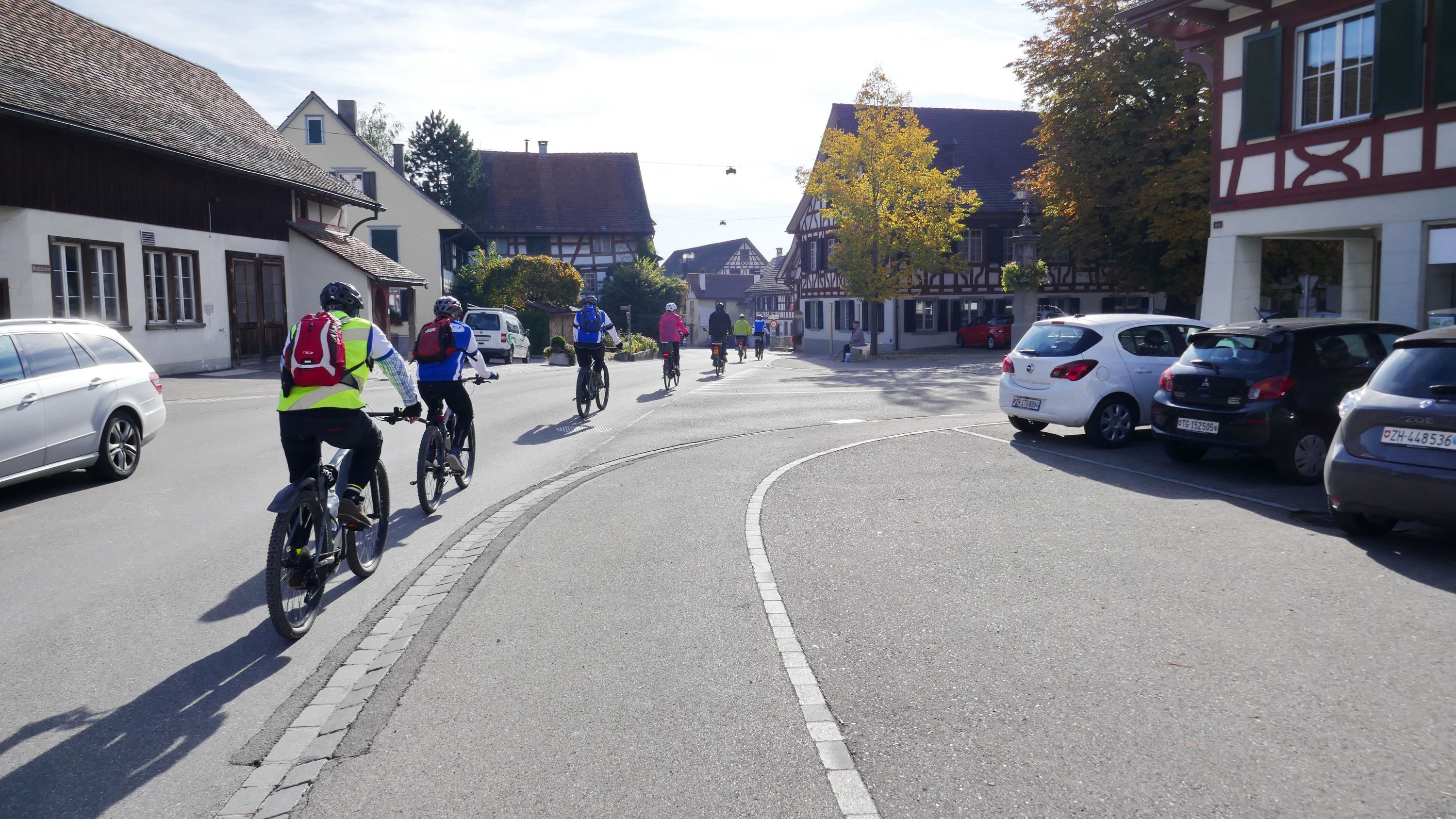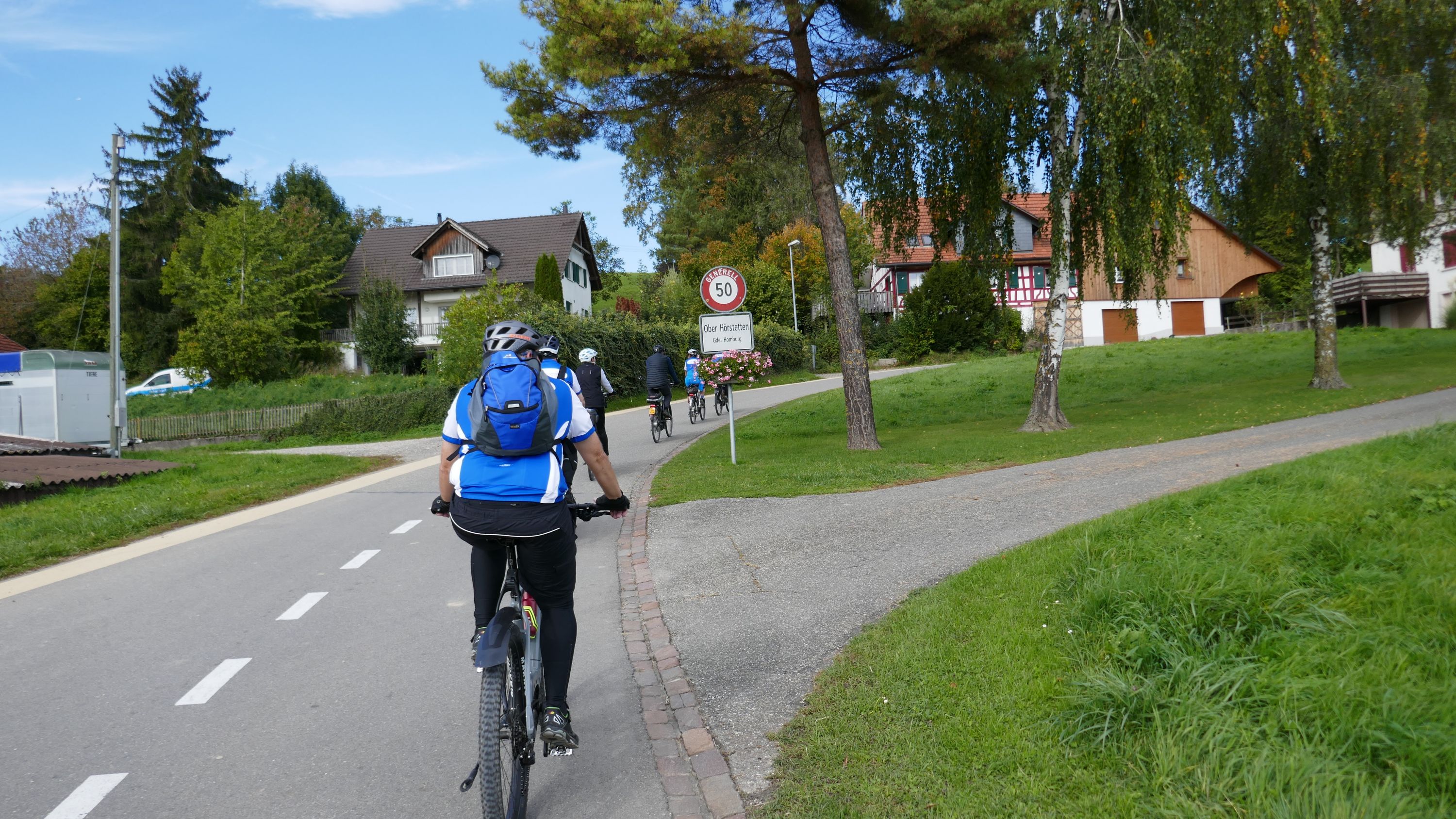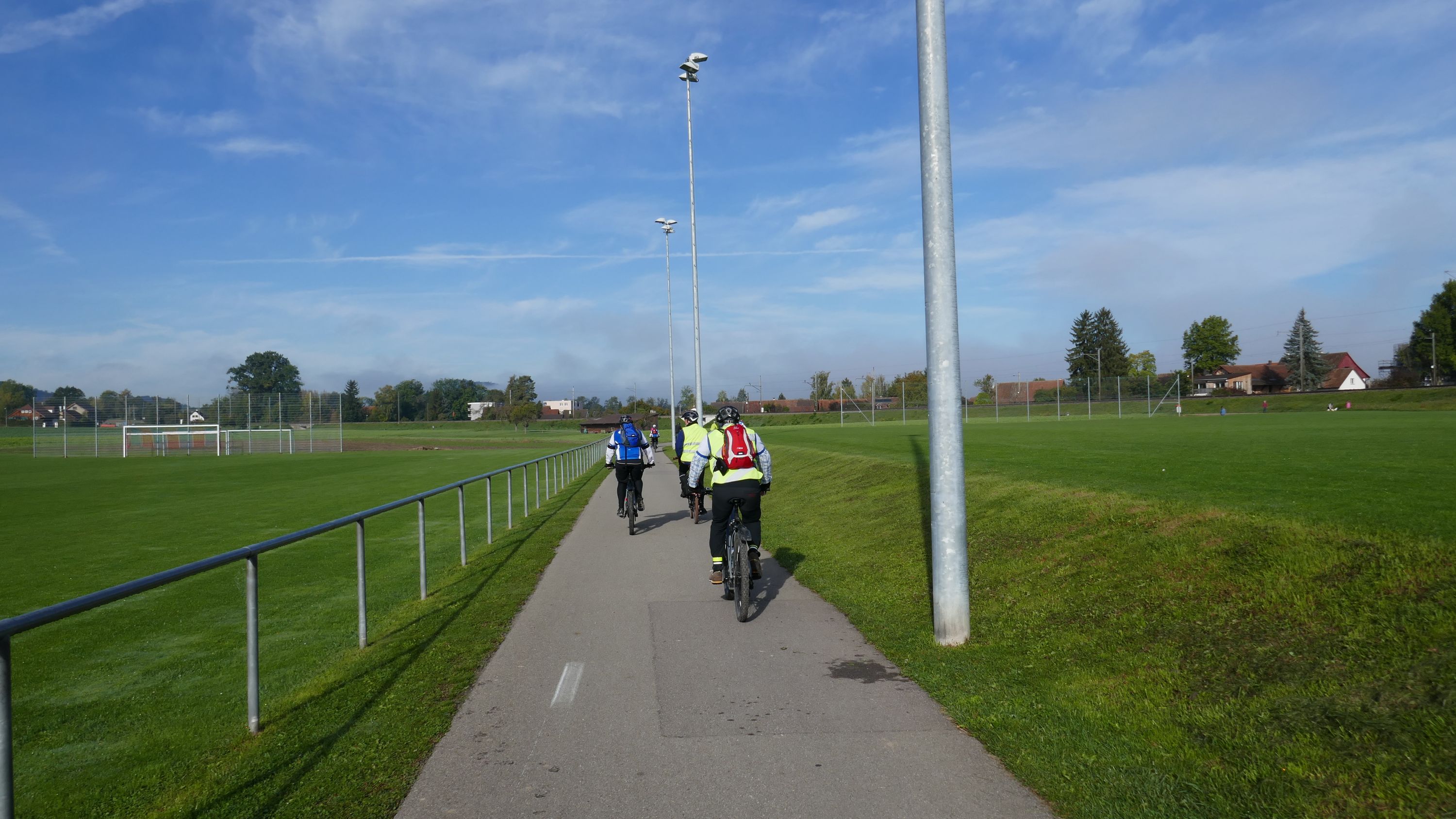 An diesem herrlichen Samstagmorgen trafen sich 9 RadlerInnen auf dem Migros Parkplatz in Stein am Rhein zur Saisonabschluss-Tour. Organisiert wurde sie von Urs Schneckenburger der uns vom Start weg sicher durch die, an diesem Morgen noch etwas kühle, aber schöne Strecke über Stammheim in den Kanton Thurgau führte. Nach Uerschhausen legten wir einen kurzen Halt ein und bewunderten das herrliche, noch im leichten Dunst liegende Alpenpanorama vom Glärnisch über die Churfirsten bis zum Säntis. Vorbei an der Kartause-Itingen erreichten wir unser nächstes Ziel in Weiningen.