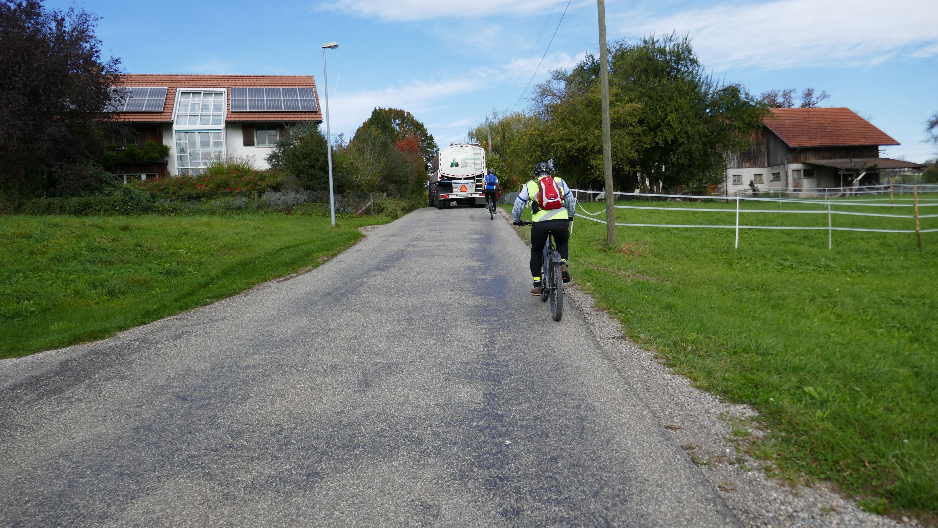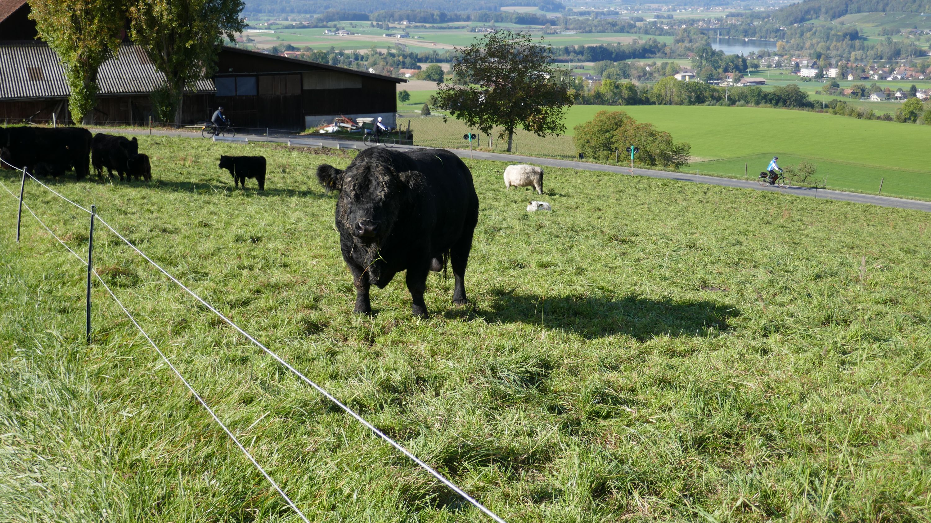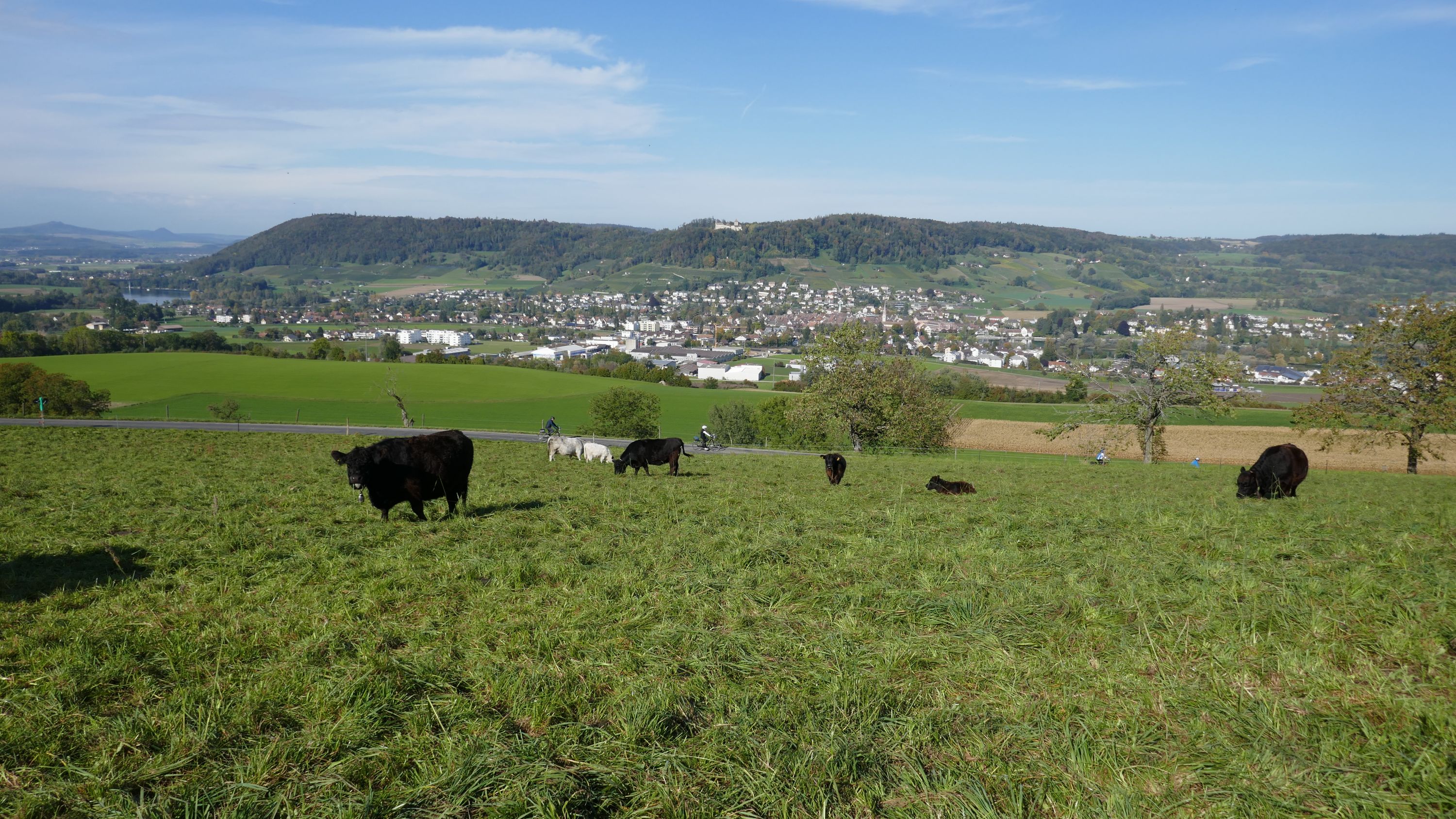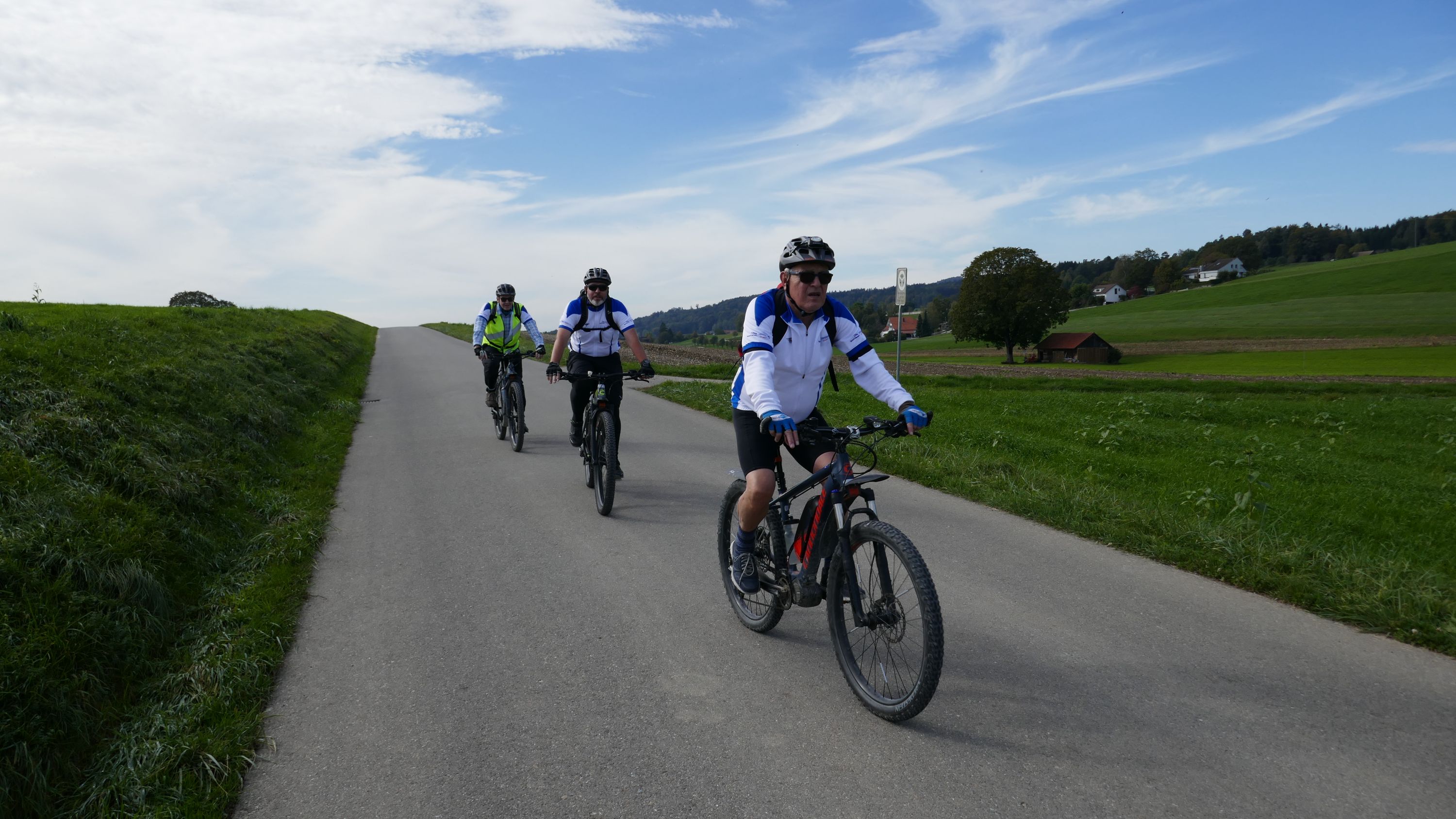Im Restaurant Alpenblick machten wir Mittagspause und wurden von den Wirtsleuten freundlich empfangen. Nach dem wir uns mit einen feinen Essen für die nächste Etappe gestärkt hatten traten wir wieder in die Pedale. Die Strecke führte über schmale geteerte Wege und gut fahrbare Naturstrassen nach Pfyn. Hier hatten wir wieder einen schönen Ausblick auf die herbstliche Landschaft bis hinüber zum Ottenberg. Über Bethlehem (TG) - Ober-Hörstetten – Reckenwil schwenkten wir auf den Veloweg Nr 82 Richtung Gündelhart/Diessenhofen ein. Nach Ammenhausen hatten wir die letzte Gelegenheit für einen Blick auf die Alpenkette, denn dann kam der steilste Aufstieg dieser Tour auf den Seerücken. Oben angelangt legten wir wieder einen kurzen Halt ein und zogen uns die Windjacken über, denn jetzt ging es auf rassigen Abfahrten Richtung Eschenz. Doch vorher zwang uns die wunderbare Aussicht auf den Untersee abermals zu einem kurzen Halt für ein schönes Foto. Nach 52 km endete die interessante Rundfahrt in Stein am Rhein und hier kam die schönste Überraschung. Wir wurden von Jeannette und Urs zu Kaffe und Kuchen eingeladen. Entspannt liessen wir diesen sportlichen Tag ausklingen, in der einhelligen Meinung, dass es ein wunderbarer Saisonabschluss war, bei dem uns Urs ein weiteres Mal auf einem landschaftlich schönen und abwechslungsreichen Rundkurs, sicher vom Start zum Ziel geführt hat und dafür möchte ich ihm im Namen aller Teilnehmer ganz herzlich danken.
