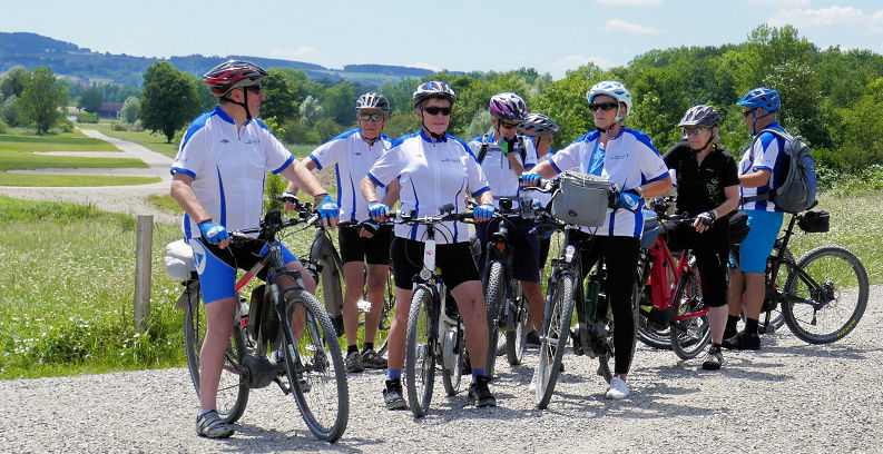 Von dort in westlicher Richtung nach Freudenfels, wo wir beim gleichnamigen Schloss einen kurzen Halt einlegten. Bis hierher hatten wir schon einige Steigungen hinter uns, aber es waren nicht die Letzten. Auf dem Seerücken entlang nach Klingenzell warteten noch einige happige Aufstiege, die wir dank E-Bike gut meisterten. Hier freuten sich schon alle auf den von Urs eingeplanten Kaffeehalt. Leider wurde nichts daraus, denn wegen den Coronavorschriften waren die Tische im Garten sehr grosszügig verteilt, so dass es für 10 Personen keinen Platz mehr hatte. Also schwangen wir uns etwas enttäuscht wieder in den Sattel und rollten rassig hinunter nach Eschenz und weiter nach Stein am Rhein, wo wir im Restaurant Bahnhöfli einen schönen Platz fanden. Nach dieser Erfrischung trennte sich die Gruppe. Silvia fuhr mit dem Zug nach Schaffhausen und Marianne und Beat entschlossen sich bis nach Hause weiter zu radeln womit sie es auf satte 90 km brachten. Der Rest trat via Auto den Heimweg an und legte noch einen kurzen Stopp bei der Tankstelle in Langwiesen ein, wo uns Jeannette ein feines Glace verkaufte.