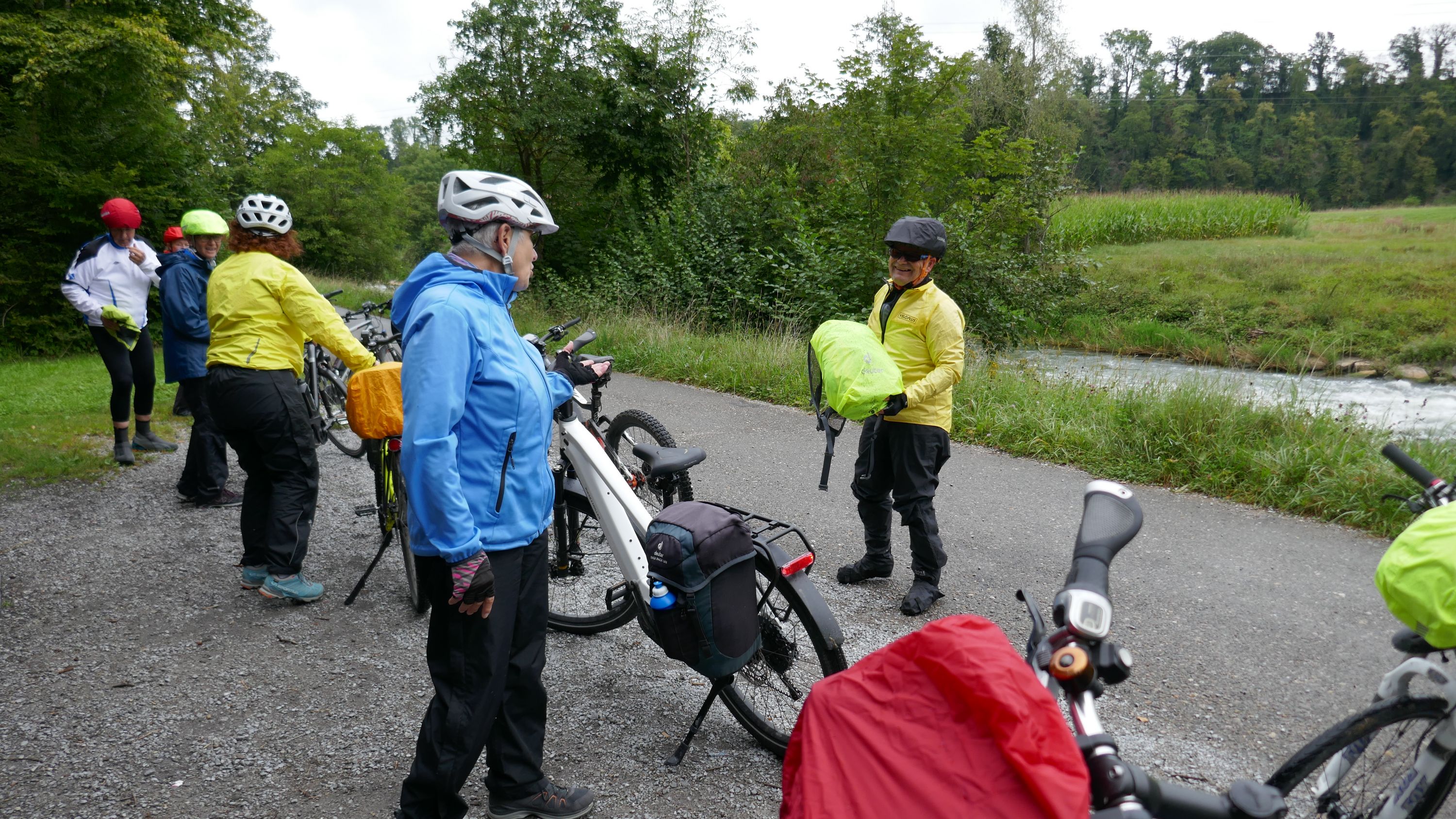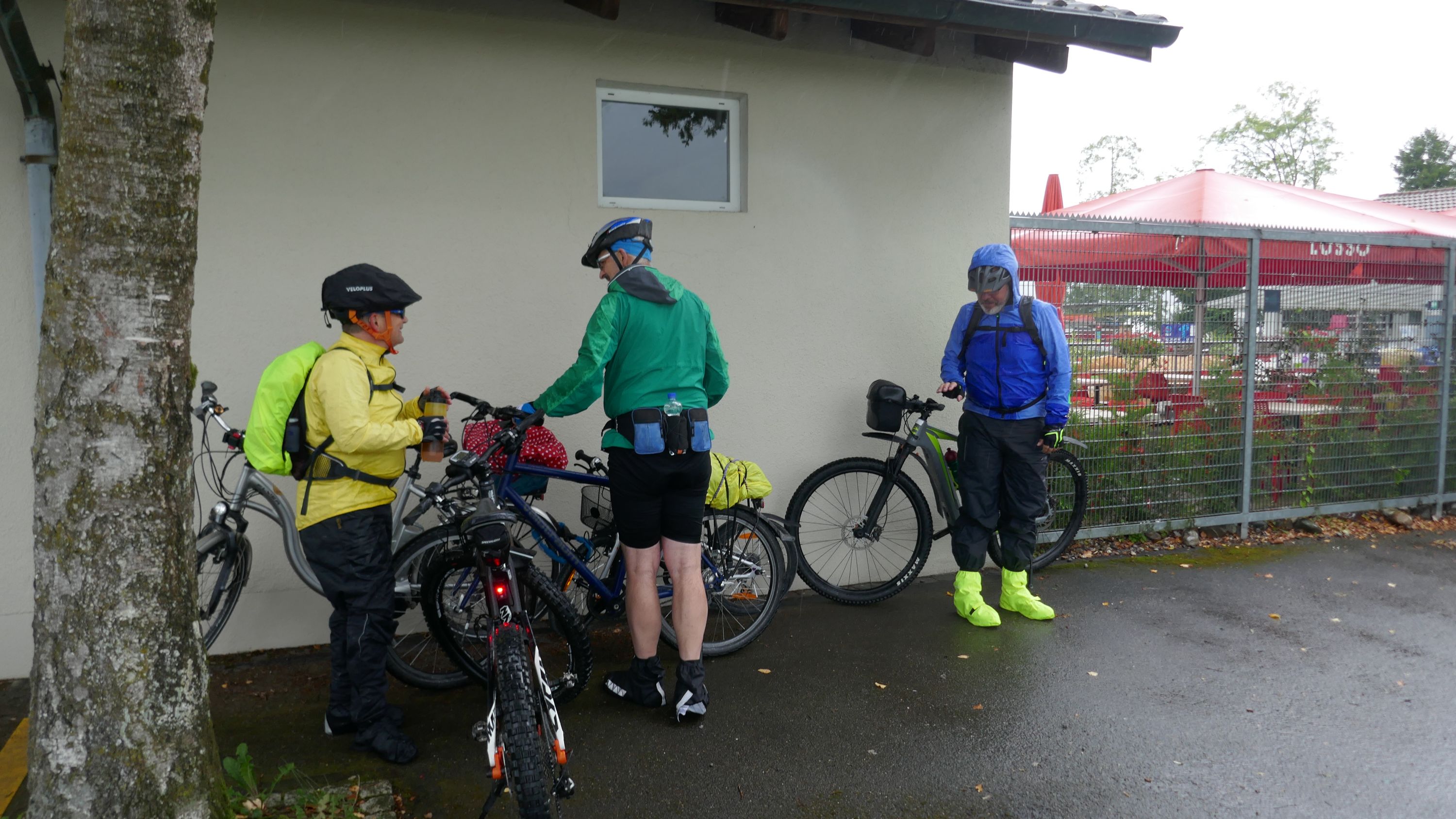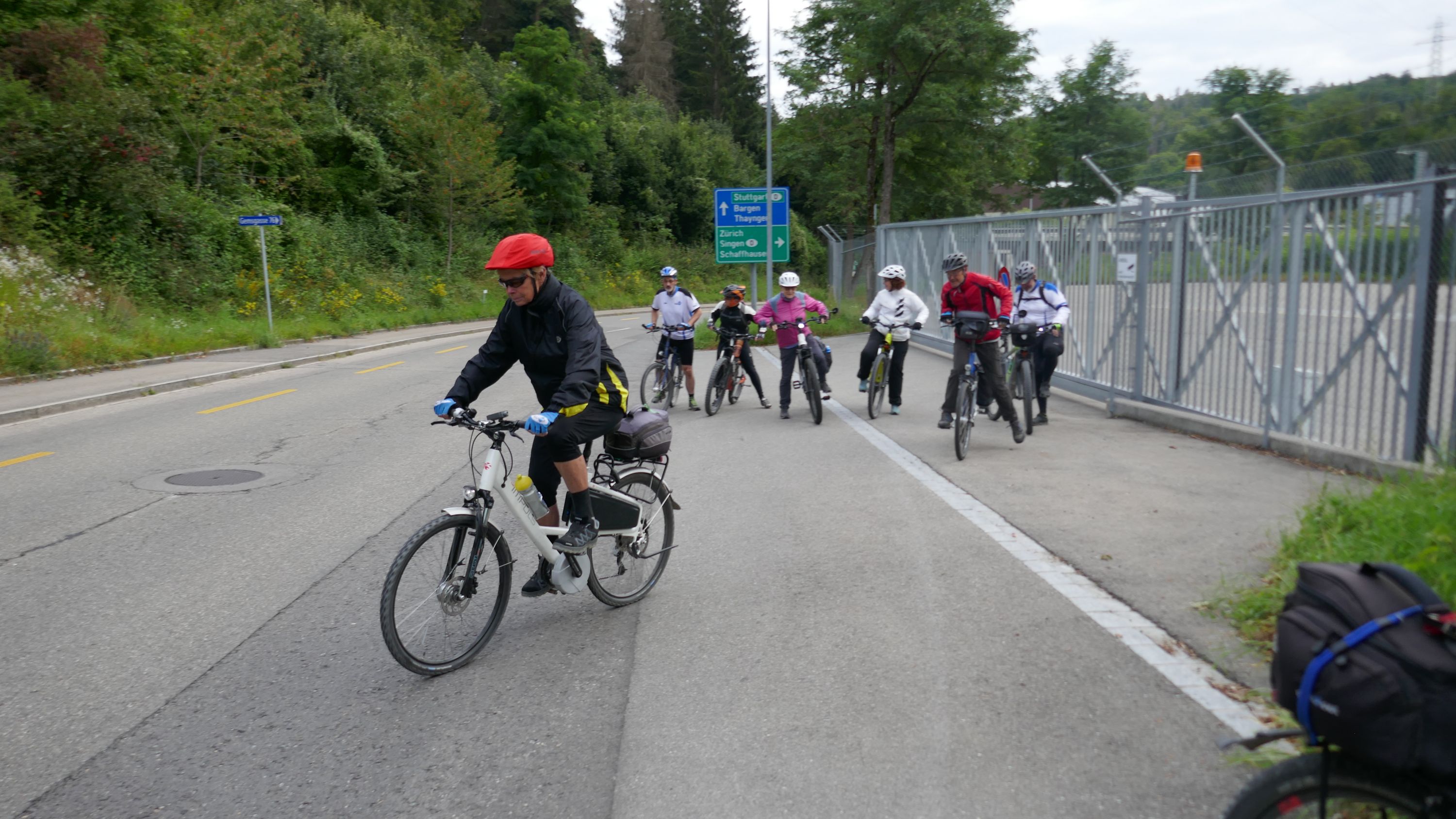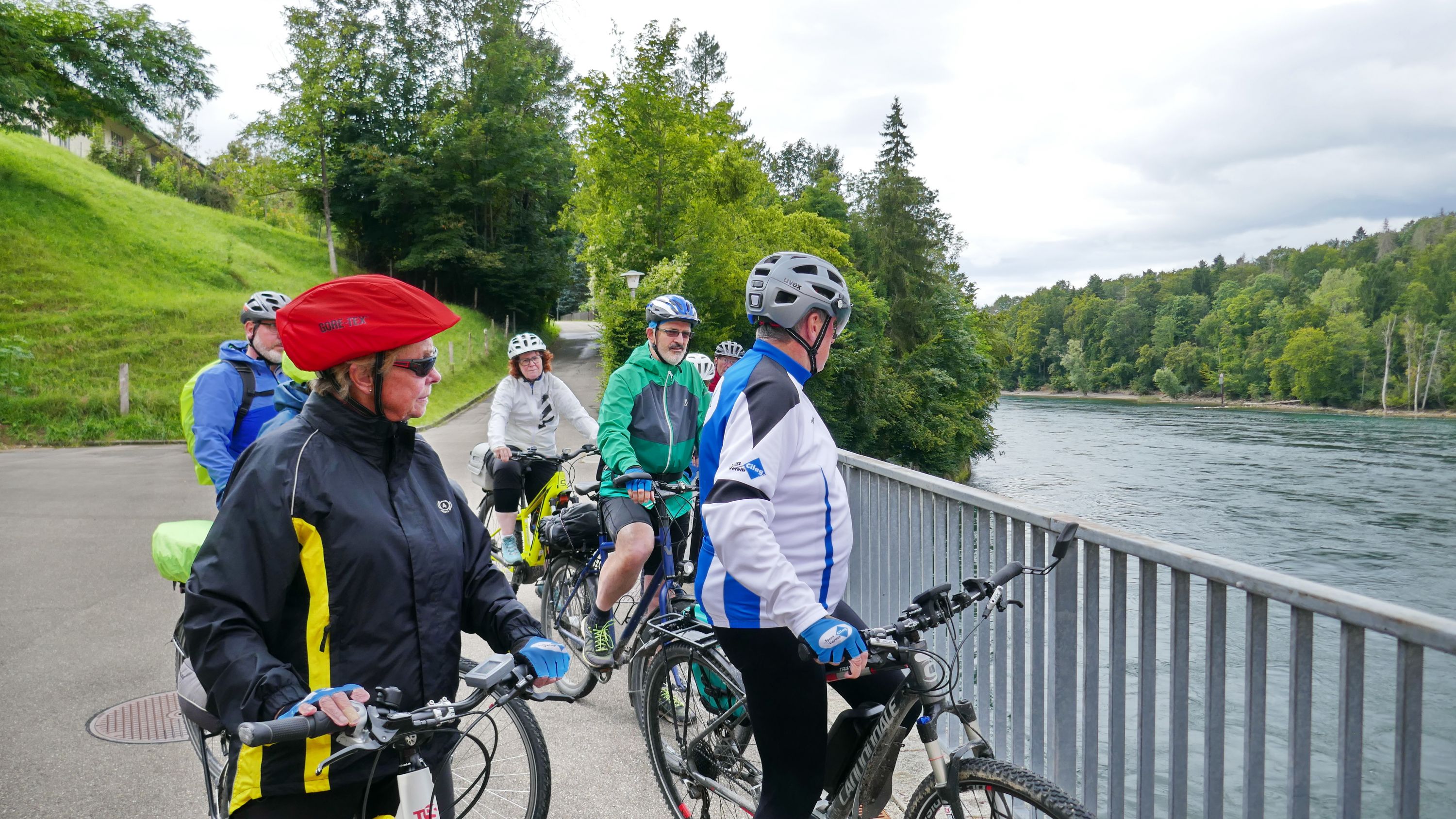 Beim Morgenessen am Sonntag wurden erst einmal alle Wetter Apps konsultiert und heiss diskutiert. Warten oder gleich losfahren? Einstimmig einigten wir uns eine halbe Stunde zu warten. Um halb 10 hiess es aufsitzen zur 2. Etappe durch leichten Nieselregen. Der Glatt entlang über Dübendorf, vorbei am Flughafen Zürich mit einigen Zwischenstopps im trockenen für Verpflegung und Tenuwechsel, erreichten wir pünktlich unser Mittagsziel in Rheinsfelden. Die Auswahl im Restaurant zur Fähre war riesig, so fand jeder etwas Passendes. Ganz speziell war nach dem Essen die Fahrt über das Kraftwerk. Später waren nicht nur die Schleusen des Kraftwerks offen, auch Petrus öffnete seine. So wurden wir kurz vor Jestetten nochmals kräftig begossen und waren froh, dass alle gesund und unfallfrei wieder in Schaffhausen angekommen sind.
