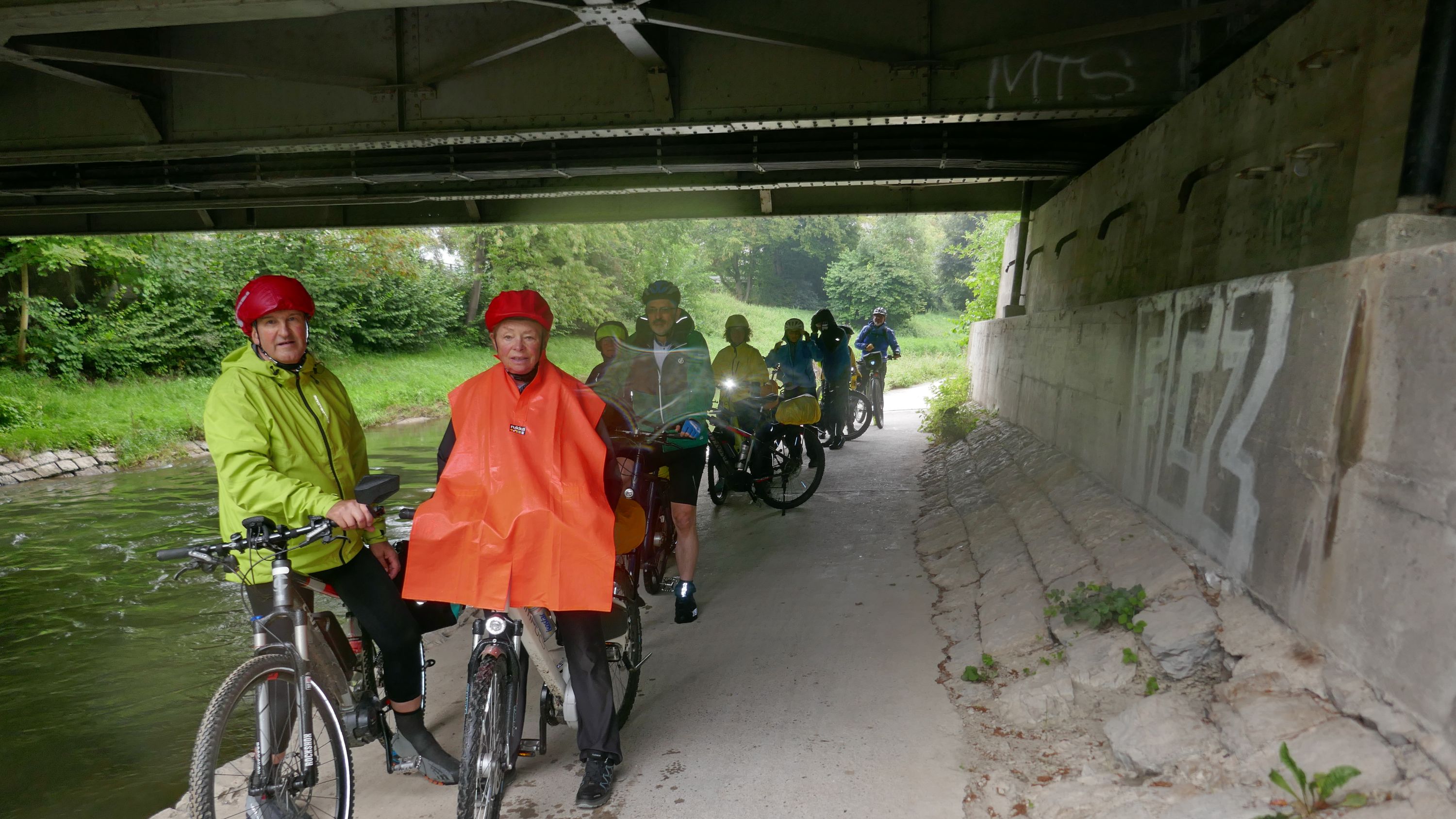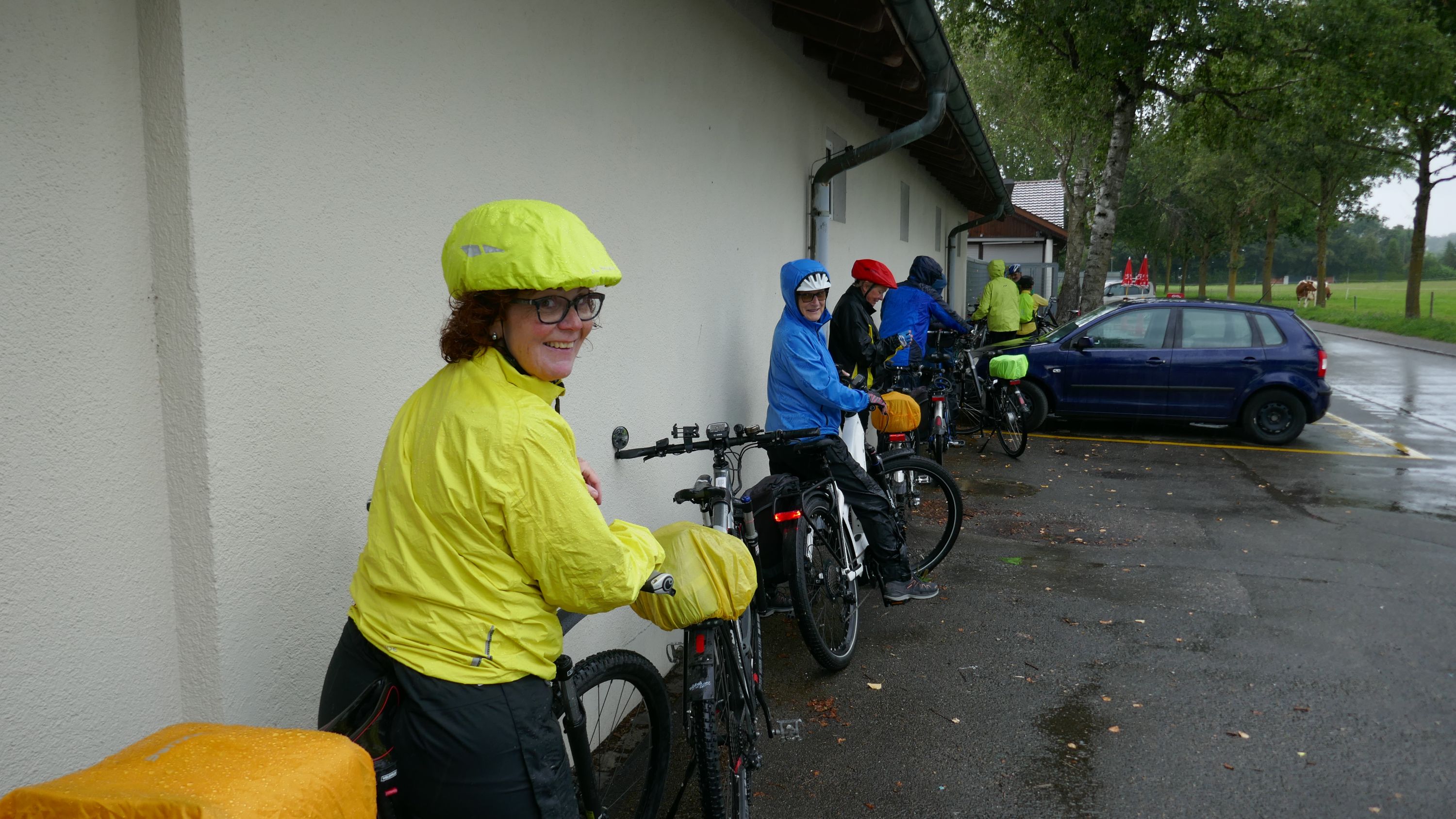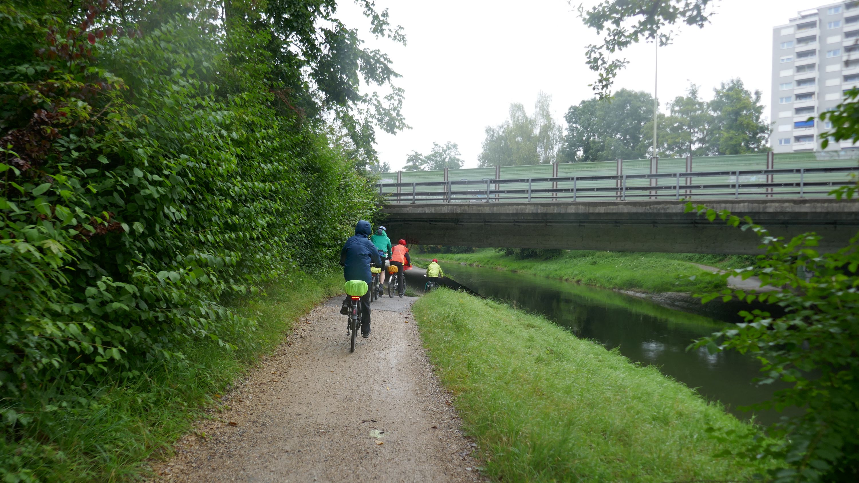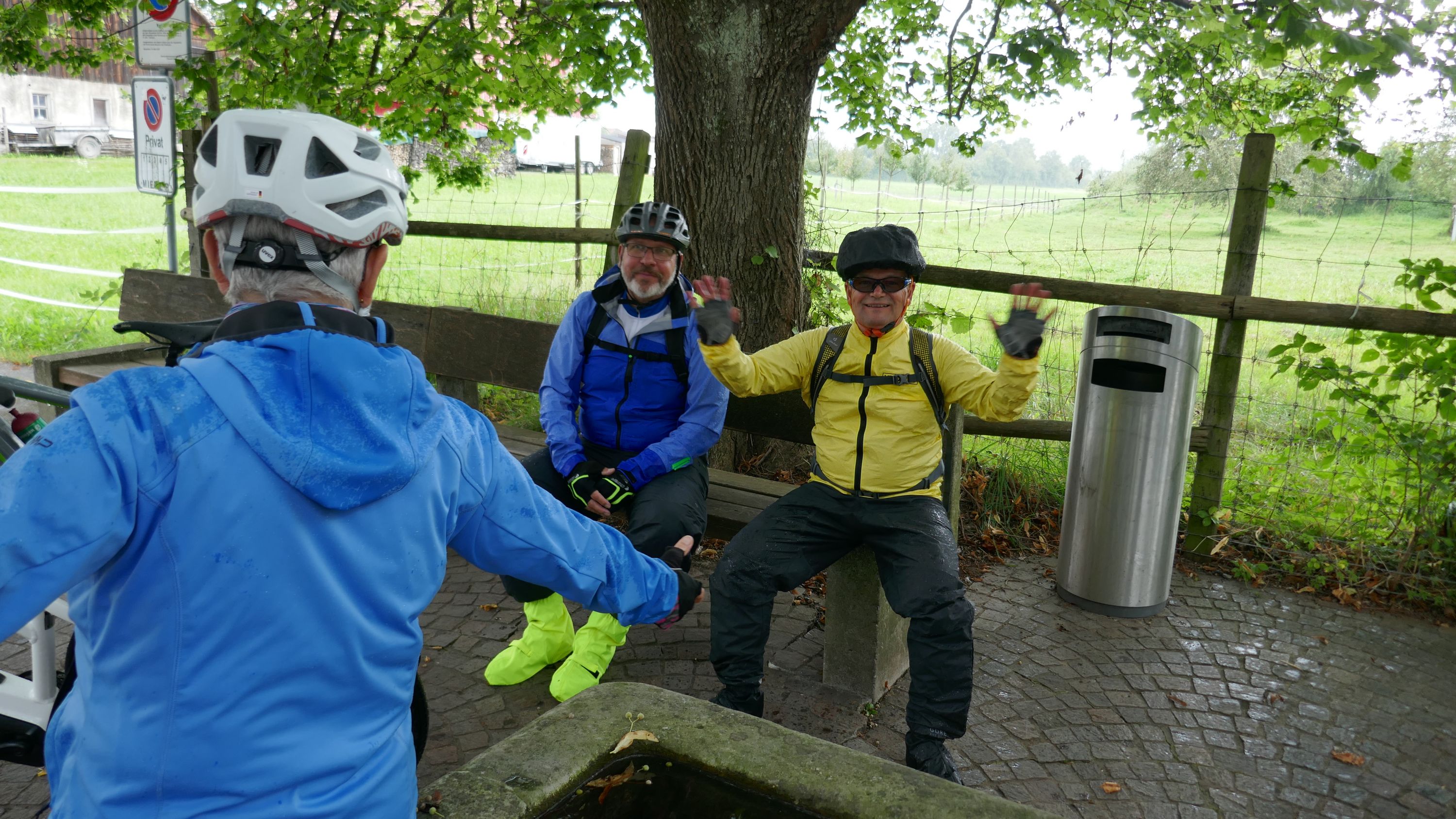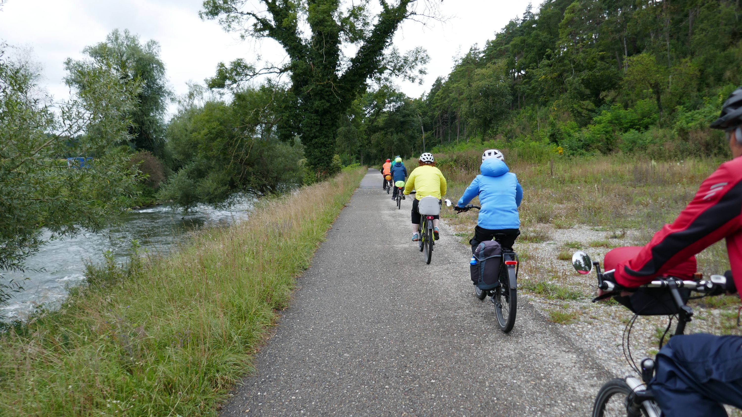 Beim Morgenessen am Sonntag wurden erst einmal alle Wetter Apps konsultiert und heiss diskutiert. Warten oder gleich losfahren? Einstimmig einigten wir uns eine halbe Stunde zu warten. Um halb 10 hiess es aufsitzen zur 2. Etappe durch leichten Nieselregen. Der Glatt entlang über Dübendorf, vorbei am Flughafen Zürich mit einigen Zwischenstopps im trockenen für Verpflegung und Tenuwechsel, erreichten wir pünktlich unser Mittagsziel in Rheinsfelden. Die Auswahl im Restaurant zur Fähre war riesig, so fand jeder etwas Passendes. Ganz speziell war nach dem Essen die Fahrt über das Kraftwerk. Später waren nicht nur die Schleusen des Kraftwerks offen, auch Petrus öffnete seine. So wurden wir kurz vor Jestetten nochmals kräftig begossen und waren froh, dass alle gesund und unfallfrei wieder in Schaffhausen angekommen sind.