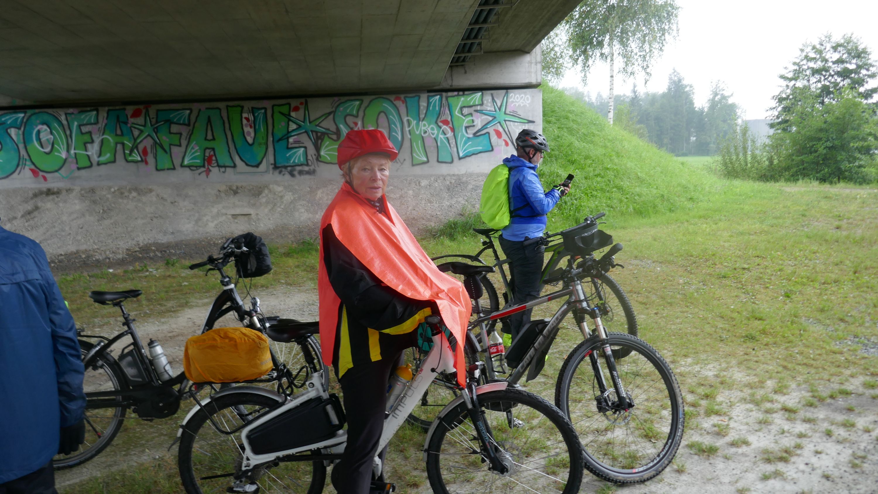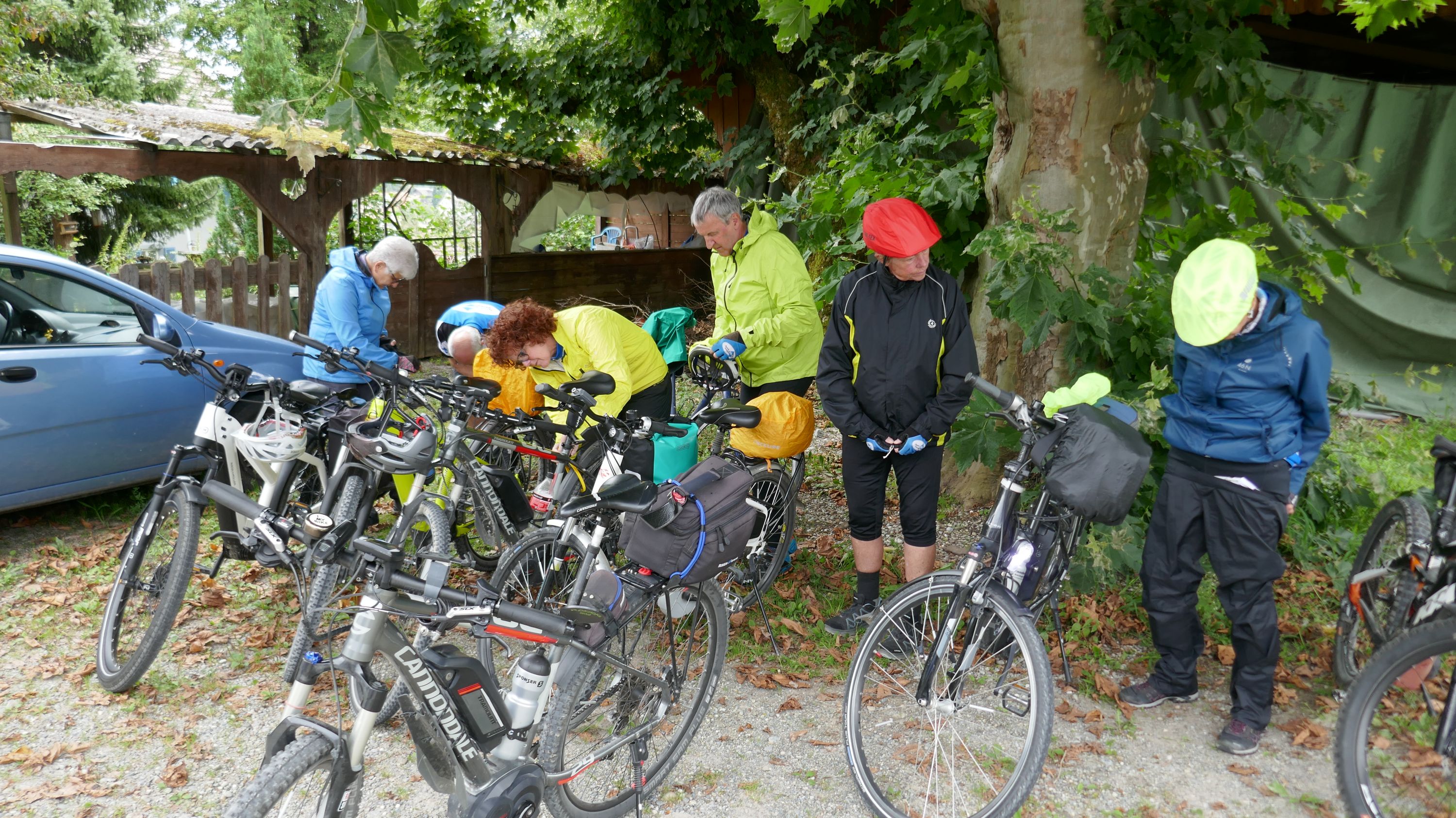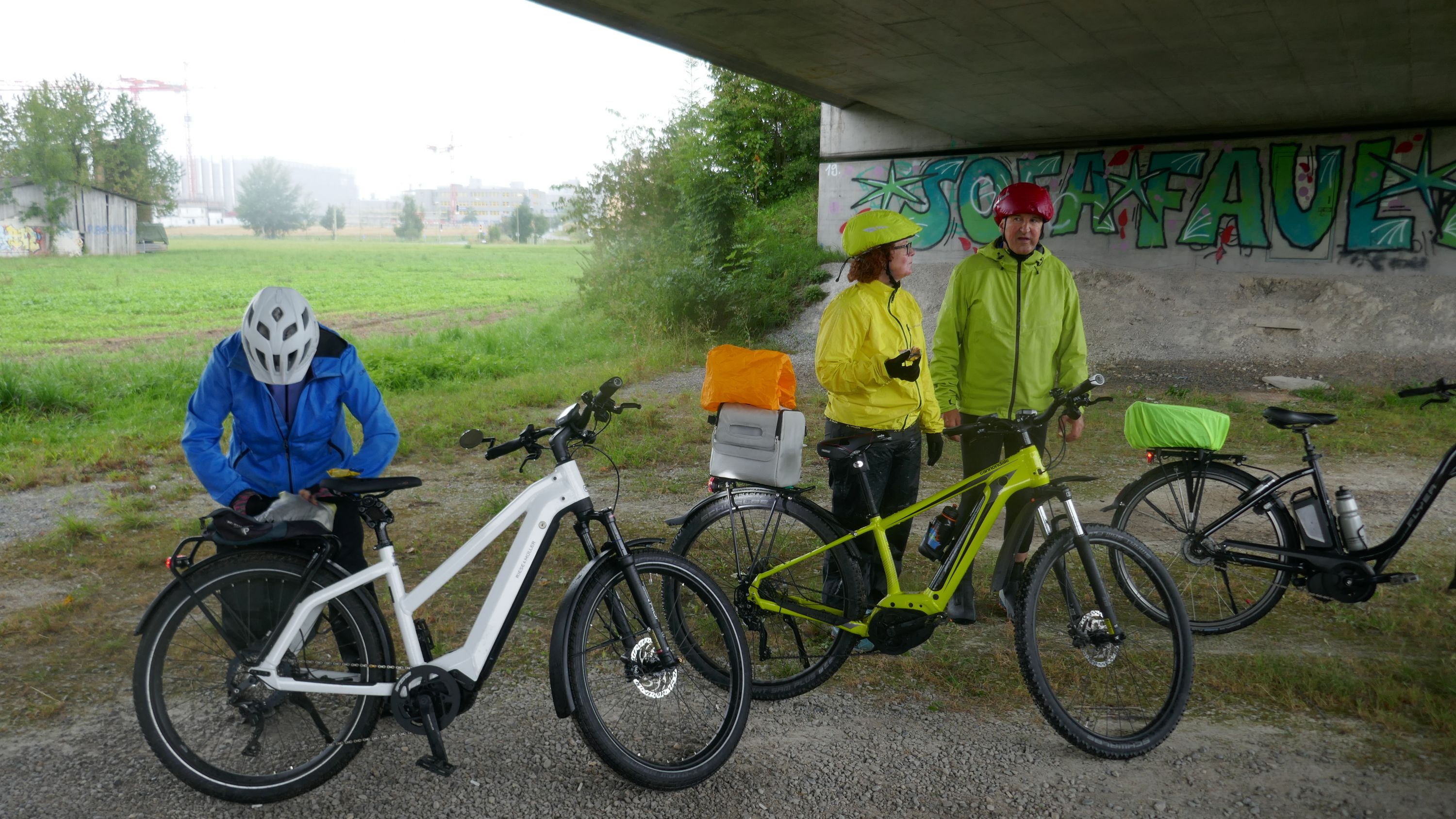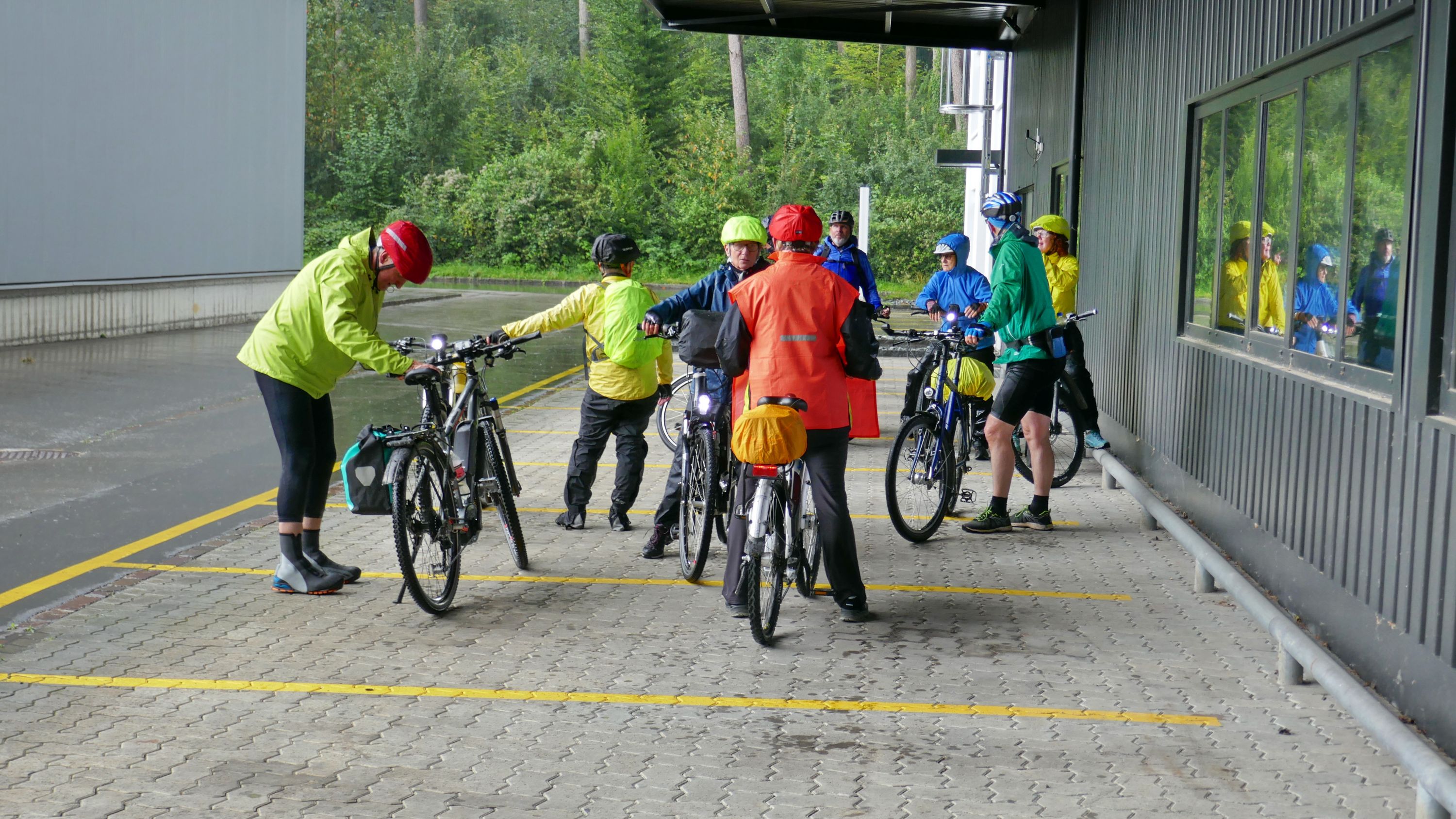 Beim Morgenessen am Sonntag wurden erst einmal alle Wetter Apps konsultiert und heiss diskutiert. Warten oder gleich losfahren? Einstimmig einigten wir uns eine halbe Stunde zu warten. Um halb 10 hiess es aufsitzen zur 2. Etappe durch leichten Nieselregen. Der Glatt entlang über Dübendorf, vorbei am Flughafen Zürich mit einigen Zwischenstopps im trockenen für Verpflegung und Tenuwechsel, erreichten wir pünktlich unser Mittagsziel in Rheinsfelden. Die Auswahl im Restaurant zur Fähre war riesig, so fand jeder etwas Passendes. Ganz speziell war nach dem Essen die Fahrt über das Kraftwerk. Später waren nicht nur die Schleusen des Kraftwerks offen, auch Petrus öffnete seine. So wurden wir kurz vor Jestetten nochmals kräftig begossen und waren froh, dass alle gesund und unfallfrei wieder in Schaffhausen angekommen sind.
