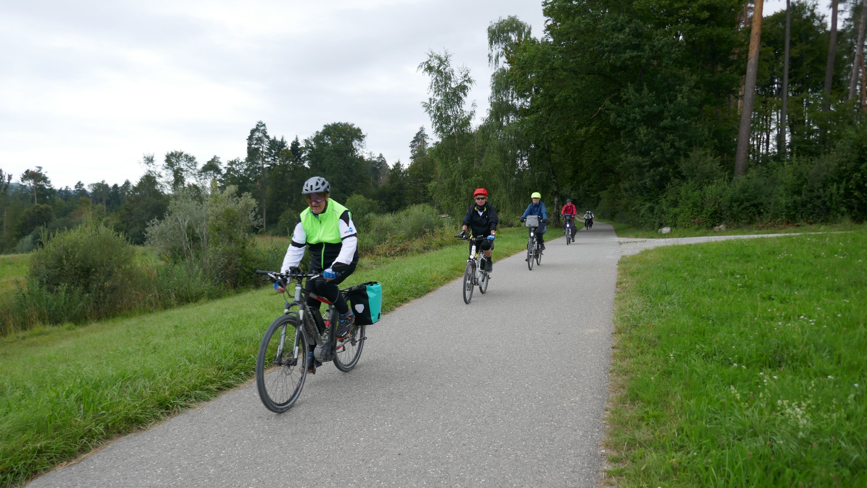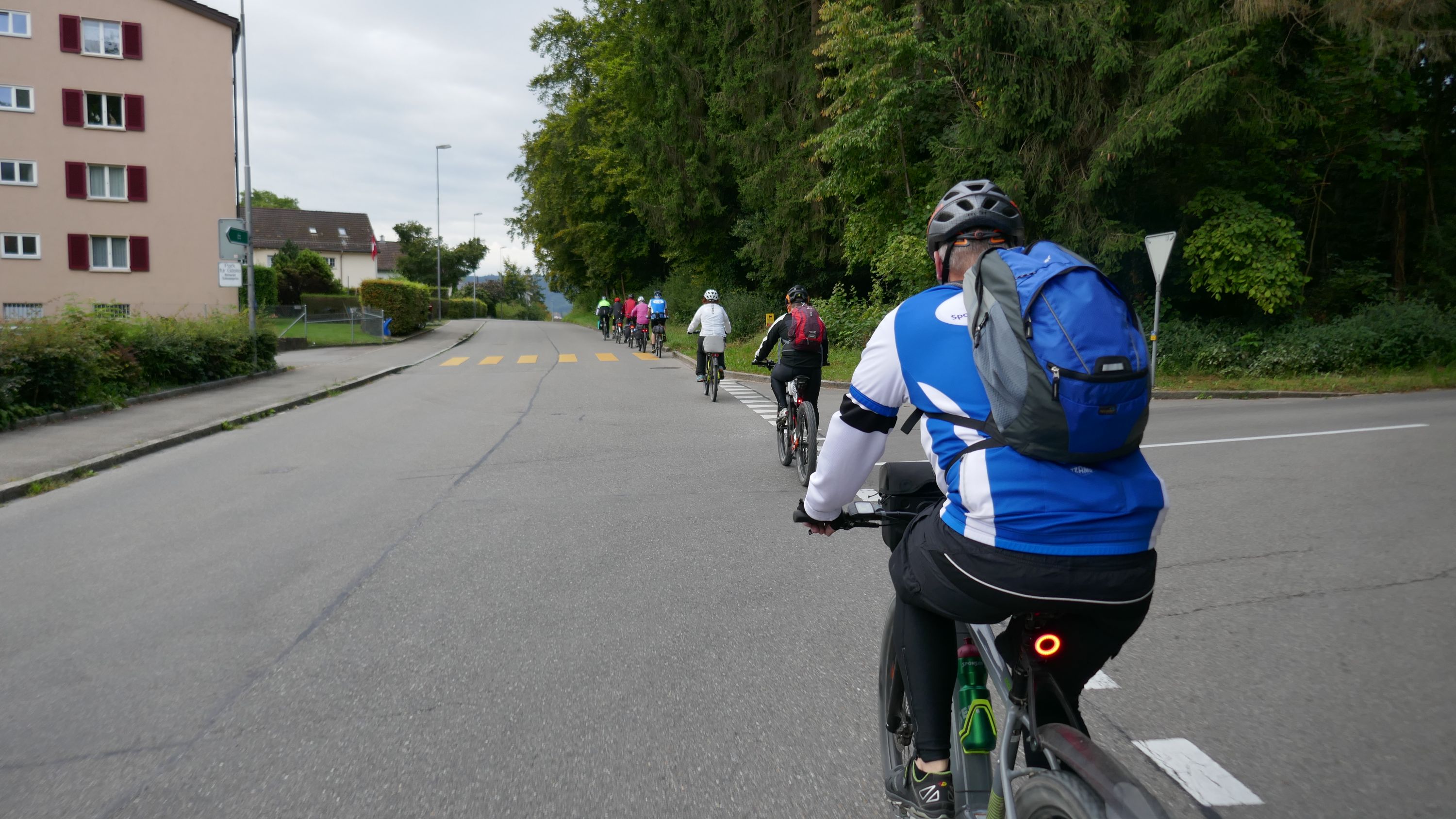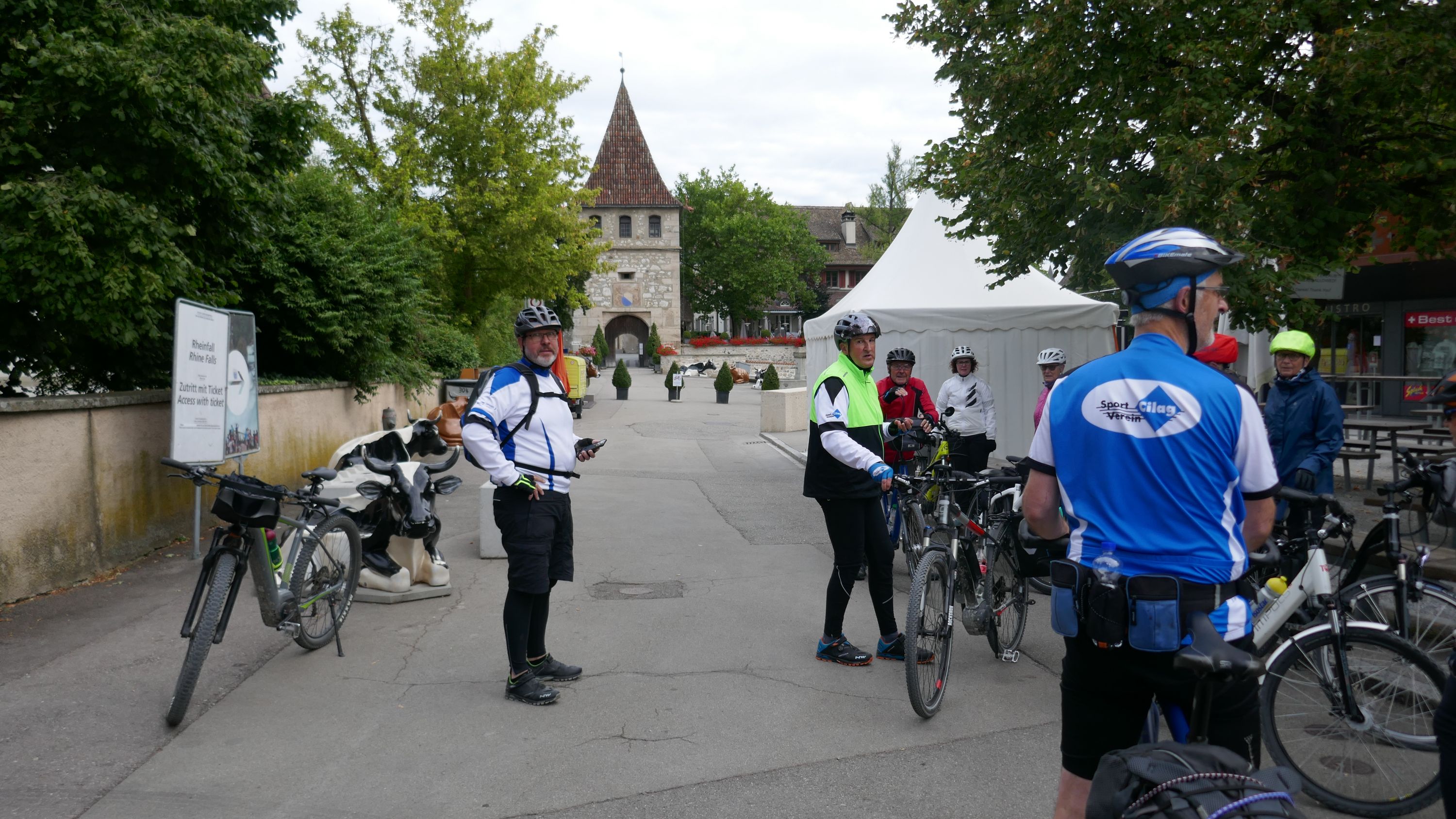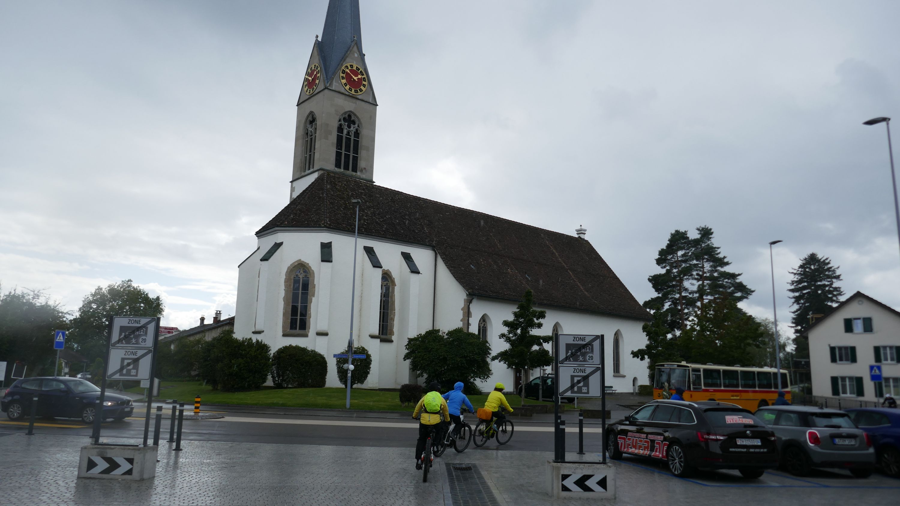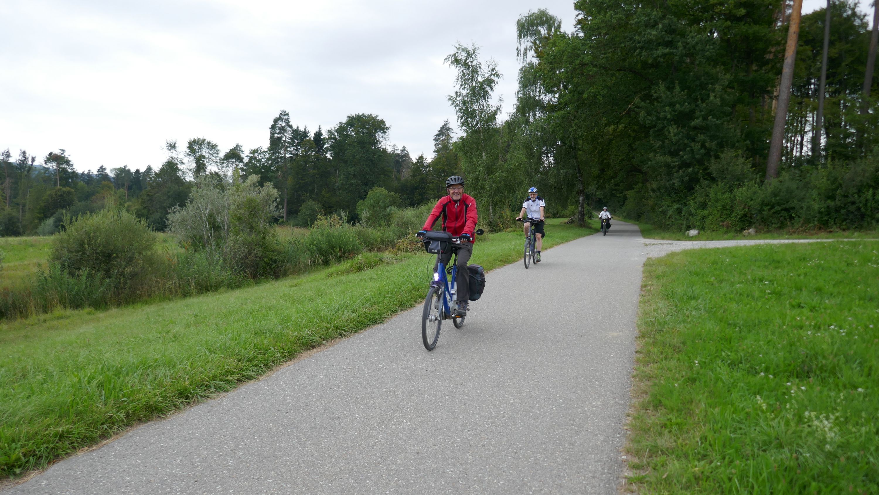Nach langem Warten, durften wir endlich wieder eine Wochenend-Tour durchführen. Nachdem im Juni der Tourenleiter mit Begleitung eine Tour vorgefahren hatte war ich gespannt, wohin die Reise gehen würde. Bei bedecktem Himmel starteten 9 Veloclüpler im Schneckenacker morgens um 8 Uhr in Richtung Greifensee. Beim Schloss Laufen wartete schon Silvia auf uns und so radelten wir gleich weiter über Marthalen, Andelfingen nach Winterthur. Bei der kühlen Witterung kam uns ein Kaffeehalt im Sporrer gerade recht. Gekonnt führte uns der Tourenleiter Urs an Winterthur vorbei der Töss entlang nach Kollbrunn. Ein längerer Aufstieg wartete nun auf uns, bevor das erste Ziel Russikon erreicht wurde. Im Landgasthof zur Krone stärkten wir uns für den Rest des ersten Tages. Das Essen war sehr gut und Preiswert, der Sputnik Service der Chefin ebenfalls. Bevor es weiter ging hiess es Regenkleider montieren den es begann leicht zu nieseln. Vorbei am Pfäffikersee durch Wetzikon gings dem Tagesziel Greifensee entgegen. In der Schlussviertel Stunde wurden wir aber dann so richtig geduscht. Zum Glück war unser Gepäck mit den trockenen Kleidern schon im Hotel zur Alten Kanzlei eingetroffen. Vielen Dank Kurt für Deinen Service. Dank dem freundlichen Hotelpersonal konnten wir unsere Velos in einer Tiefgarage einstellen. Nach einer kurzen Runde durchs Altstädtli durften wir ein gutes Nachtessen geniessen.