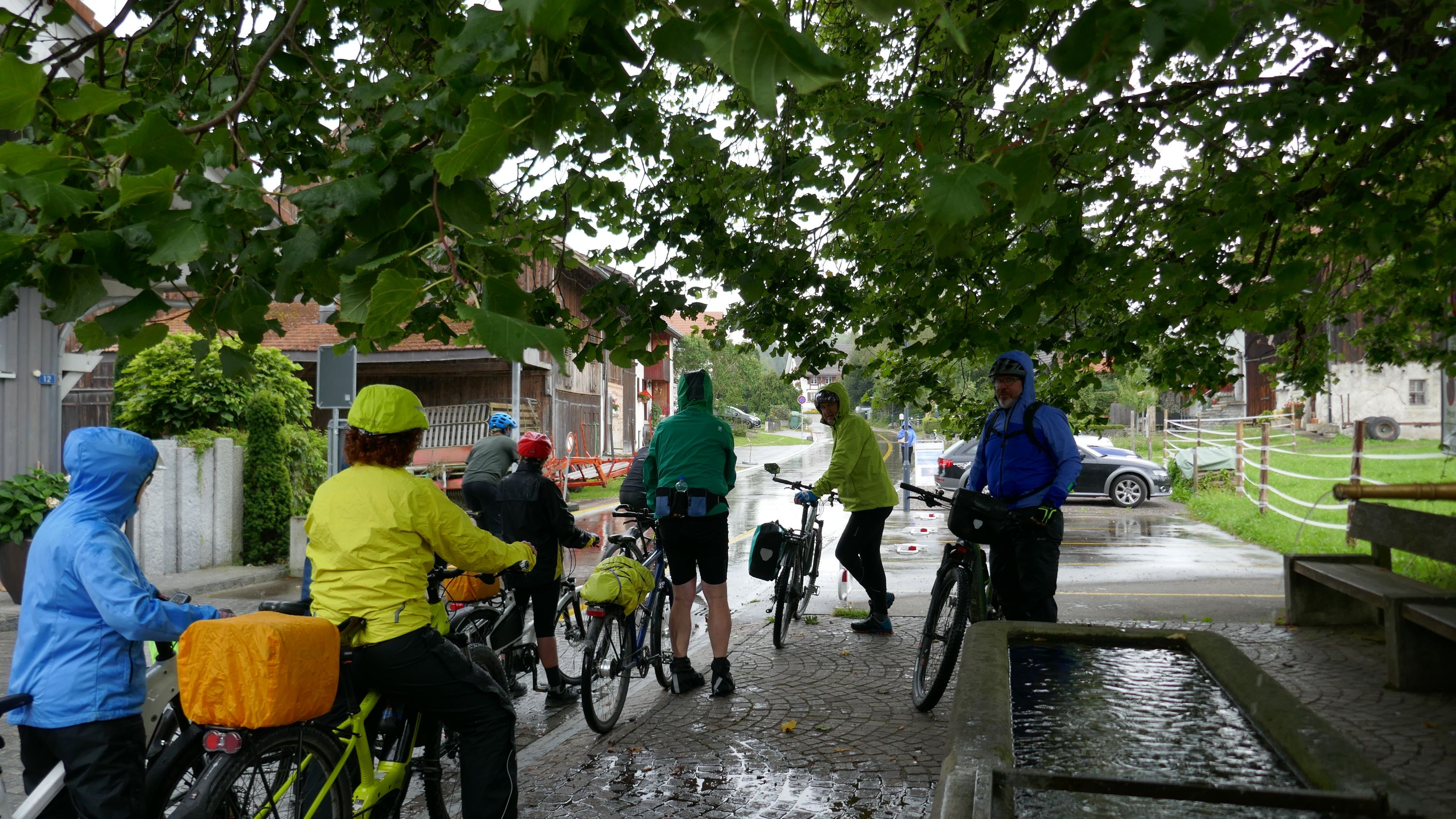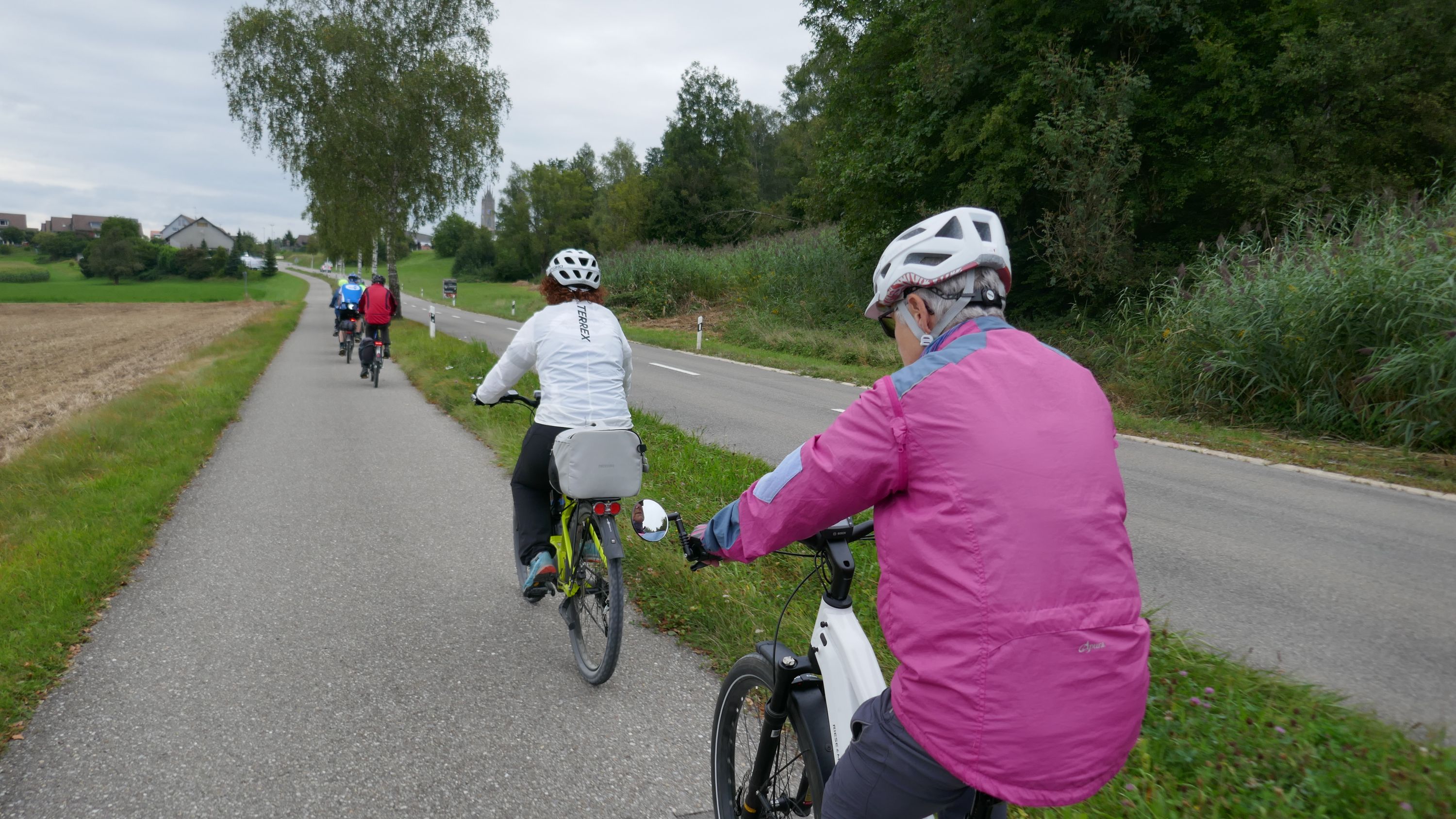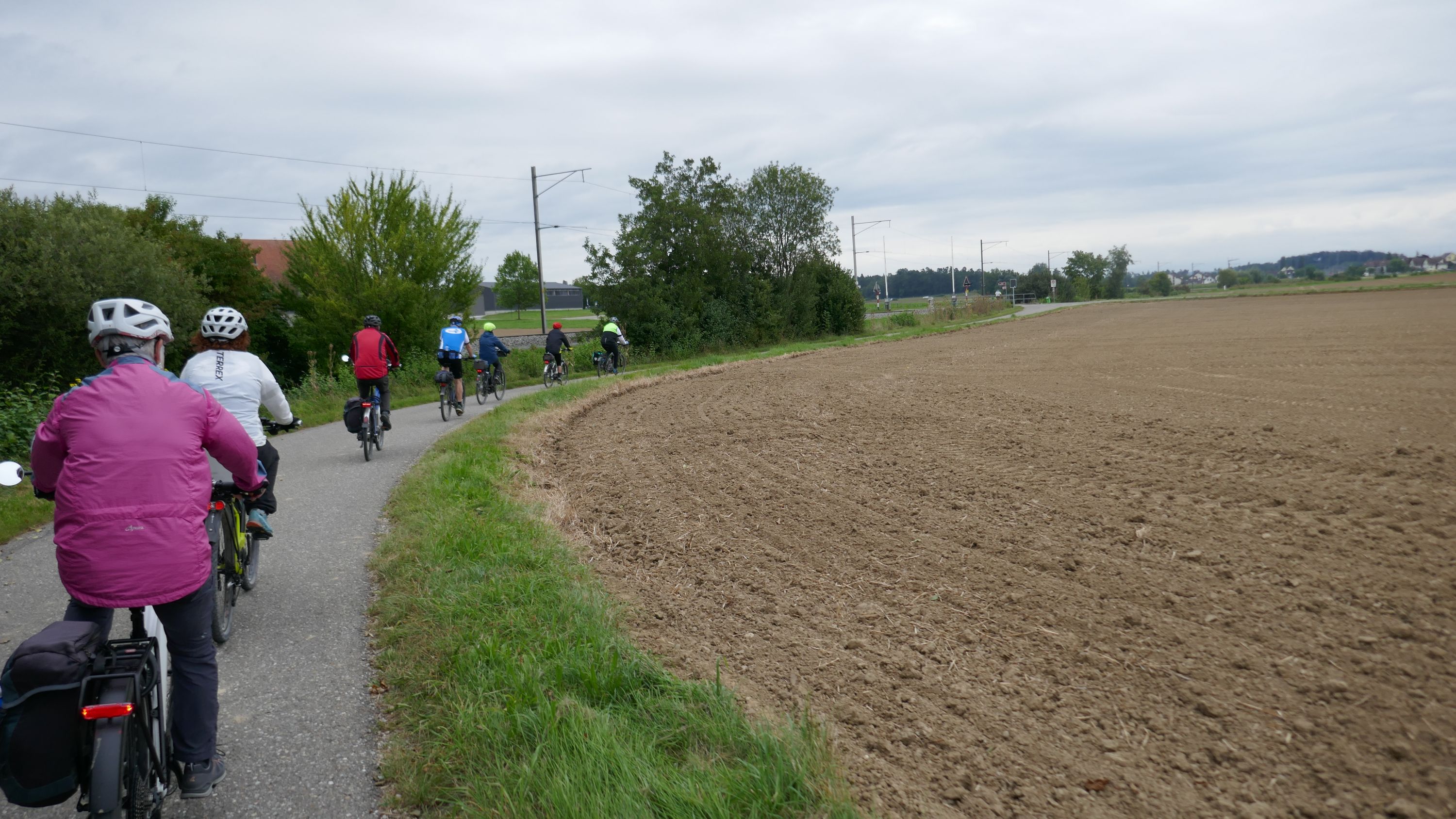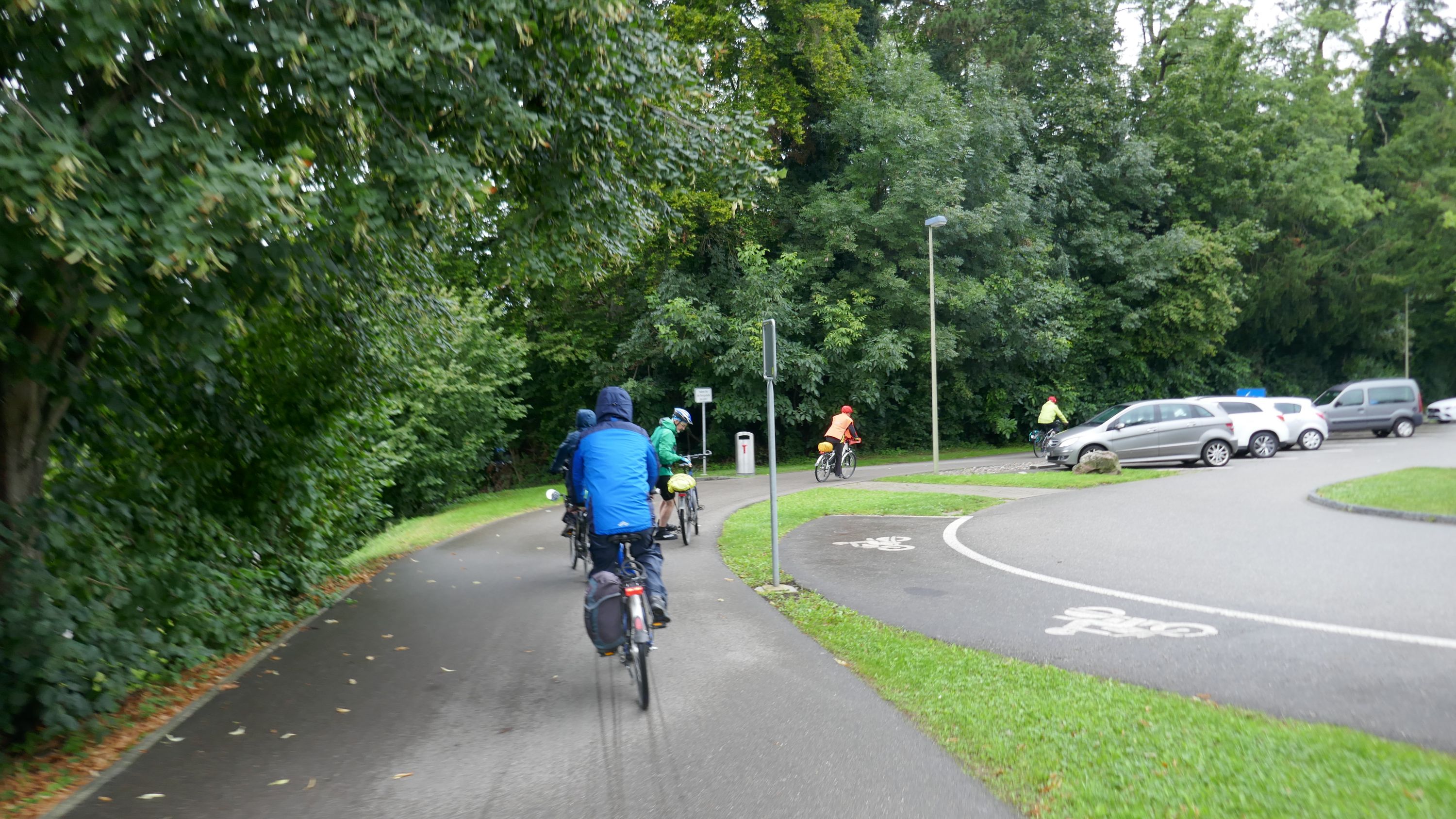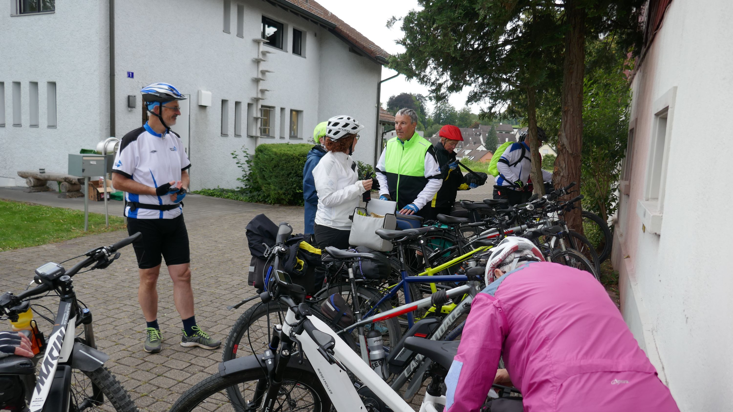 Nach langem Warten, durften wir endlich wieder eine Wochenend-Tour durchführen. Nachdem im Juni der Tourenleiter mit Begleitung eine Tour vorgefahren hatte war ich gespannt, wohin die Reise gehen würde. Bei bedecktem Himmel starteten 9 Veloclüpler im Schneckenacker morgens um 8 Uhr in Richtung Greifensee. Beim Schloss Laufen wartete schon Silvia auf uns und so radelten wir gleich weiter über Marthalen, Andelfingen nach Winterthur. Bei der kühlen Witterung kam uns ein Kaffeehalt im Sporrer gerade recht. Gekonnt führte uns der Tourenleiter Urs an Winterthur vorbei der Töss entlang nach Kollbrunn. Ein längerer Aufstieg wartete nun auf uns, bevor das erste Ziel Russikon erreicht wurde. Im Landgasthof zur Krone stärkten wir uns für den Rest des ersten Tages. Das Essen war sehr gut und Preiswert, der Sputnik Service der Chefin ebenfalls. Bevor es weiter ging hiess es Regenkleider montieren den es begann leicht zu nieseln. Vorbei am Pfäffikersee durch Wetzikon gings dem Tagesziel Greifensee entgegen. In der Schlussviertel Stunde wurden wir aber dann so richtig geduscht. Zum Glück war unser Gepäck mit den trockenen Kleidern schon im Hotel zur Alten Kanzlei eingetroffen. Vielen Dank Kurt für Deinen Service. Dank dem freundlichen Hotelpersonal konnten wir unsere Velos in einer Tiefgarage einstellen. Nach einer kurzen Runde durchs Altstädtli durften wir ein gutes Nachtessen geniessen.