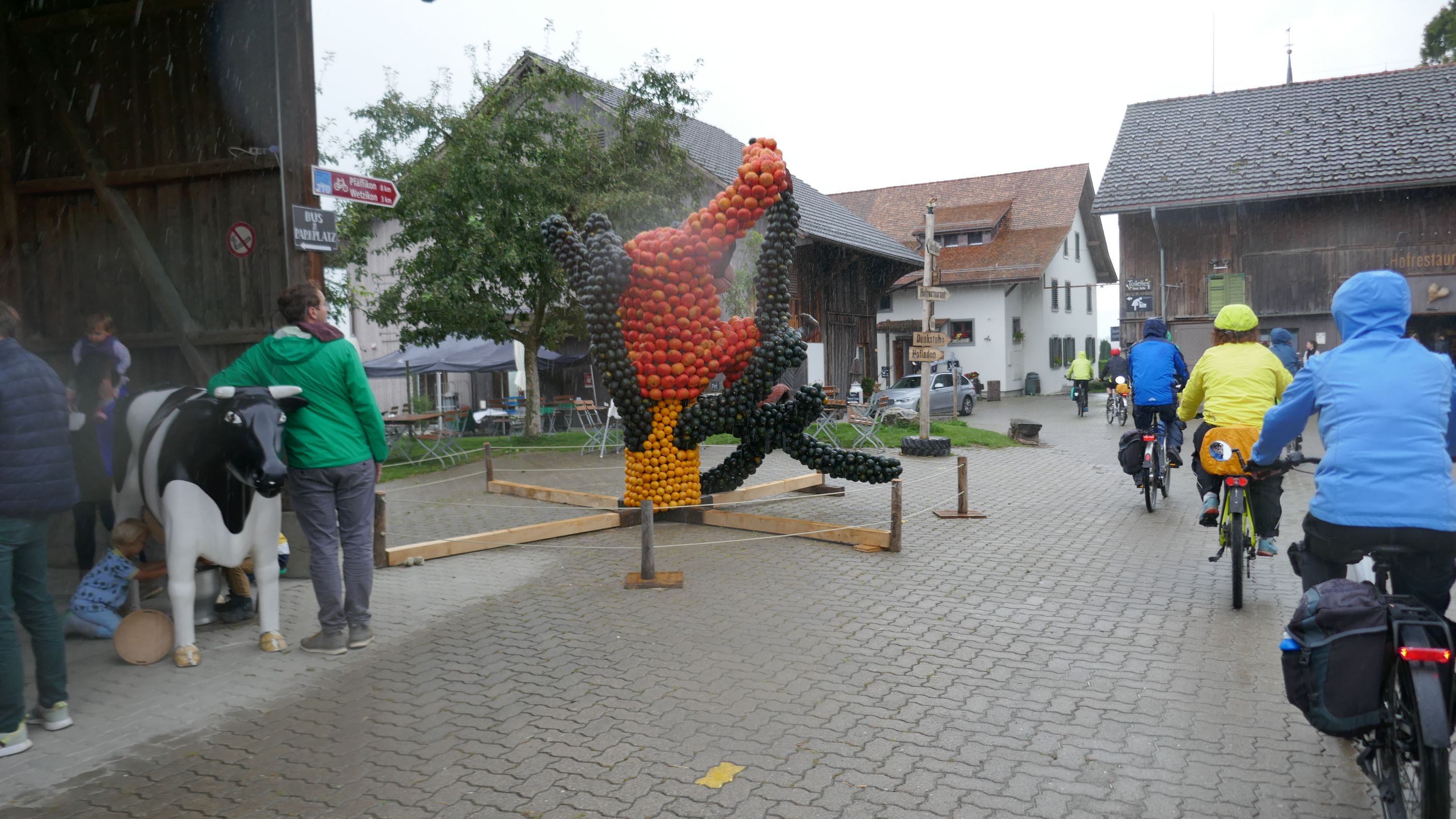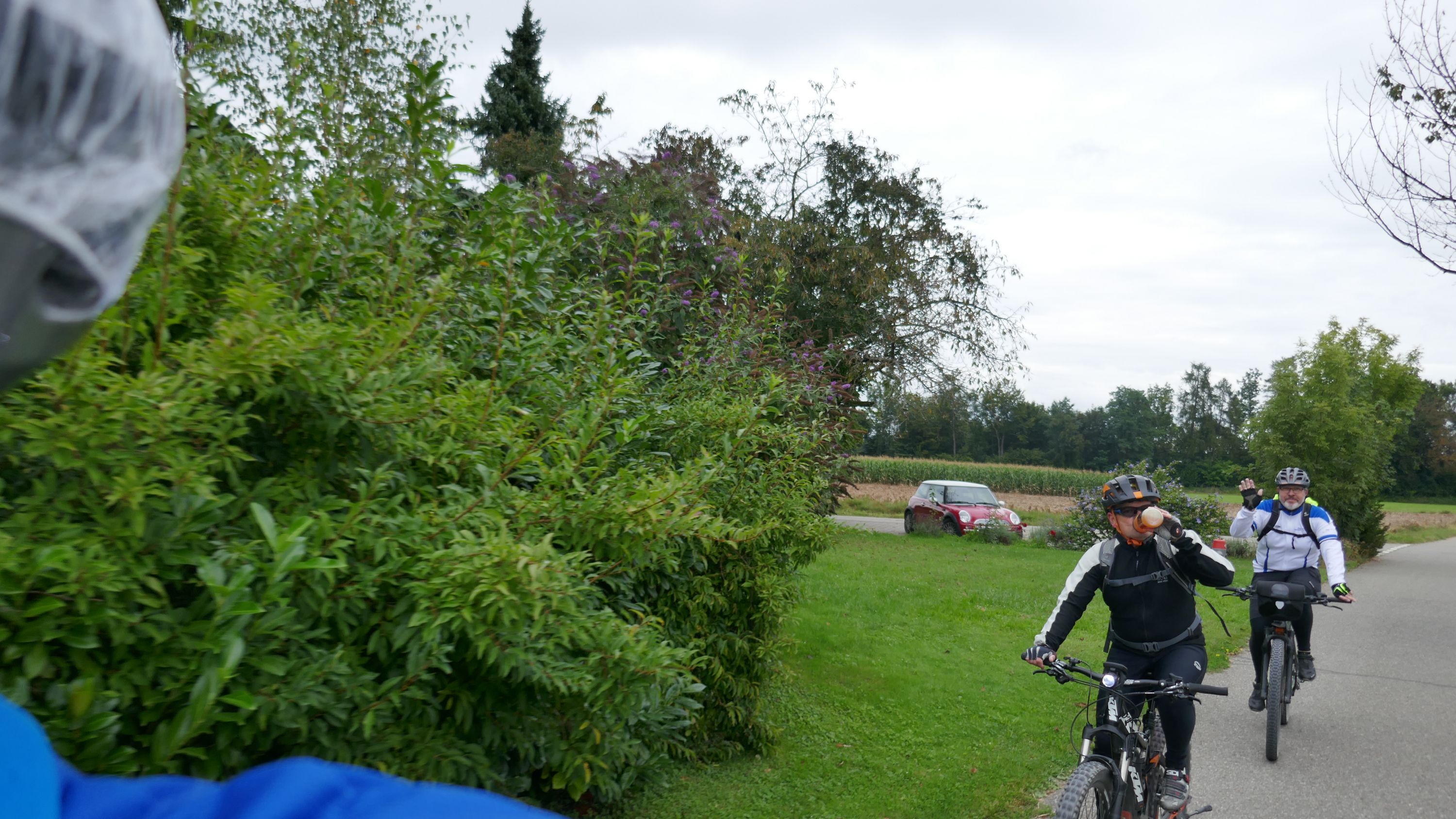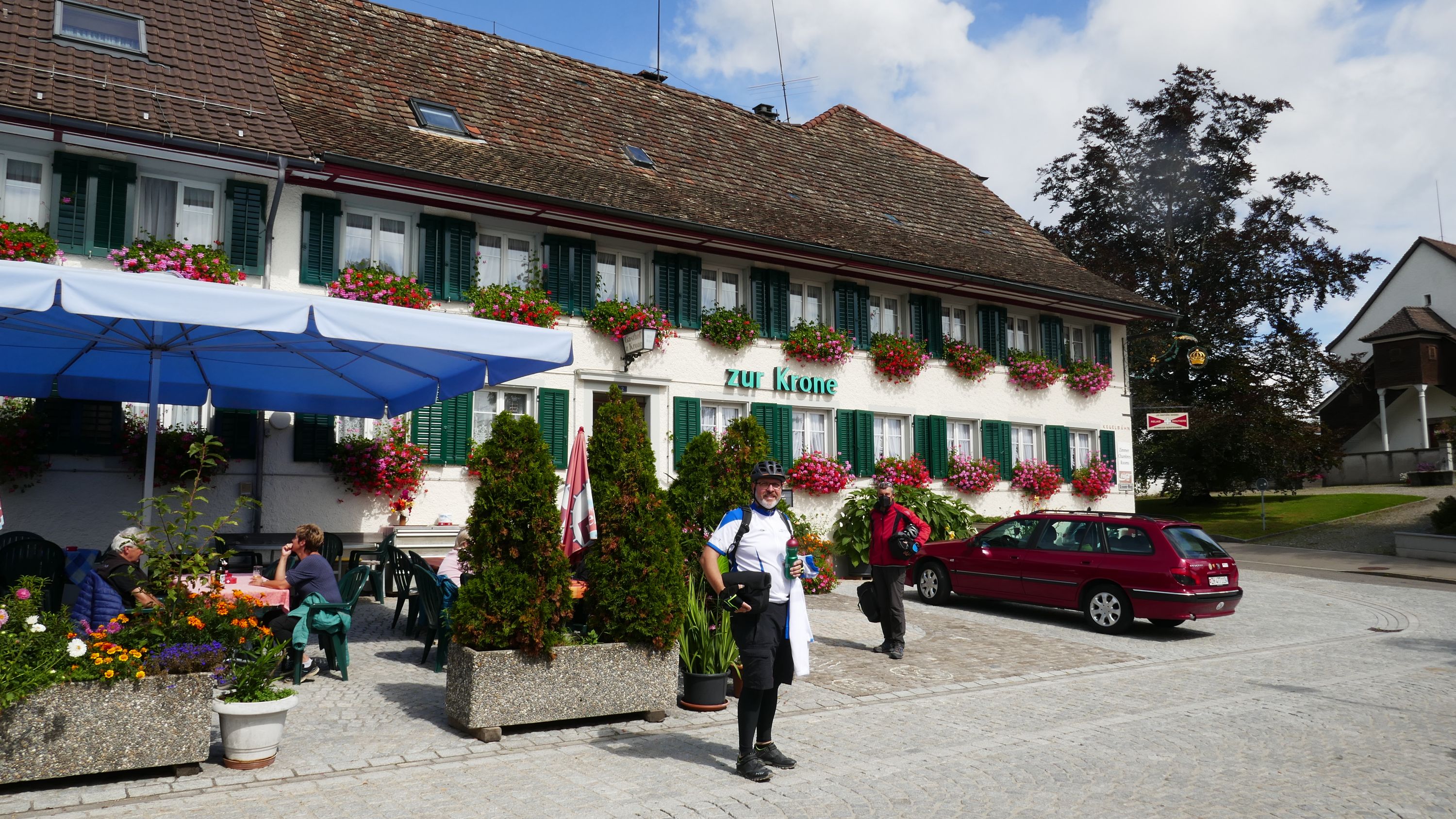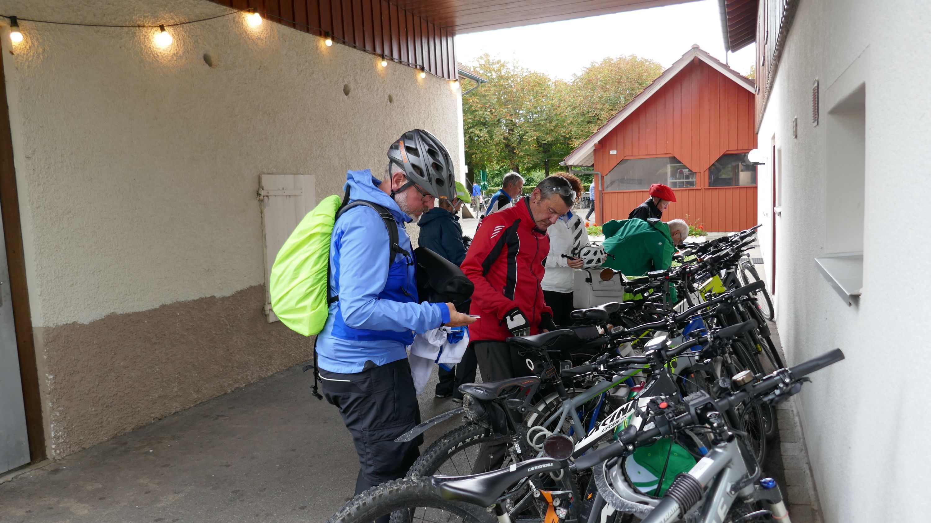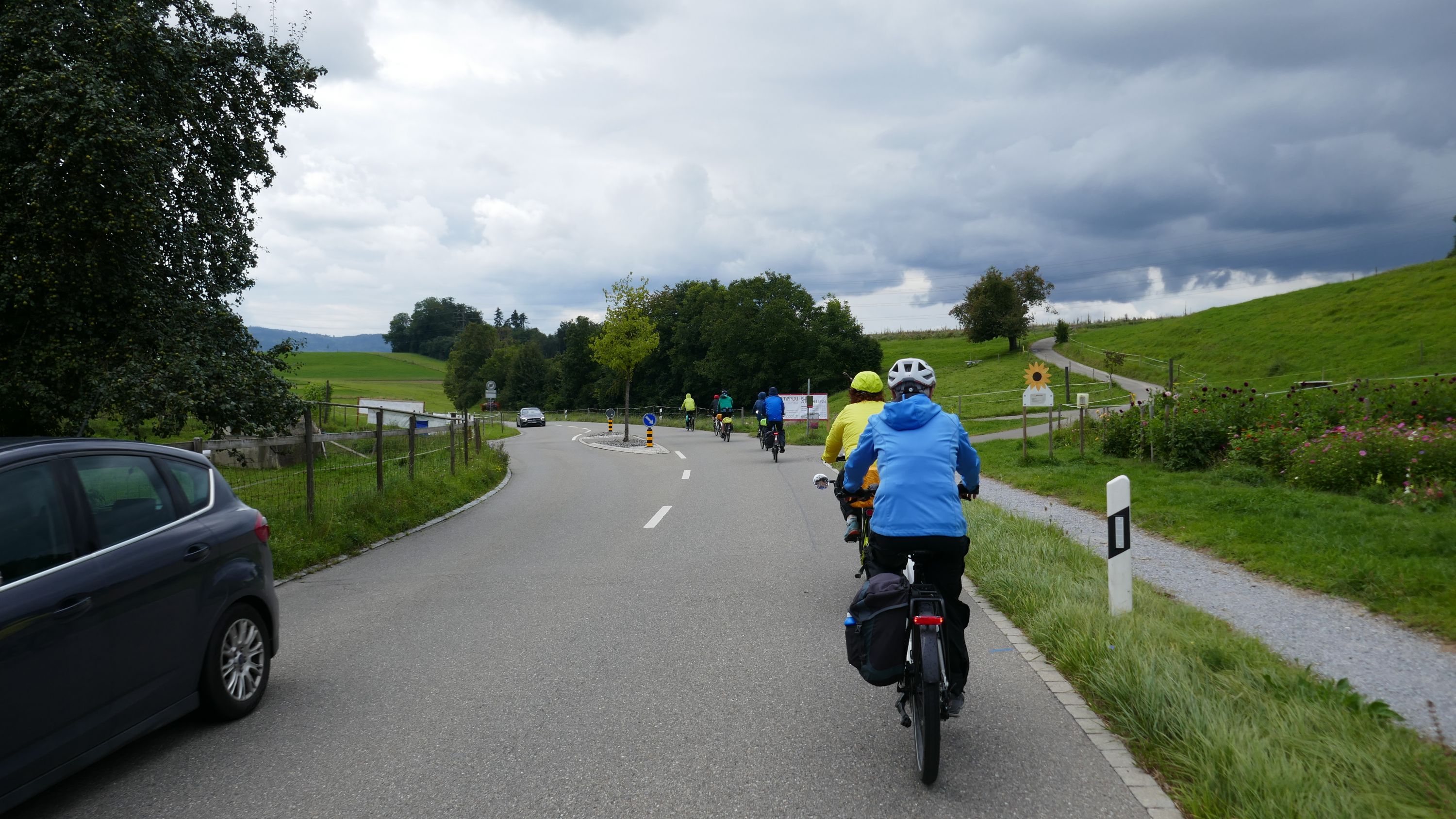 Nach langem Warten, durften wir endlich wieder eine Wochenend-Tour durchführen. Nachdem im Juni der Tourenleiter mit Begleitung eine Tour vorgefahren hatte war ich gespannt, wohin die Reise gehen würde. Bei bedecktem Himmel starteten 9 Veloclüpler im Schneckenacker morgens um 8 Uhr in Richtung Greifensee. Beim Schloss Laufen wartete schon Silvia auf uns und so radelten wir gleich weiter über Marthalen, Andelfingen nach Winterthur. Bei der kühlen Witterung kam uns ein Kaffeehalt im Sporrer gerade recht. Gekonnt führte uns der Tourenleiter Urs an Winterthur vorbei der Töss entlang nach Kollbrunn. Ein längerer Aufstieg wartete nun auf uns, bevor das erste Ziel Russikon erreicht wurde. Im Landgasthof zur Krone stärkten wir uns für den Rest des ersten Tages. Das Essen war sehr gut und Preiswert, der Sputnik Service der Chefin ebenfalls. Bevor es weiter ging hiess es Regenkleider montieren den es begann leicht zu nieseln. Vorbei am Pfäffikersee durch Wetzikon gings dem Tagesziel Greifensee entgegen. In der Schlussviertel Stunde wurden wir aber dann so richtig geduscht. Zum Glück war unser Gepäck mit den trockenen Kleidern schon im Hotel zur Alten Kanzlei eingetroffen. Vielen Dank Kurt für Deinen Service. Dank dem freundlichen Hotelpersonal konnten wir unsere Velos in einer Tiefgarage einstellen. Nach einer kurzen Runde durchs Altstädtli durften wir ein gutes Nachtessen geniessen.