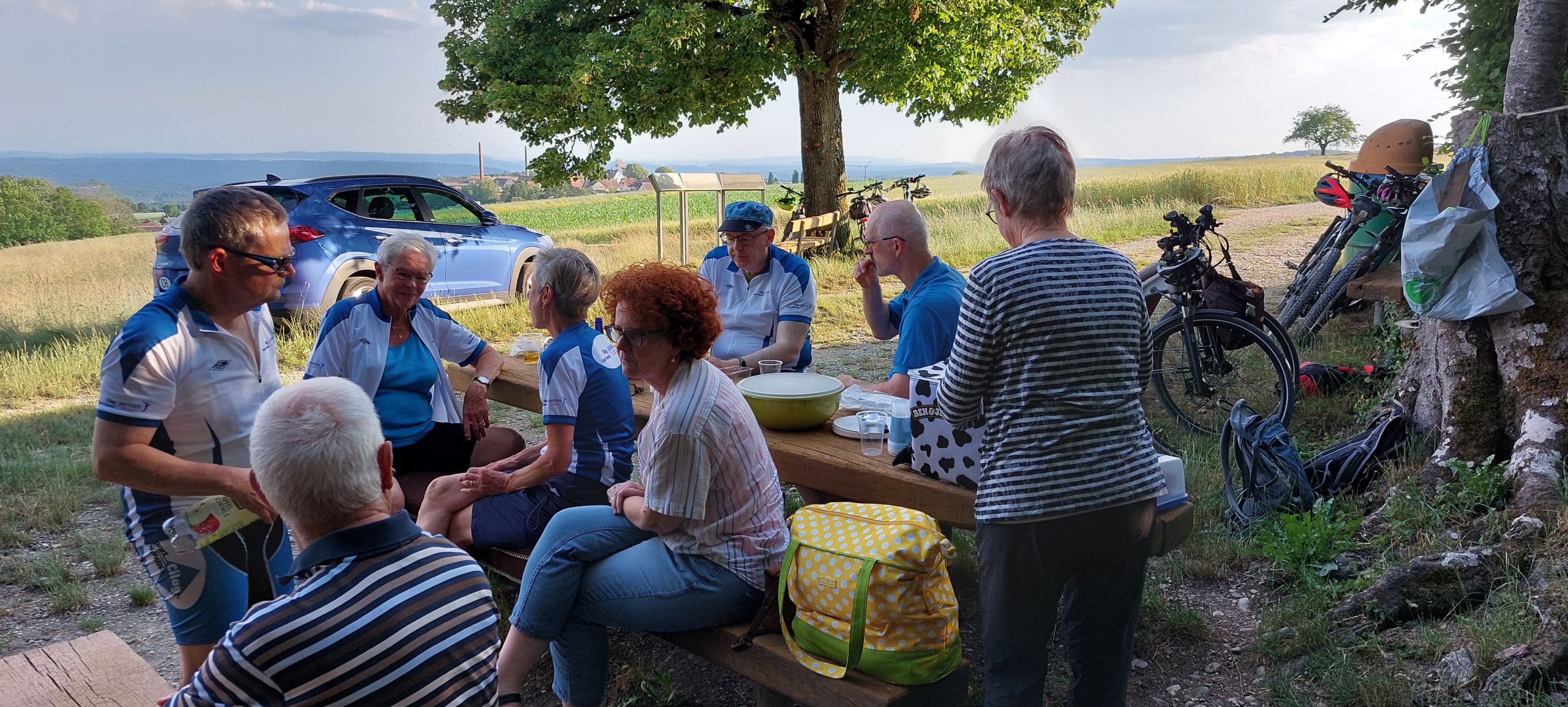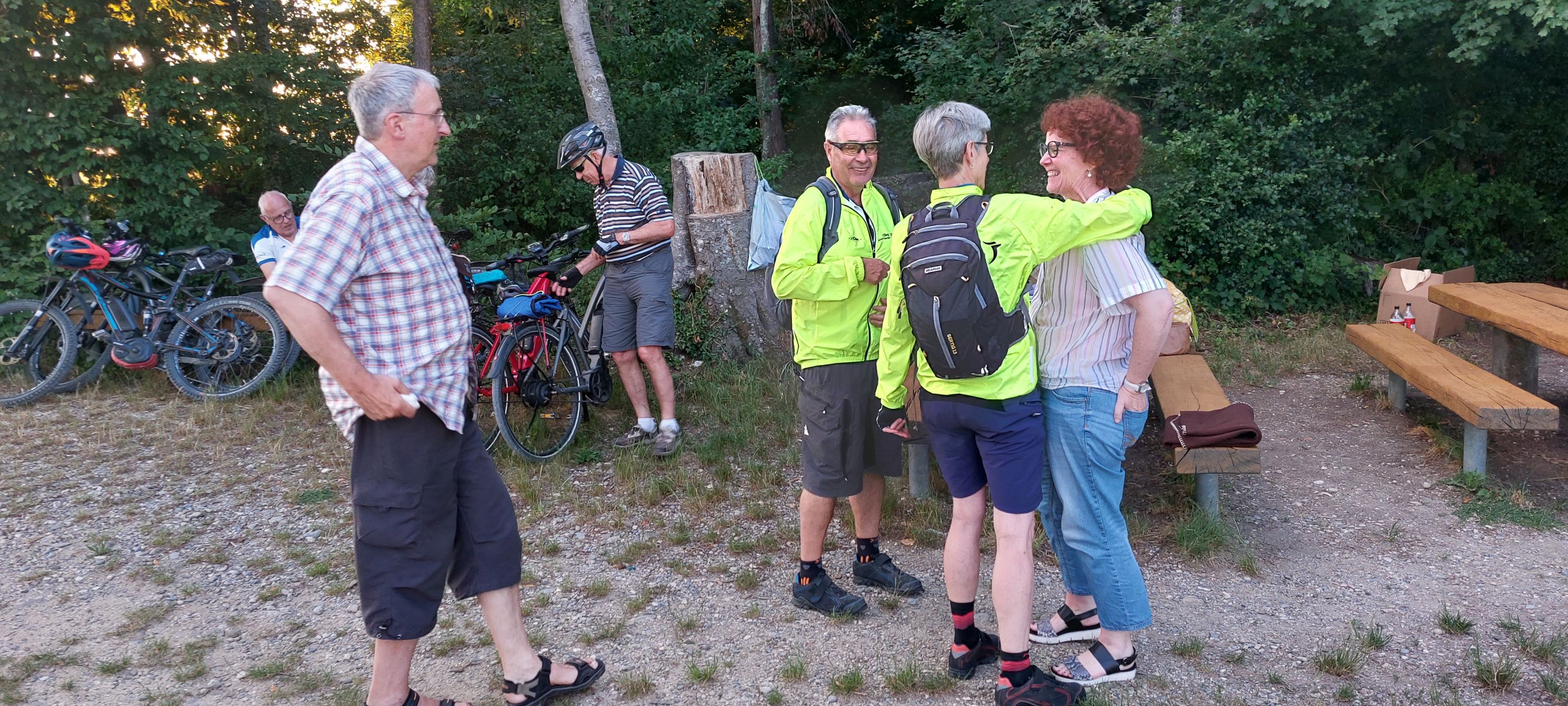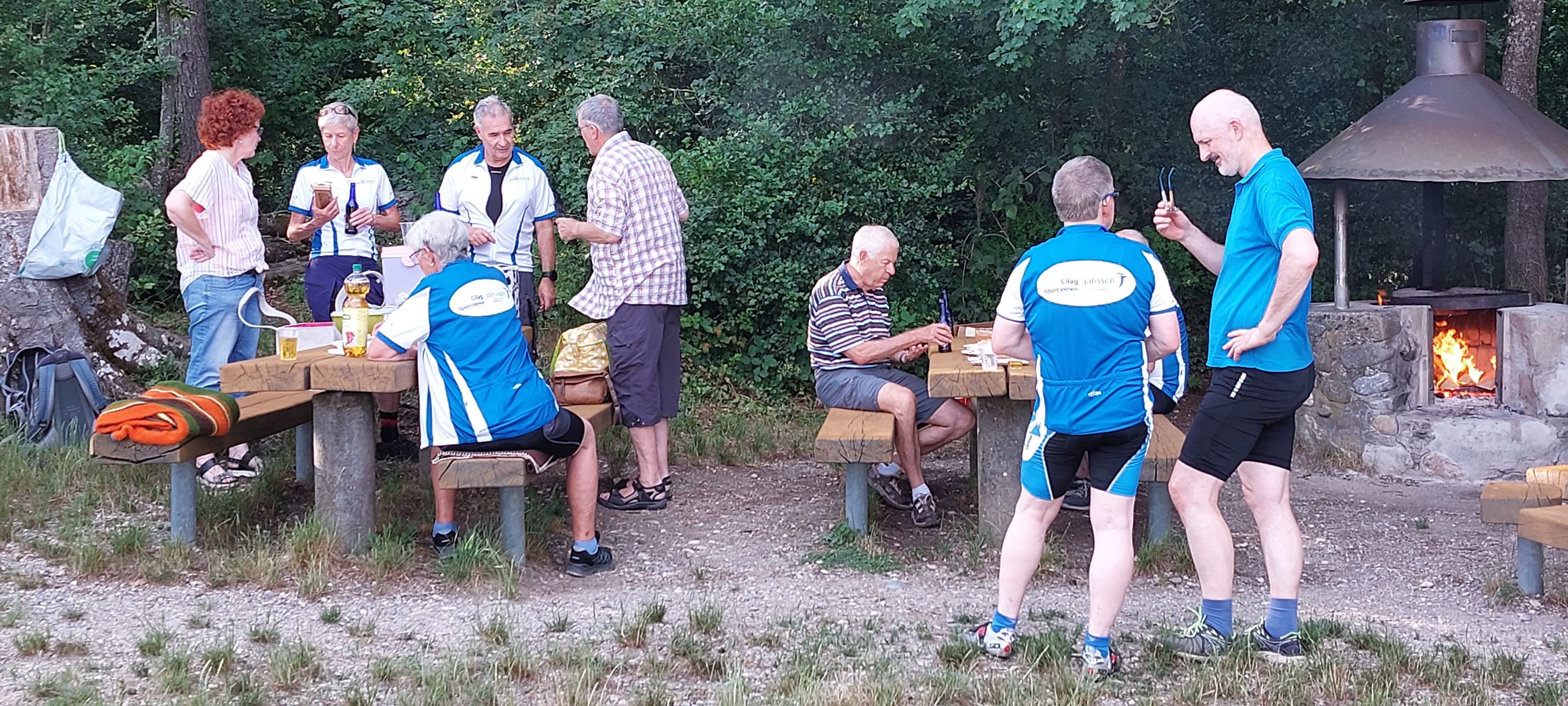 Bei Traumwetter trafen sich 12 Radler bei der ideal gelegenen Feuerstelle oberhalb Lohn. Dort erwarteten uns schon Jeannette und Urs, die bereits alles für einen schönen Grillabend vorbereitet hatten.