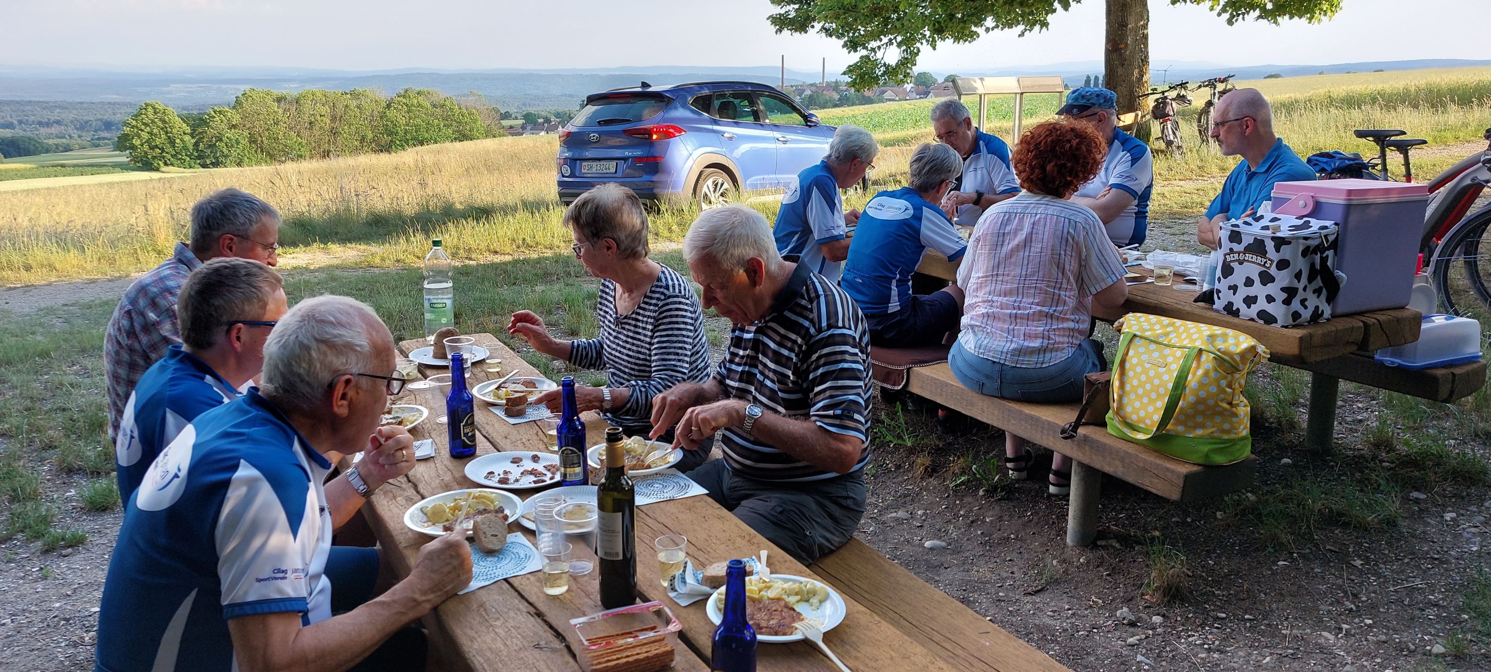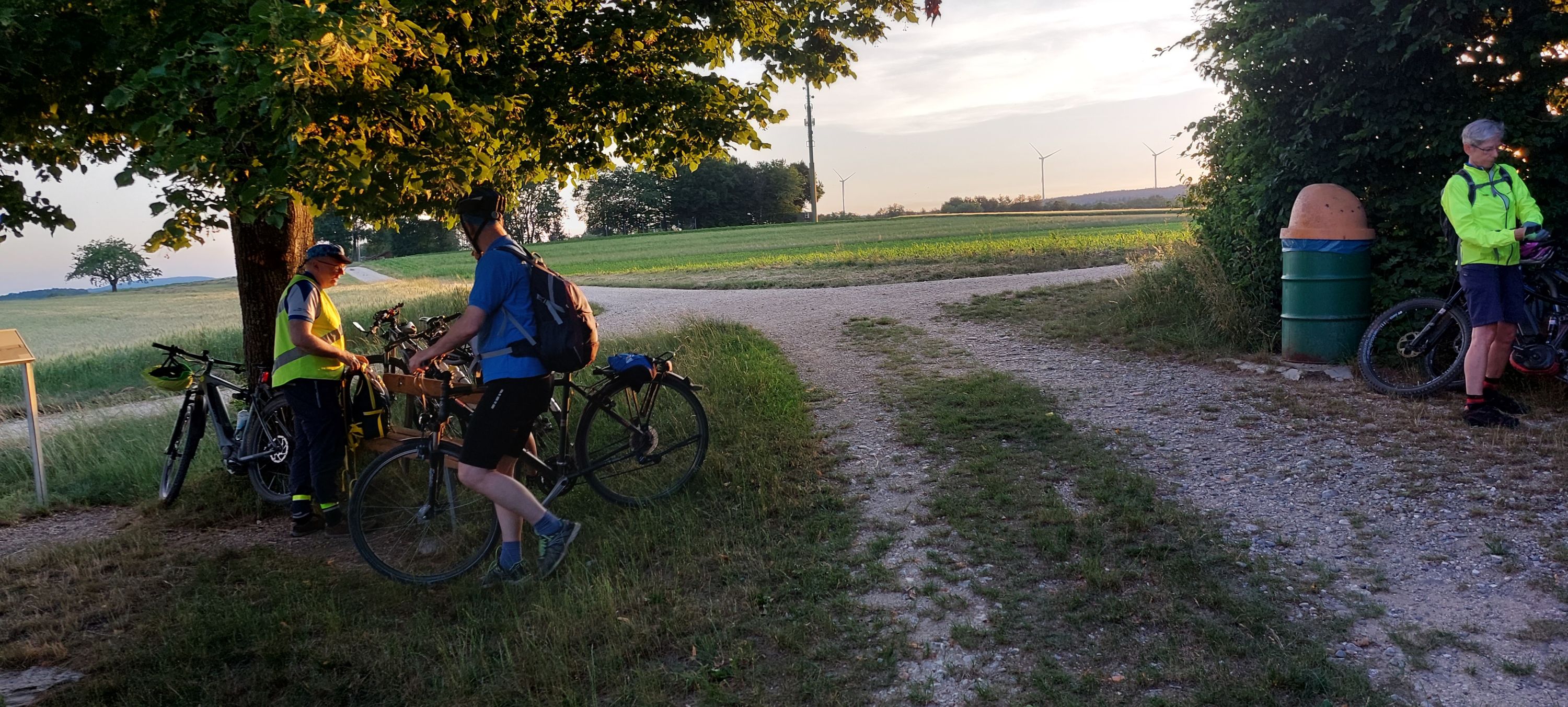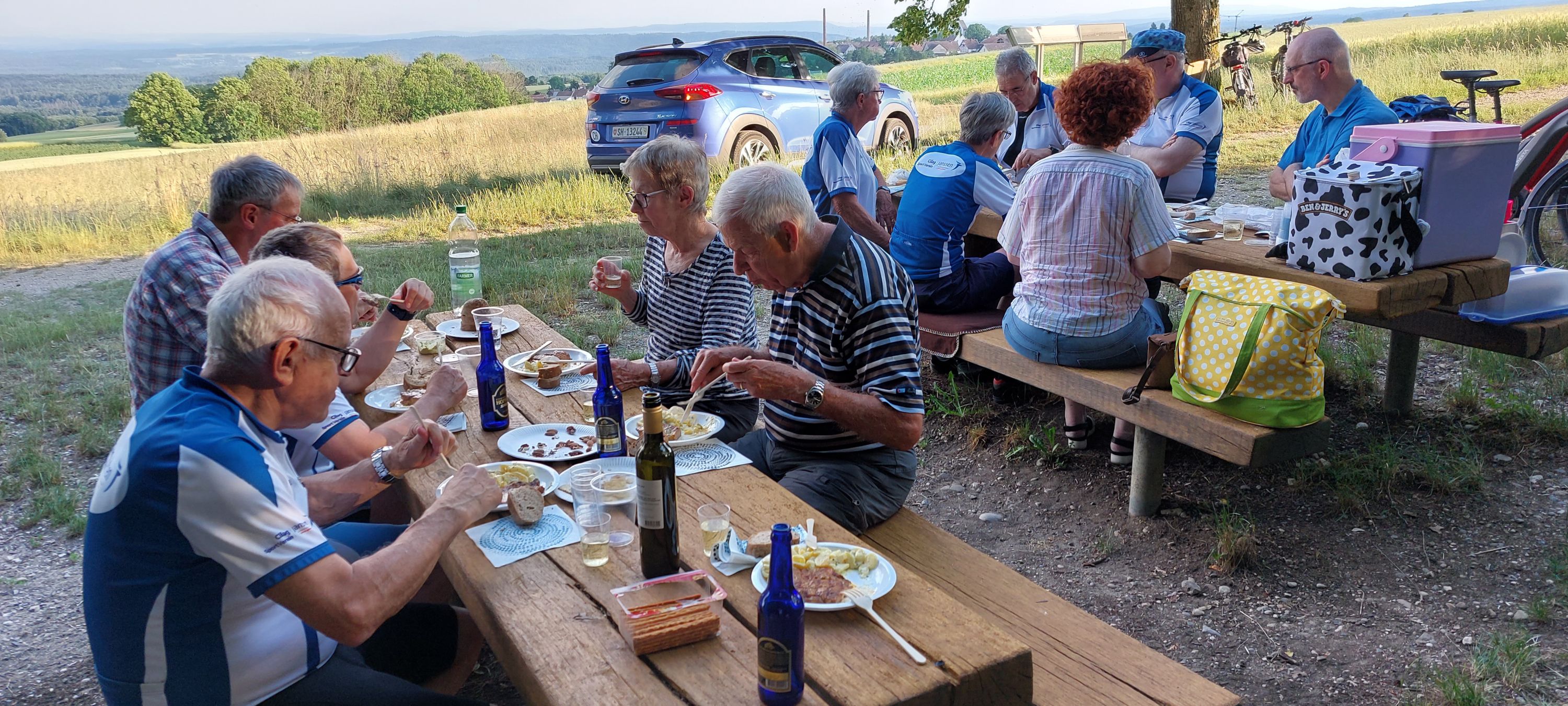 Bei Traumwetter trafen sich 12 Radler bei der ideal gelegenen Feuerstelle oberhalb Lohn. Dort erwarteten uns schon Jeannette und Urs, die bereits alles für einen schönen Grillabend vorbereitet hatten.