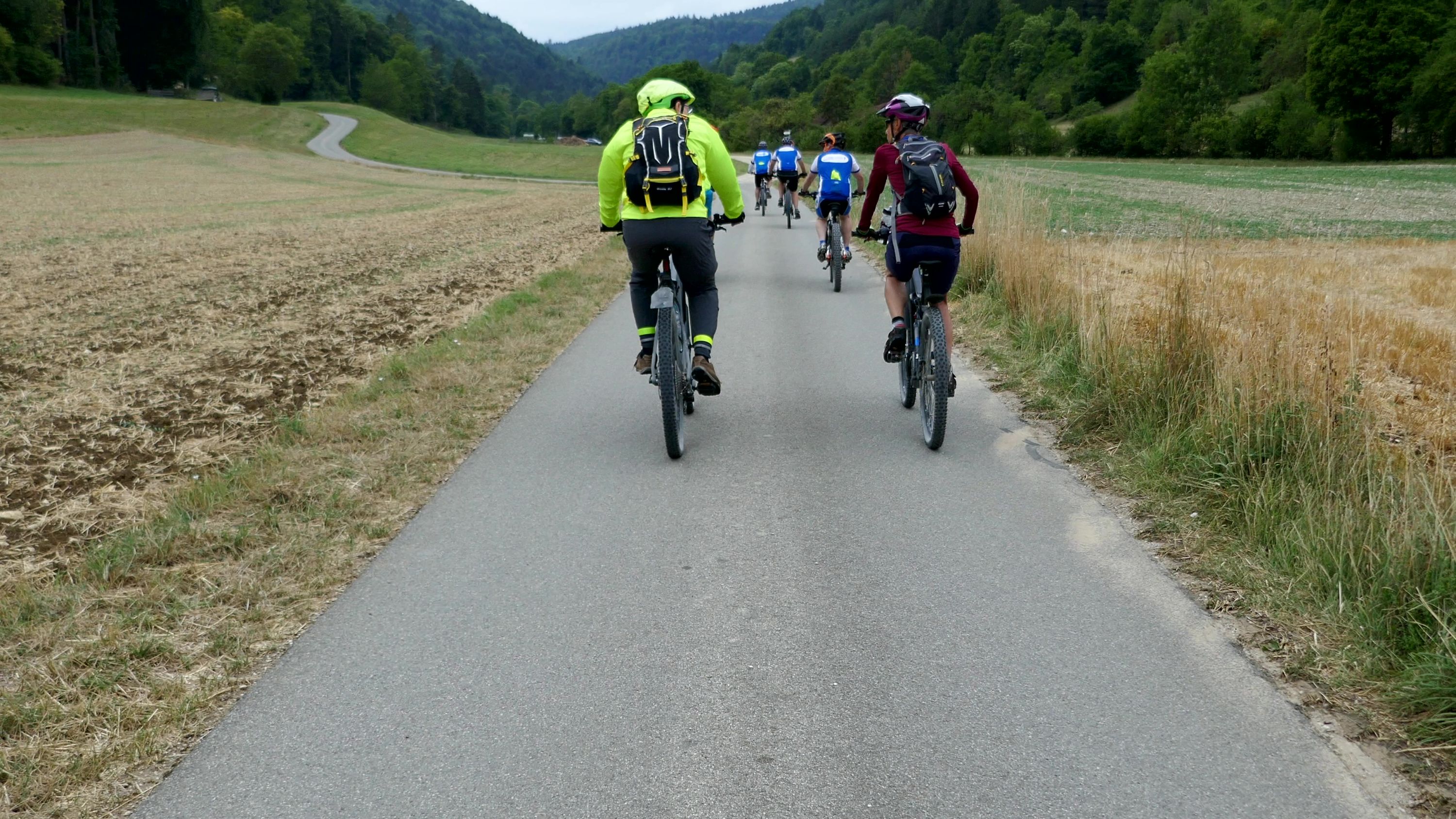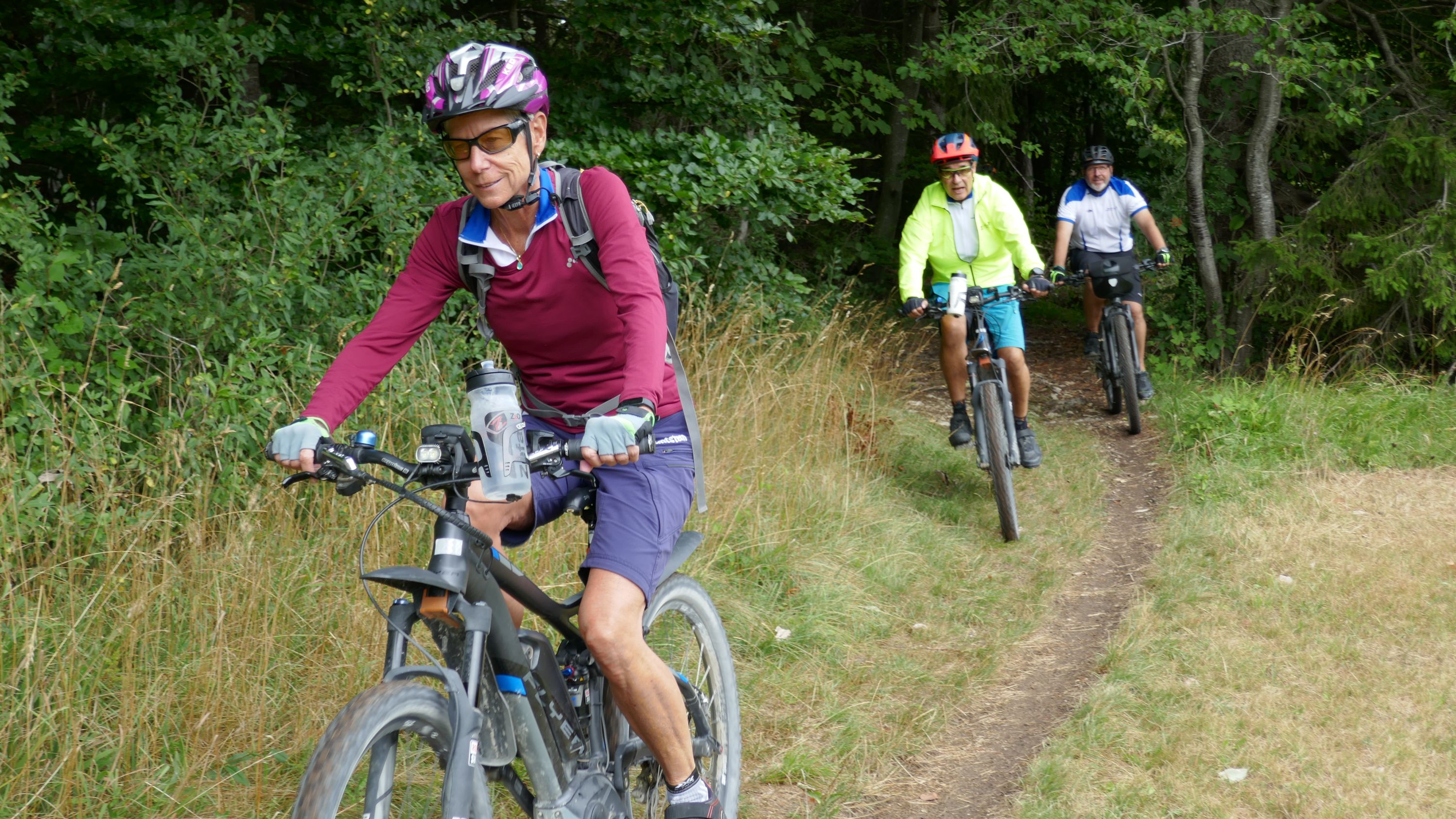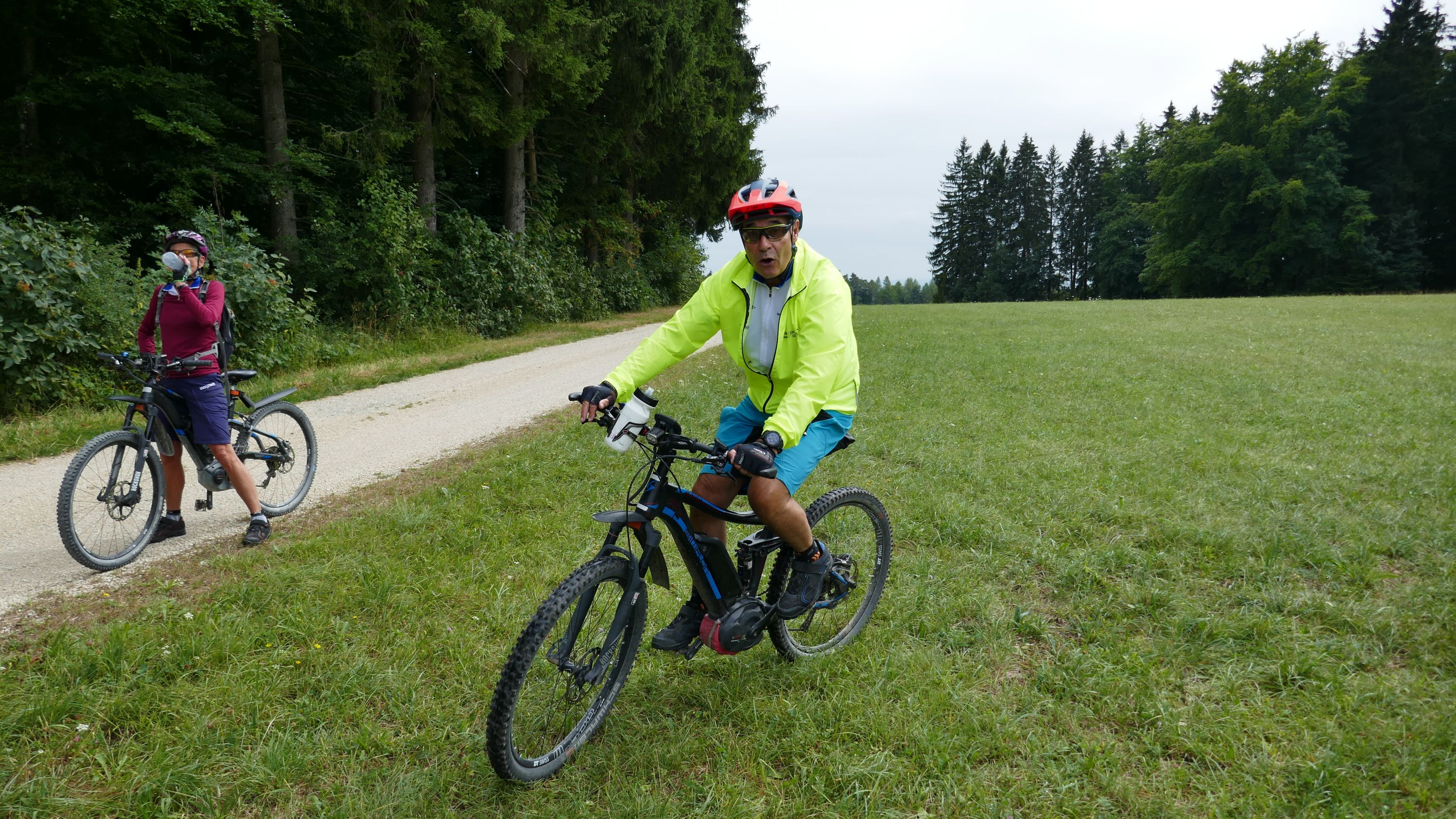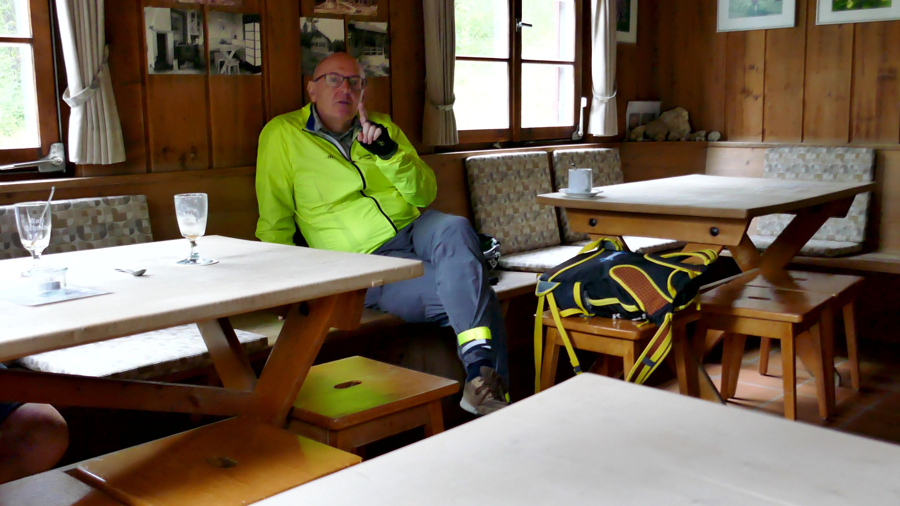 Bei ungewohnter kühler Temperatur trafen um 13:30 h die Radler ein und wir fuhren Richtung Buchberghaus zur Hasenbuckhütte. In der heimeligen Stube wärmten wir uns bei feinen Getränken auf und setzten anschliessend unsere Fahrt fort. Vorbei an der Pfadihütte am Haagen ging es über Soohölzli zum Hintere-Rande wo wir einen weiteren Halt einlegten und die Aussicht, über die Hegauberge bis zum Radolfzellersee, genossen. Von nun an ging`s bergab. Vorbei am Gfell – Osterberg den Chatzestiig hinunter bis zur Spitzkehre oberhalb der Badi Merishuuse, wo der Weg zur Mehrzweckhalle führt. Von dort waren es nur noch ein paar Kurven und wir landeten nasch 21 km, über Wiesen und Wurzelwege, wieder im Bodenwiesenweg, wo wir von Heidi und Verena empfangen wurden.