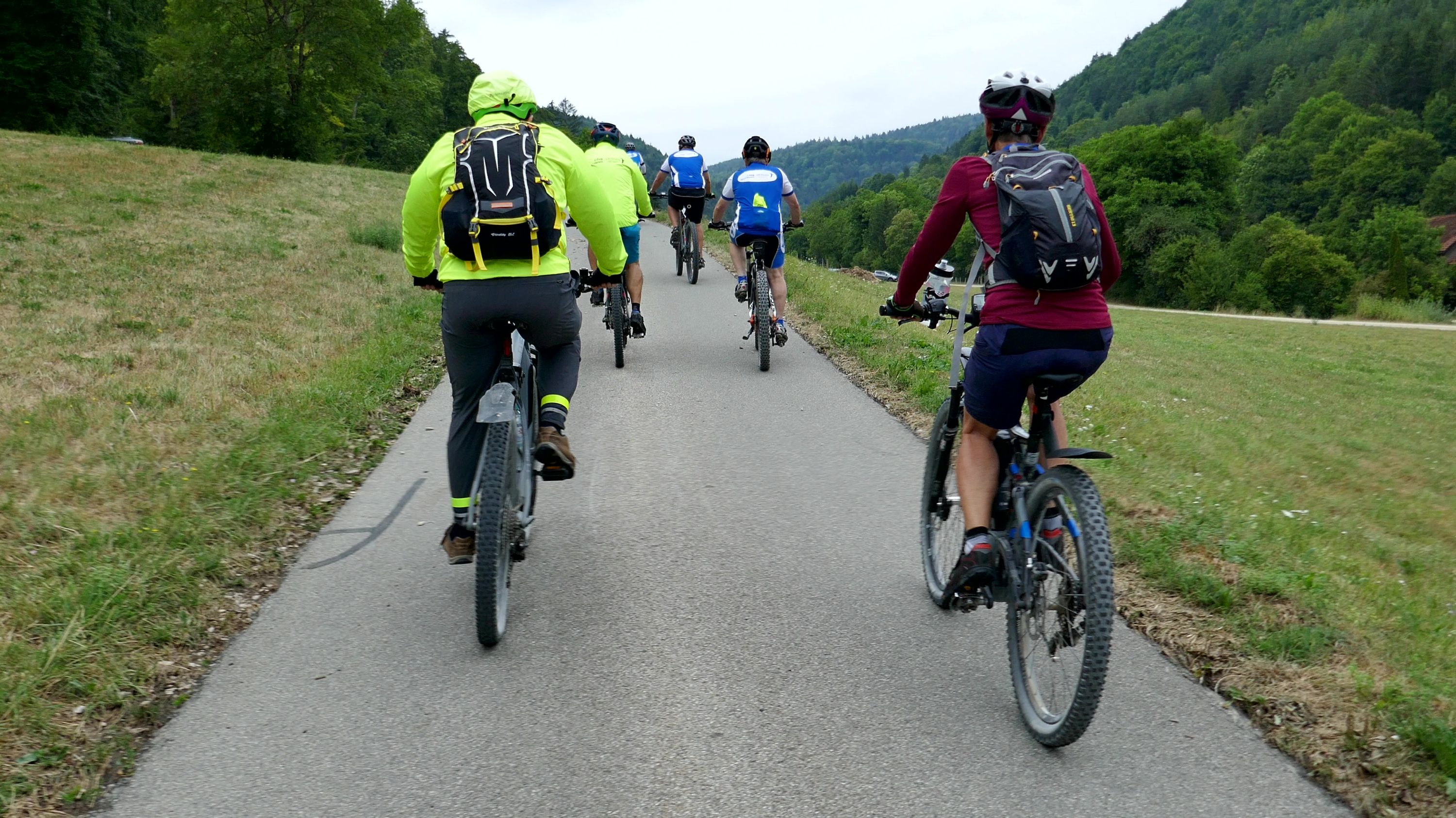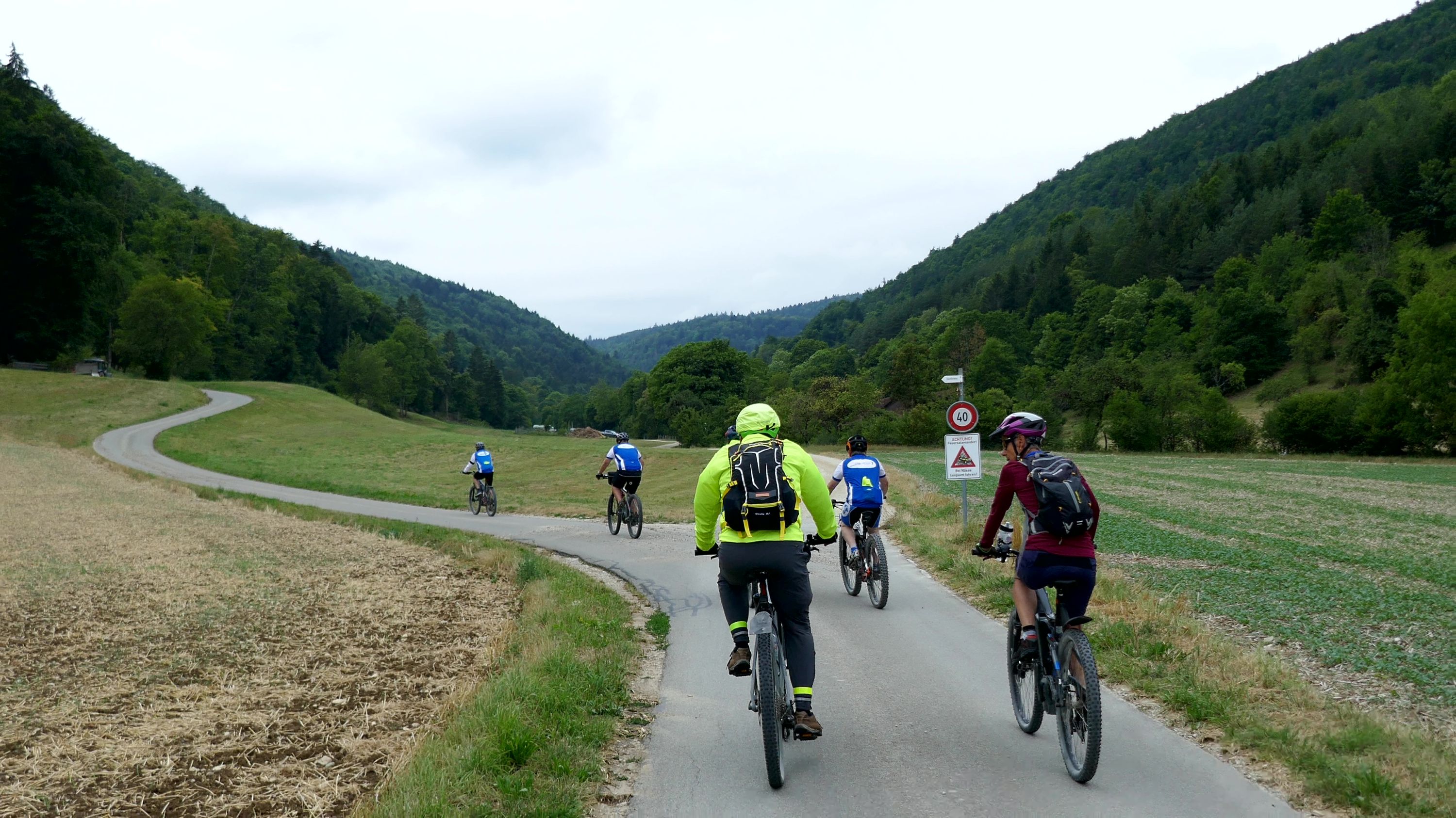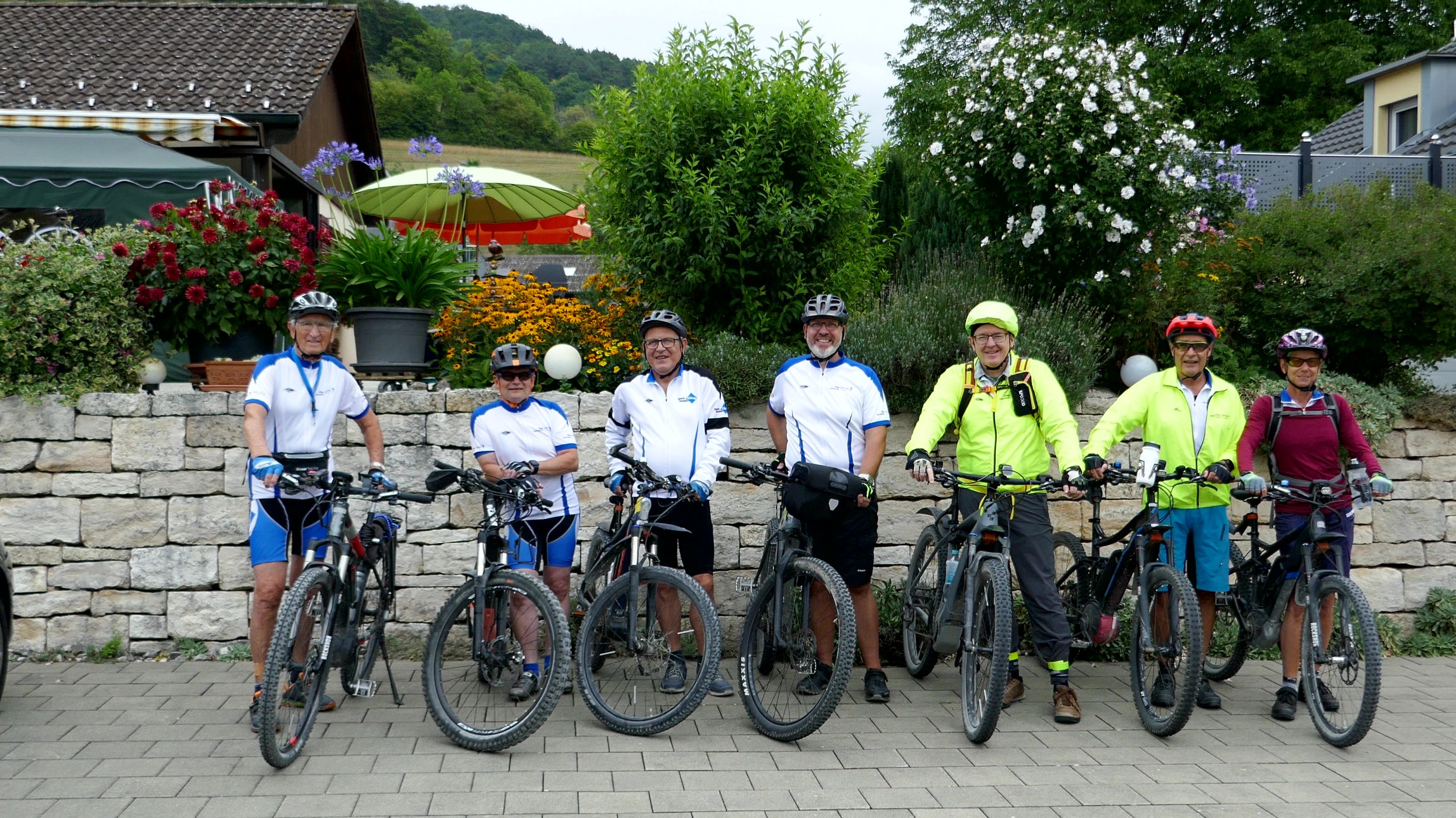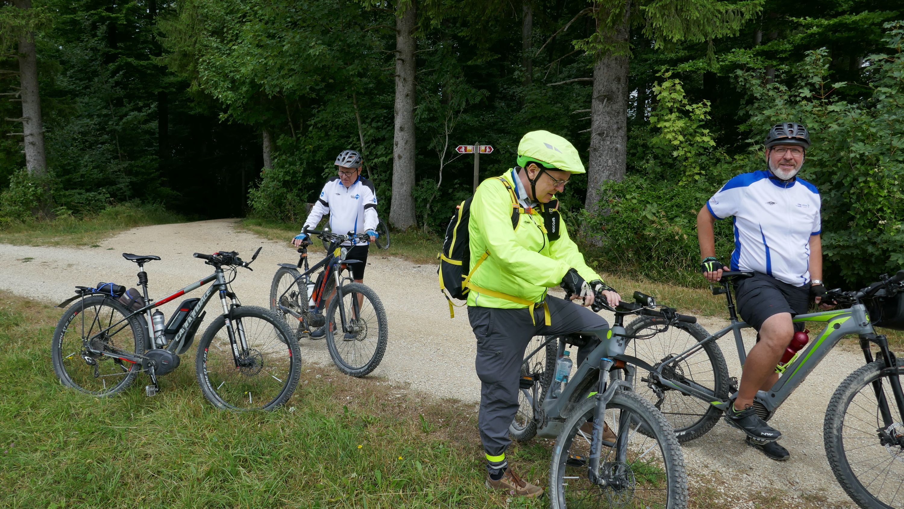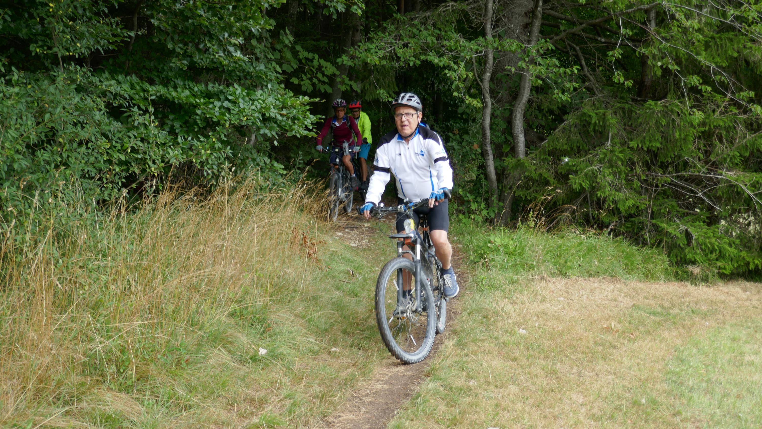 Bei ungewohnter kühler Temperatur trafen um 13:30 h die Radler ein und wir fuhren Richtung Buchberghaus zur Hasenbuckhütte. In der heimeligen Stube wärmten wir uns bei feinen Getränken auf und setzten anschliessend unsere Fahrt fort. Vorbei an der Pfadihütte am Haagen ging es über Soohölzli zum Hintere-Rande wo wir einen weiteren Halt einlegten und die Aussicht, über die Hegauberge bis zum Radolfzellersee, genossen. Von nun an ging`s bergab. Vorbei am Gfell – Osterberg den Chatzestiig hinunter bis zur Spitzkehre oberhalb der Badi Merishuuse, wo der Weg zur Mehrzweckhalle führt. Von dort waren es nur noch ein paar Kurven und wir landeten nasch 21 km, über Wiesen und Wurzelwege, wieder im Bodenwiesenweg, wo wir von Heidi und Verena empfangen wurden.