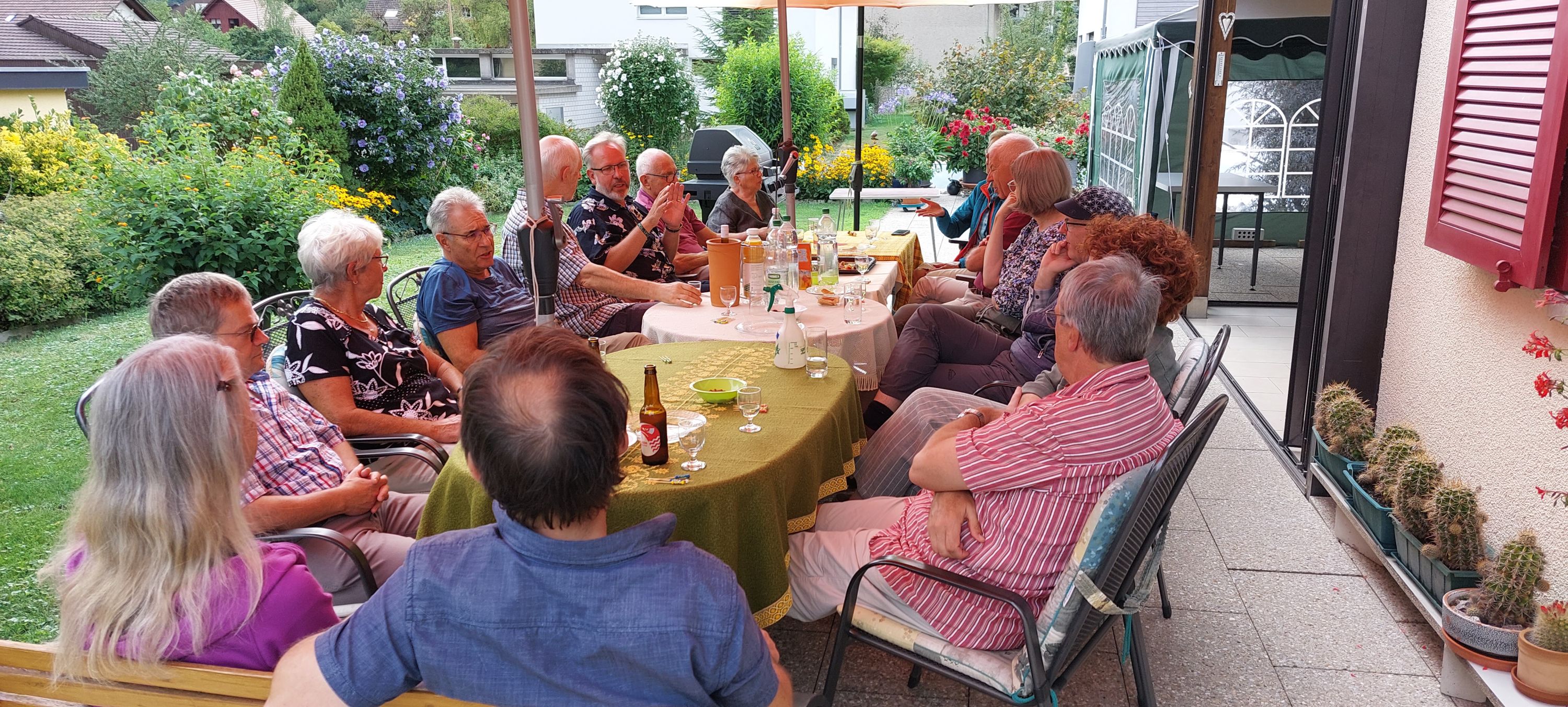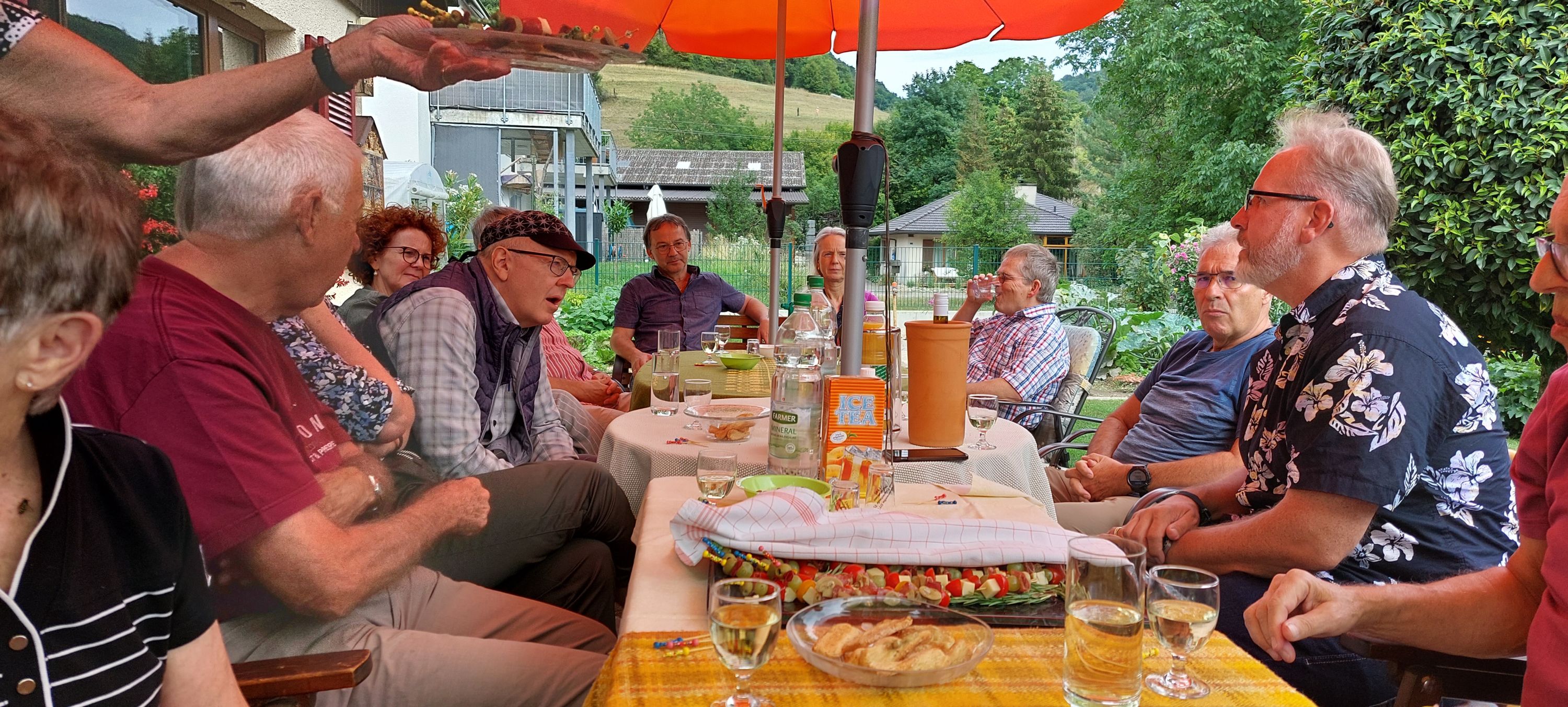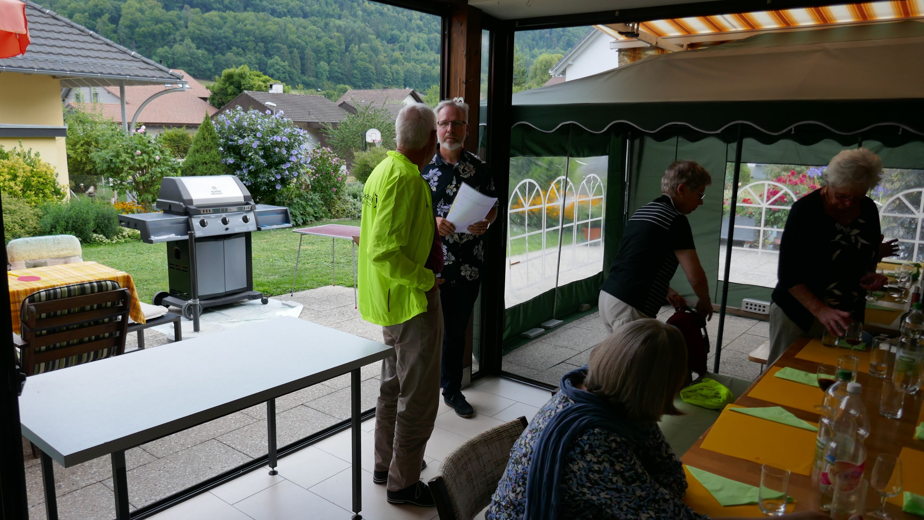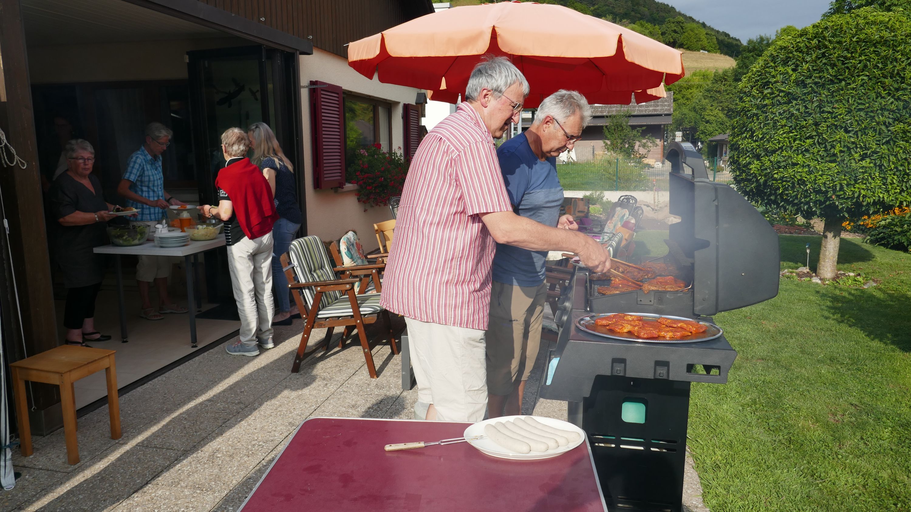 Nach dem sich die Biker erfrischt und umgezogen hatten starteten wir mit dem Apéro und allerlei Gluschtigem, gespendet von einigen Mitgliedern. Auch dieses Mal durften unsere bewährten Grillmeister Beat und Urs die feinen Steaks zubereiten, was ihnen auch vorzüglich gelang. Alle fanden das von Urs organisierte Fleisch vorzüglich.