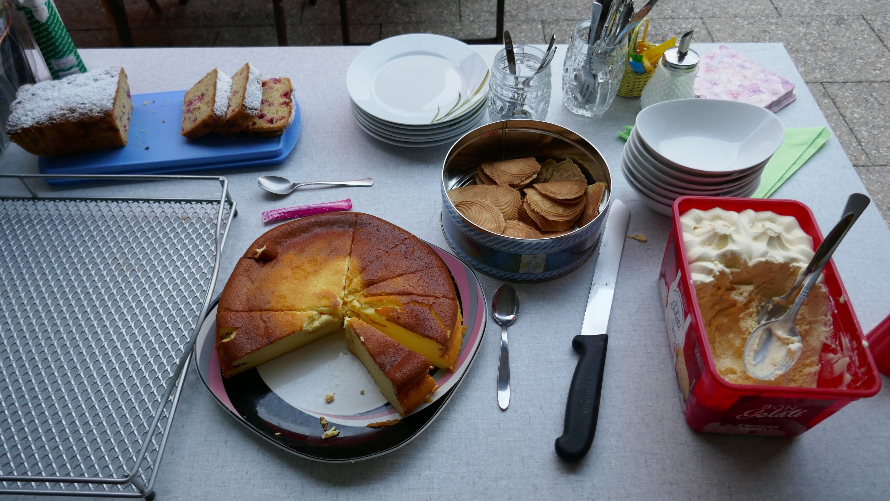 Bei Kaffee, köstlichen Torten, Kuchen und einem Glace sassen wir noch lange gemütlich zusammen. Zum Schluss überreichte Peter den Gastgebern, im Namen des Veloclubs, einen Geschenkkorb und bedankte sich für ihren Aufwand zum wiederum gelungenen Anlass am 31. Grillplausch.
