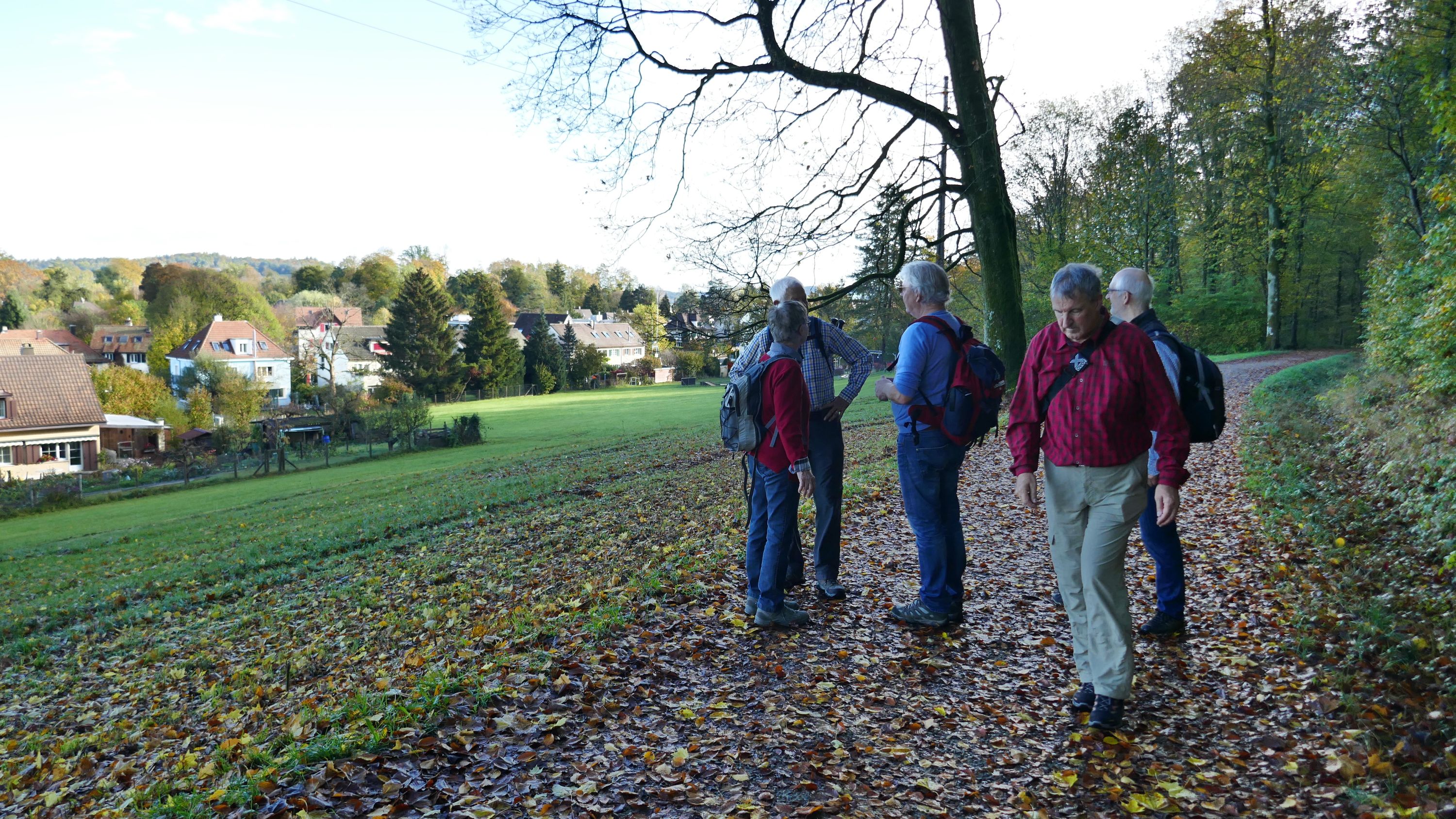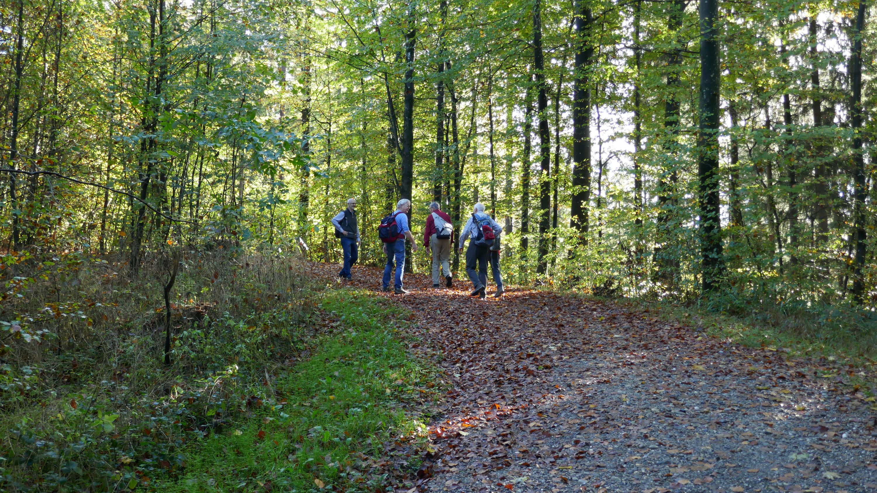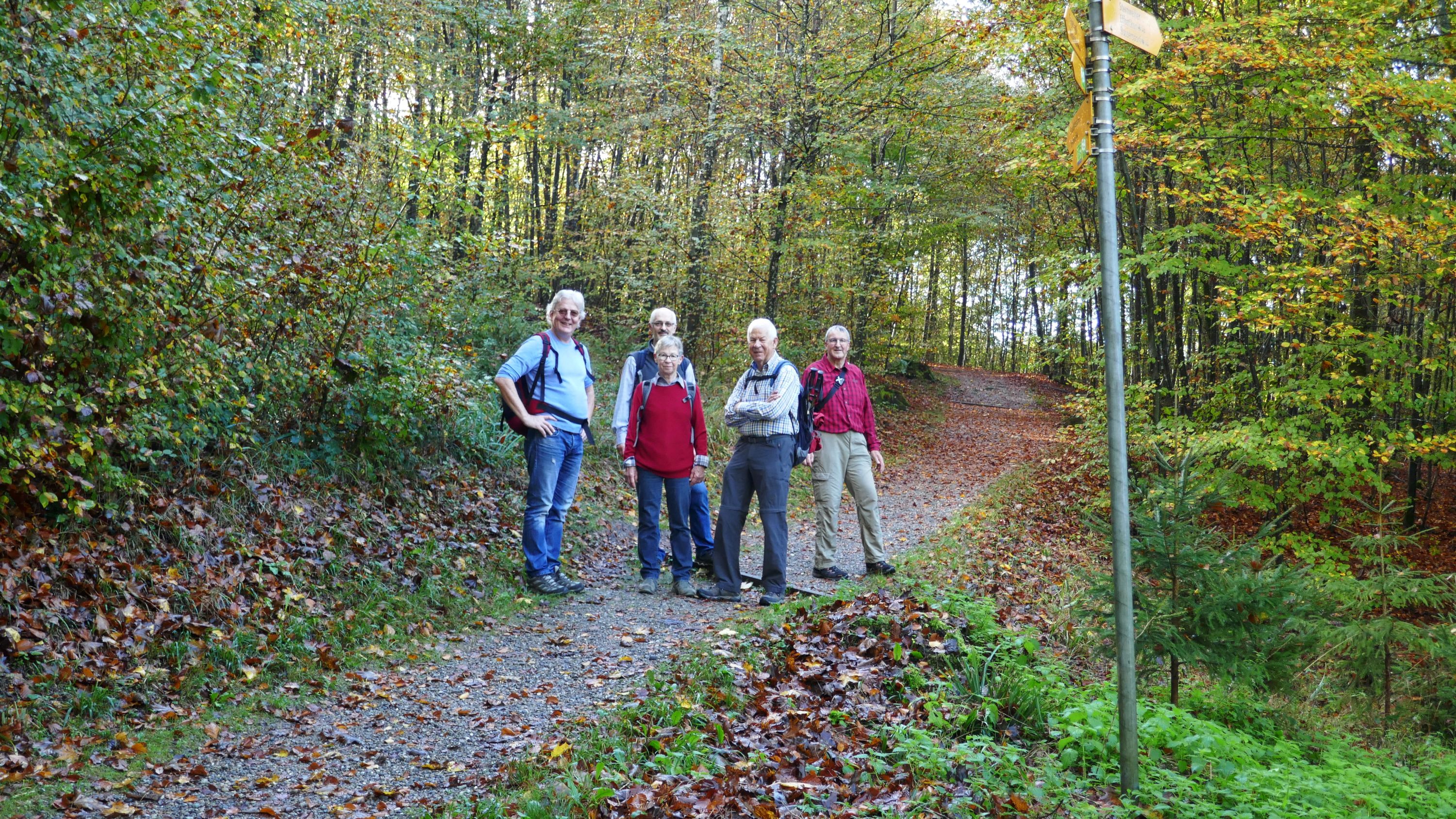 Als die 5 Teilnehmer um 09:15 h in Schaffhausen in den Zug stiegen war der Himmel nur noch leicht bewölkt und liess auf einen schönen Tag hoffen. In Winterthur wartete schon Urs auf uns, so dass wir gleich losmarschierten. Beim Aufstieg auf den Heiligberg, erwärmten uns die ersten Sonnenstrahlen und so kam die warme Jacke gleich in den Rucksack. Vorbei an der Minigolfanlage standen wir bald auf der Breite und erfreuten uns über die herrliche Aussicht, bis weit über Winterthur hinaus. Auf dem schönen, die meiste Zeit durch den Wald führenden Wanderweg, gesäumt von allerlei Pilzen, erreichten wir den Wildpark-Bruderhaus.