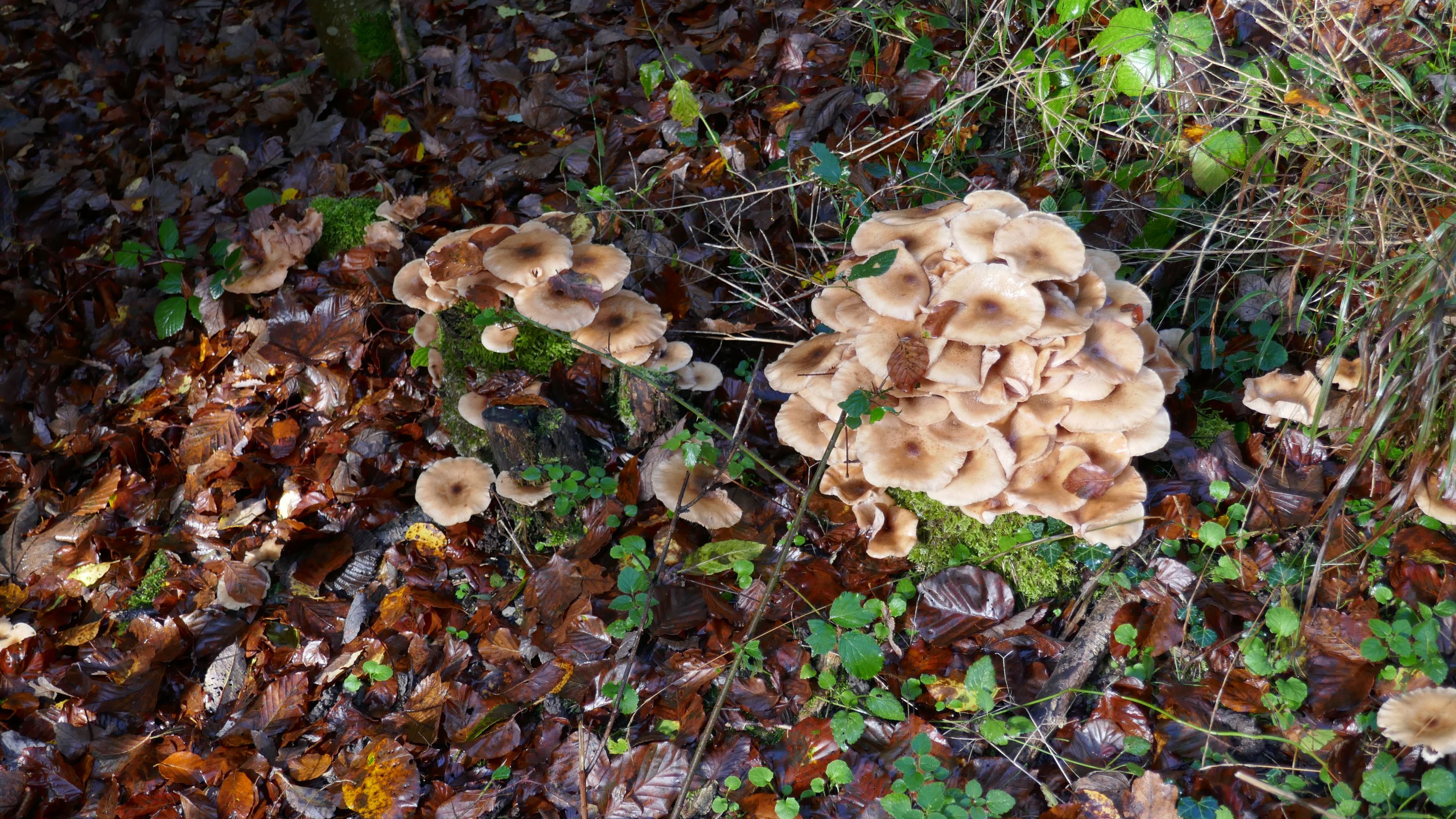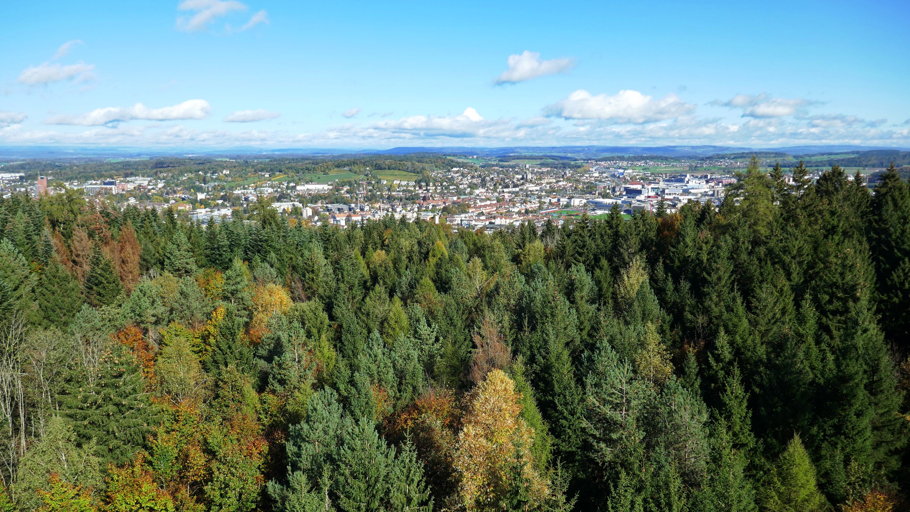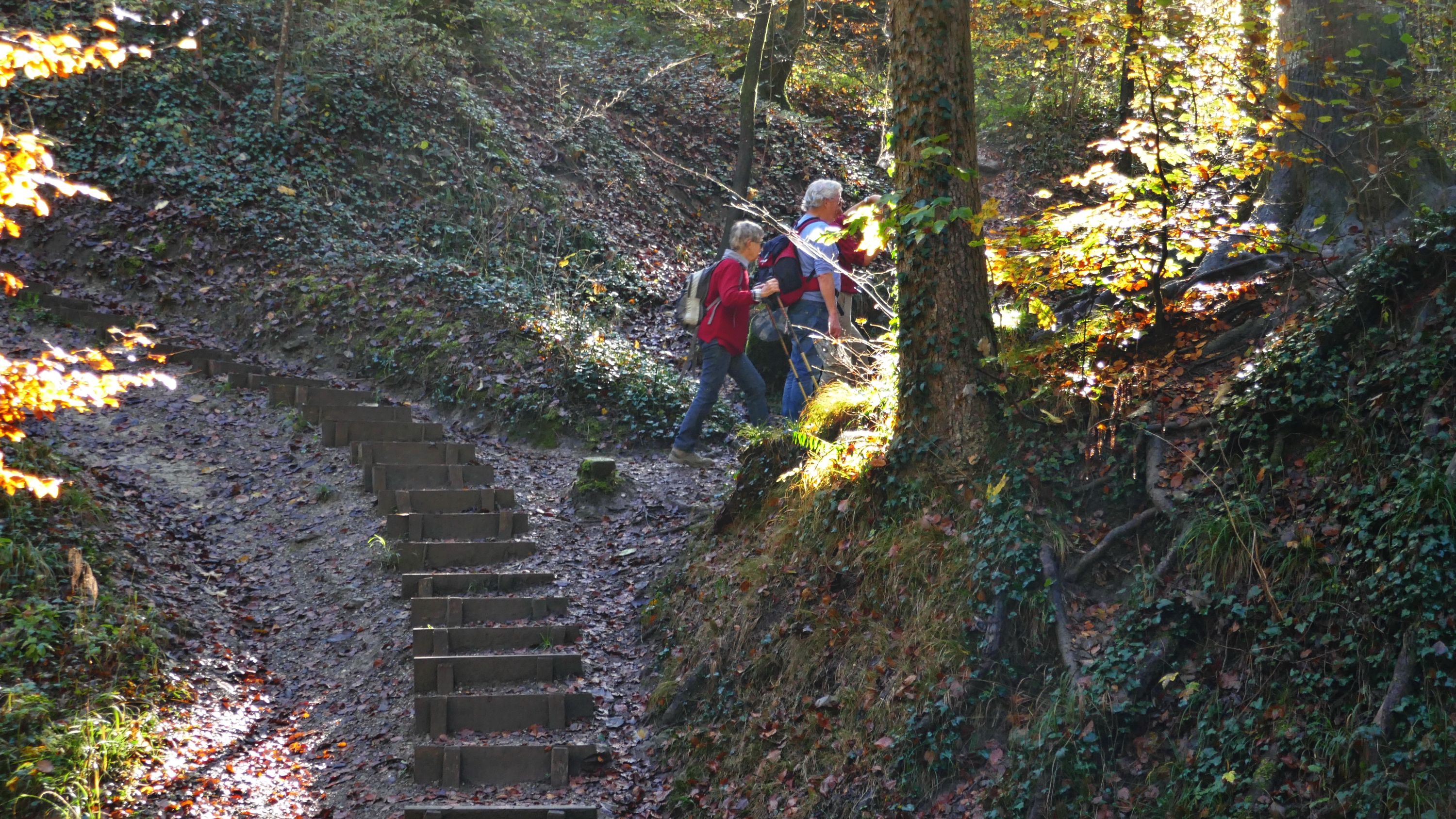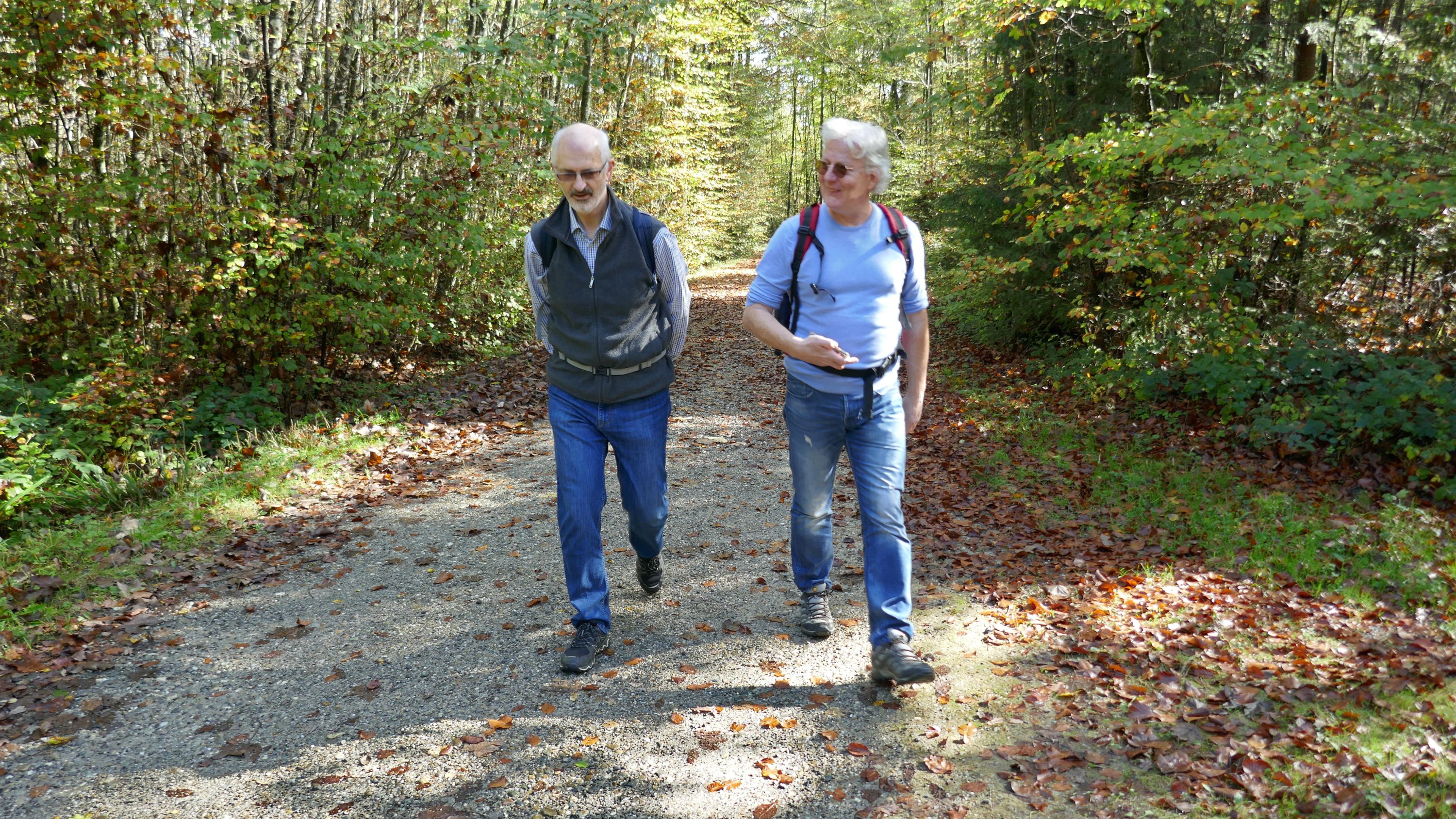 Als die 5 Teilnehmer um 09:15 h in Schaffhausen in den Zug stiegen war der Himmel nur noch leicht bewölkt und liess auf einen schönen Tag hoffen. In Winterthur wartete schon Urs auf uns, so dass wir gleich losmarschierten. Beim Aufstieg auf den Heiligberg, erwärmten uns die ersten Sonnenstrahlen und so kam die warme Jacke gleich in den Rucksack. Vorbei an der Minigolfanlage standen wir bald auf der Breite und erfreuten uns über die herrliche Aussicht, bis weit über Winterthur hinaus. Auf dem schönen, die meiste Zeit durch den Wald führenden Wanderweg, gesäumt von allerlei Pilzen, erreichten wir den Wildpark-Bruderhaus.