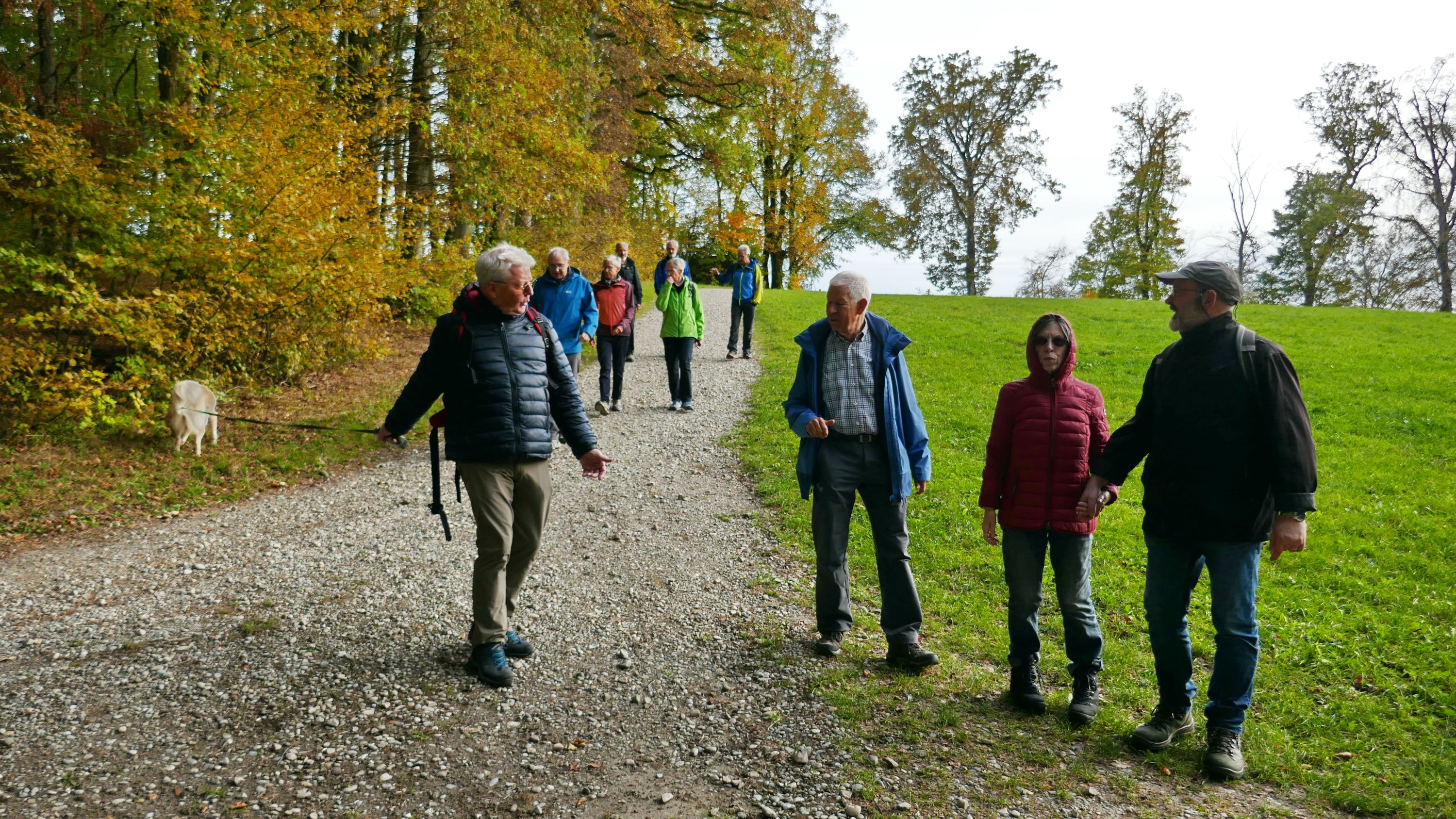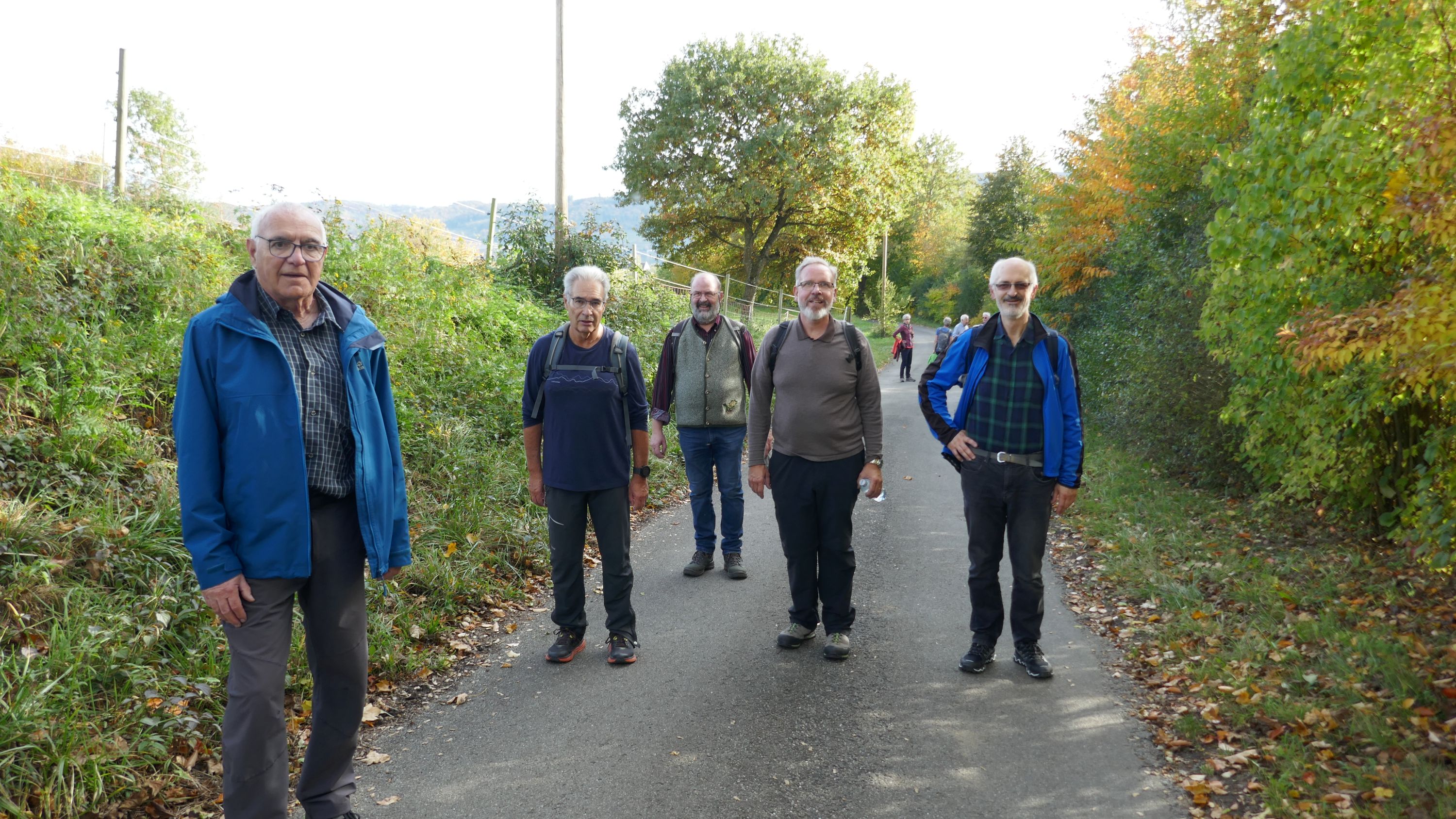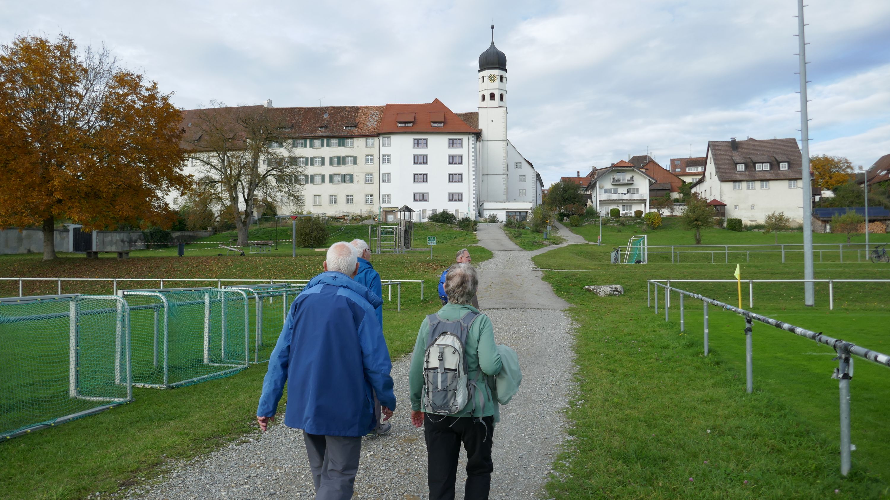 Pünktlich um 13:42 Uhr stieg Peter mit der Wandergruppe, in Stein am Rhein aus dem Zug, wo schon 3 weitere Teilnehmer auf ihn warteten. Nach einer kurzen Begrüssung ging es ins Städtli wo wir dem Wanderweg nahe dem Untesee folgten. Auf der Höhe von Öhningen bogen wir nach Norden ab und wanderten direkt auf das imposante Kloster zu. Vorbei an schönen Riegelhäusern erreichten wir am Ende des Städtchens den Wanderweg. Anfangs noch sanft ansteigend führt dieser hinauf zum Sonnenhof. Kurz danach bogen wir scharf nach links ab und folgten dem Wanderpfad Richtung Westen. Dieser wurde immer steiler und immer mehr Wurzeln verlangten ein konzentriertes gehen, was manche von uns nicht unbedingt schätzten. Schliesslich haben alle diese etwas anstrengende Strecke gemeistert und waren sogar etwas stolz auf ihre Leistung. Schon vor dem offiziellen Aussichtspunkt legten wir einen Halt ein um die schöne Aussicht über den Untersee bis zum Säntis zu geniessen.