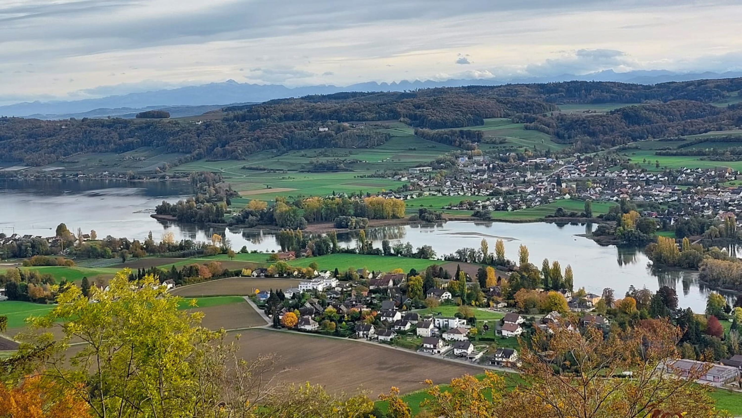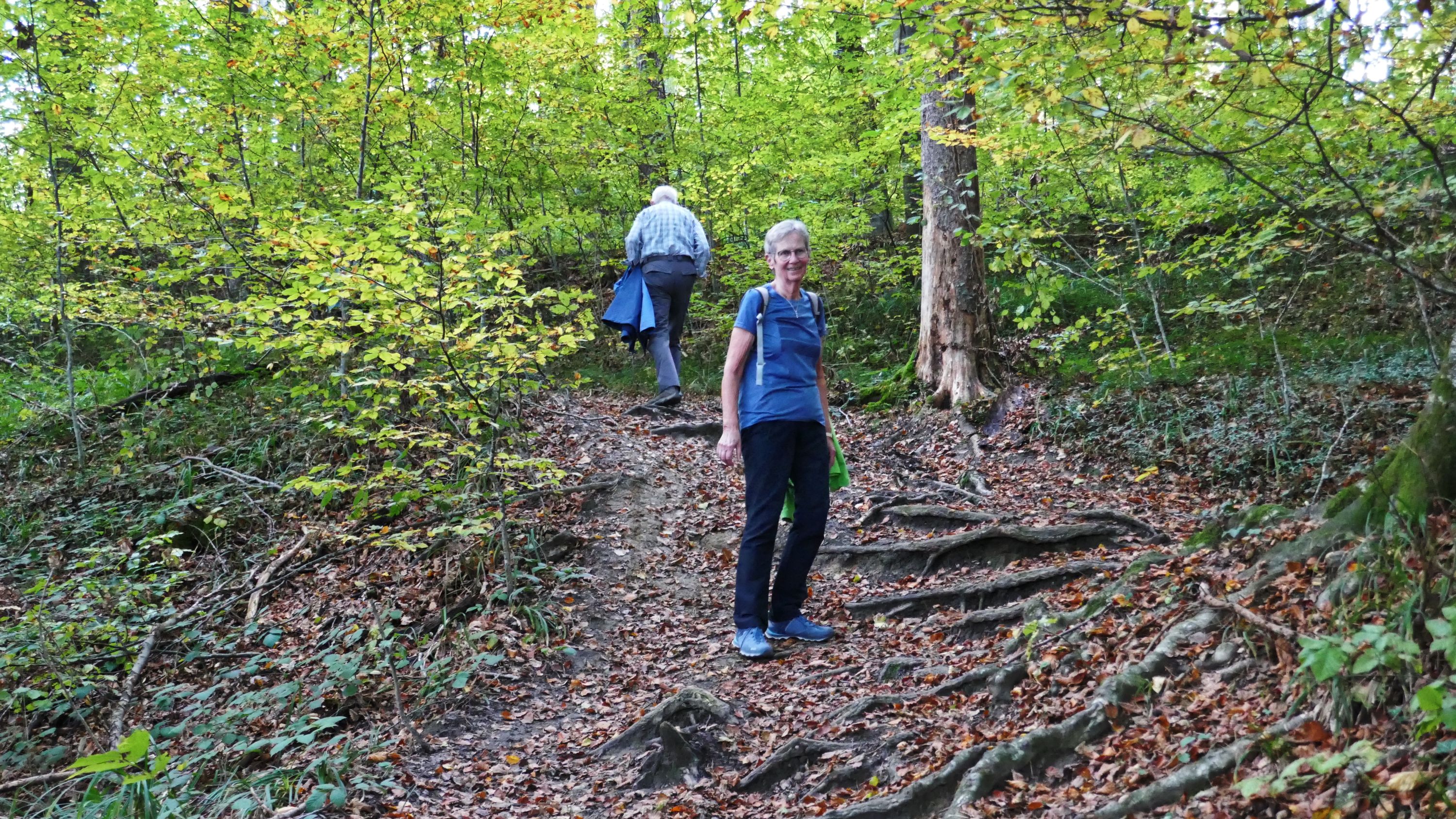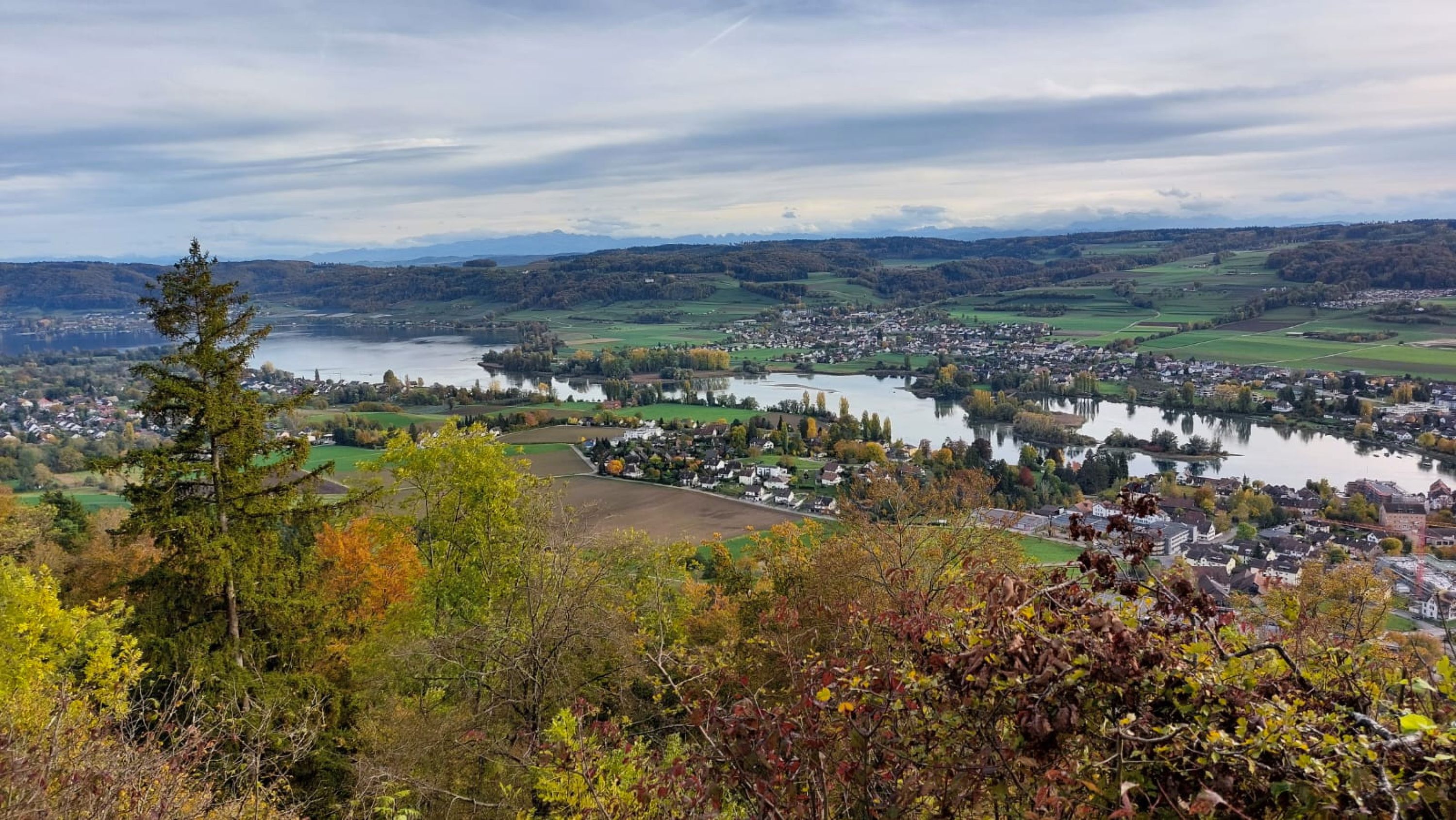 Pünktlich um 13:42 Uhr stieg Peter mit der Wandergruppe, in Stein am Rhein aus dem Zug, wo schon 3 weitere Teilnehmer auf ihn warteten. Nach einer kurzen Begrüssung ging es ins Städtli wo wir dem Wanderweg nahe dem Untesee folgten. Auf der Höhe von Öhningen bogen wir nach Norden ab und wanderten direkt auf das imposante Kloster zu. Vorbei an schönen Riegelhäusern erreichten wir am Ende des Städtchens den Wanderweg. Anfangs noch sanft ansteigend führt dieser hinauf zum Sonnenhof. Kurz danach bogen wir scharf nach links ab und folgten dem Wanderpfad Richtung Westen. Dieser wurde immer steiler und immer mehr Wurzeln verlangten ein konzentriertes gehen, was manche von uns nicht unbedingt schätzten. Schliesslich haben alle diese etwas anstrengende Strecke gemeistert und waren sogar etwas stolz auf ihre Leistung. Schon vor dem offiziellen Aussichtspunkt legten wir einen Halt ein um die schöne Aussicht über den Untersee bis zum Säntis zu geniessen.